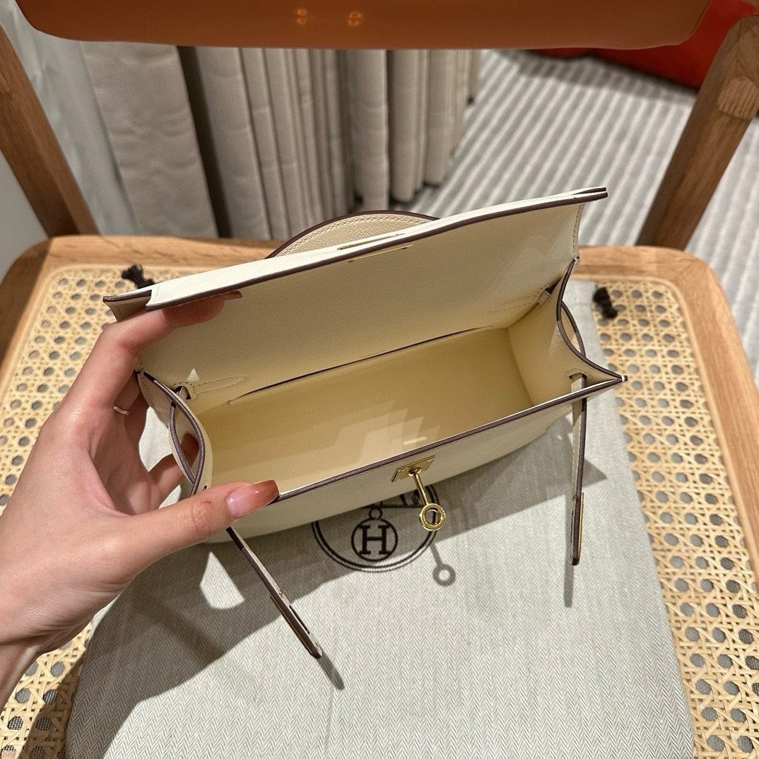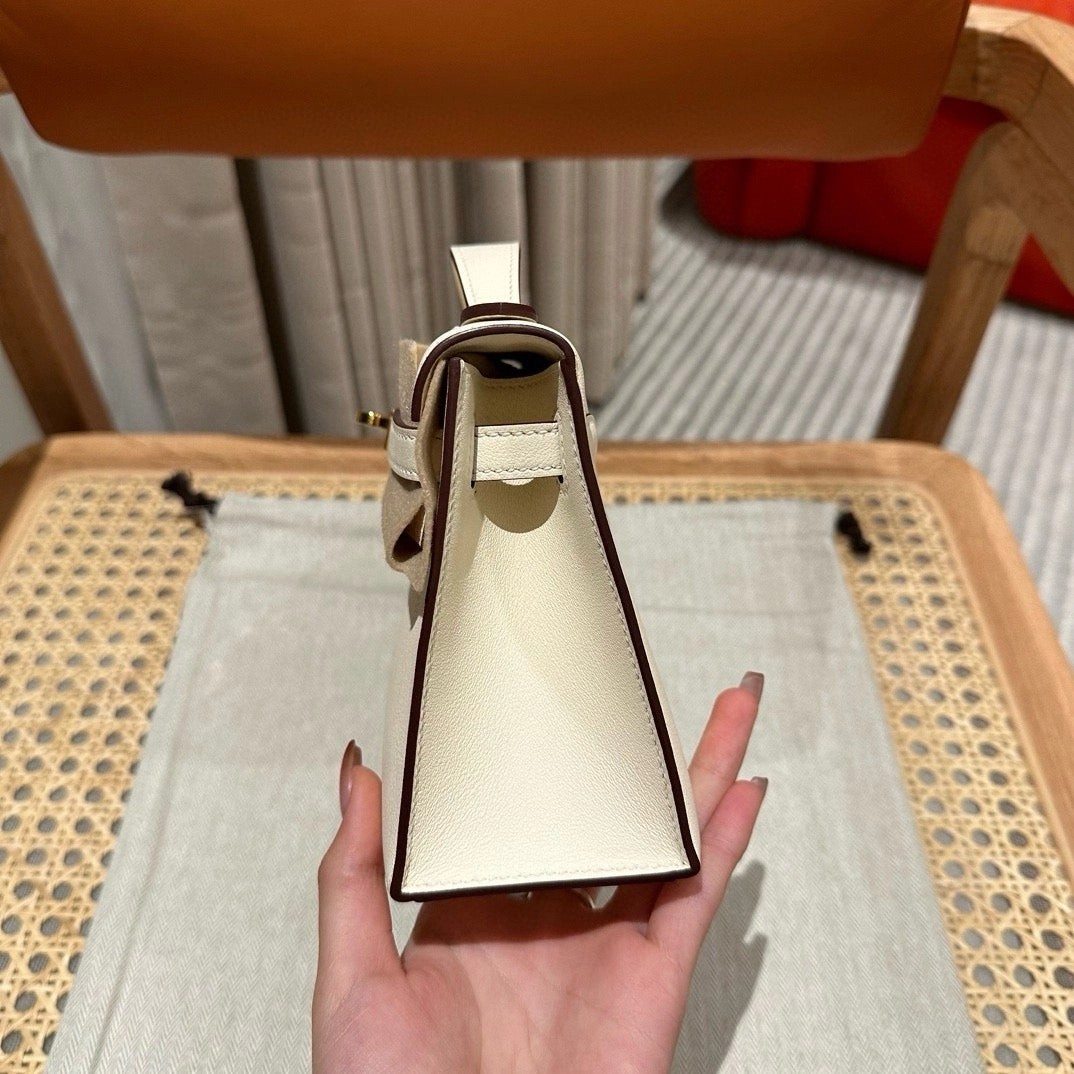 迷你凯莉一代,奶油白,法国进口原厂牛皮,金扣,高级全手工专属定制‼️