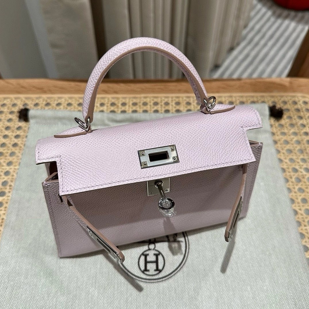 迷你凯莉二代,梦幻紫,掌纹,银扣,19cm,高级全手工专属定制‼️