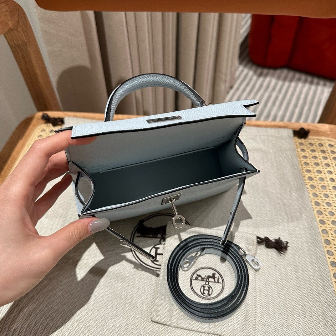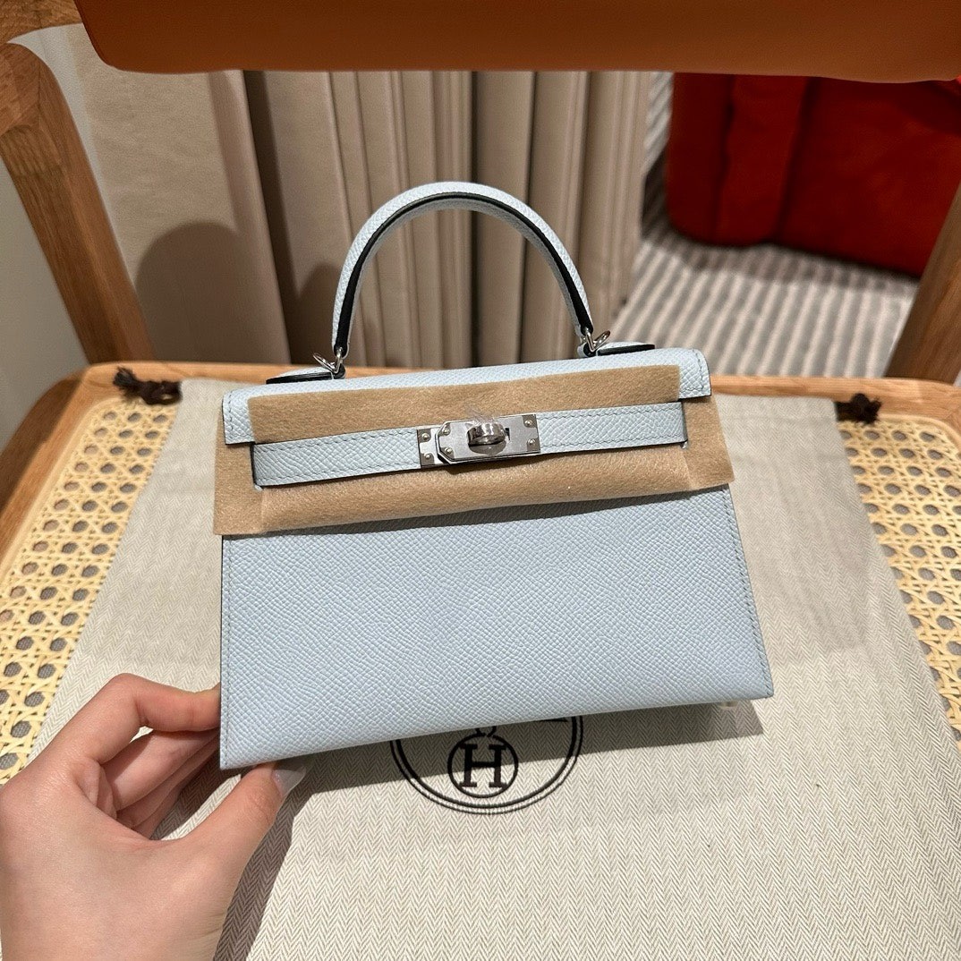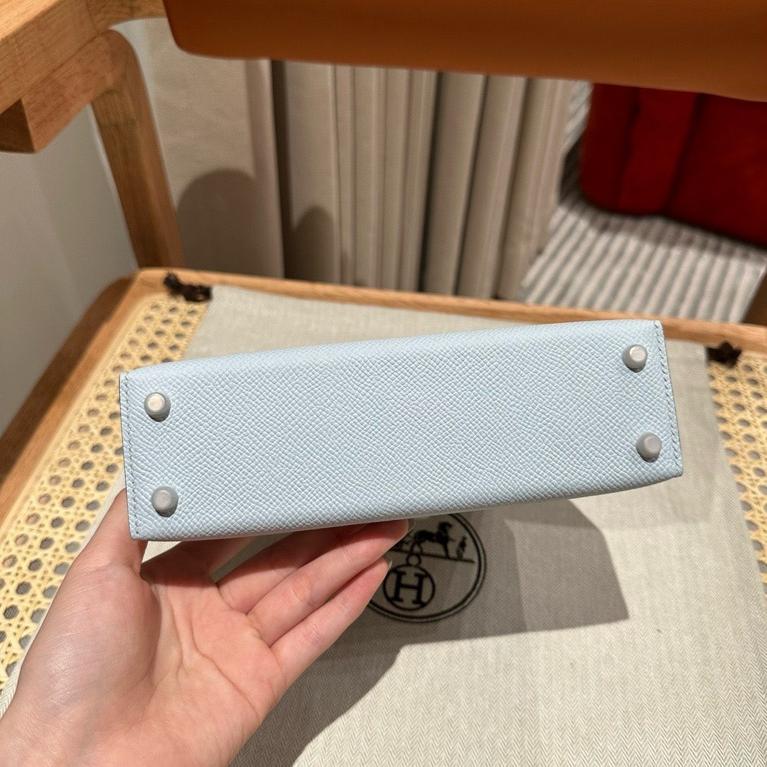 mini kelly 2 ,T0/Bleu Brume,Epsom,sliver,19cm,all handmade‼️