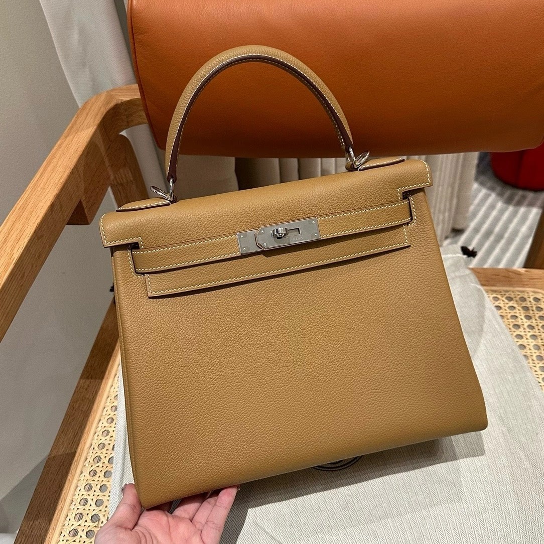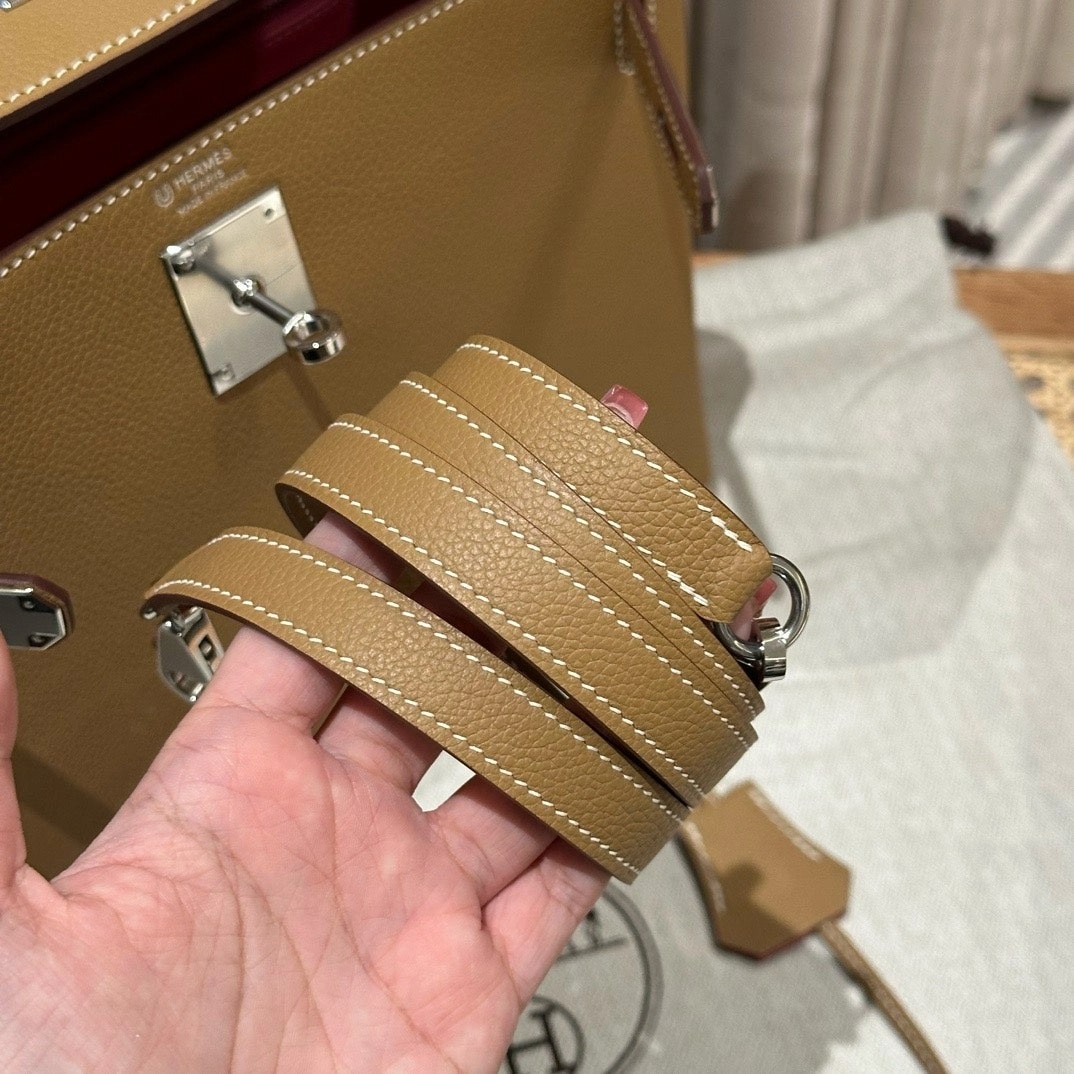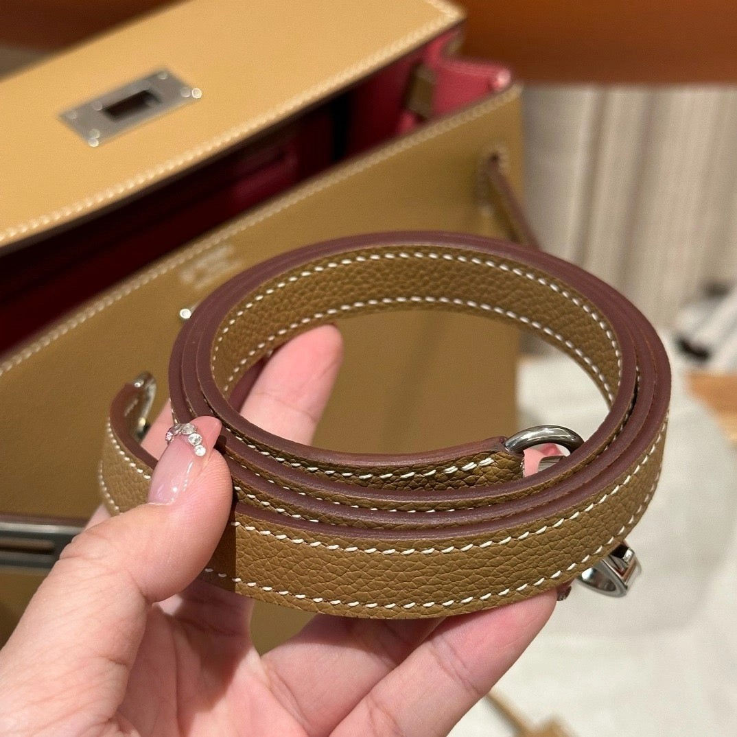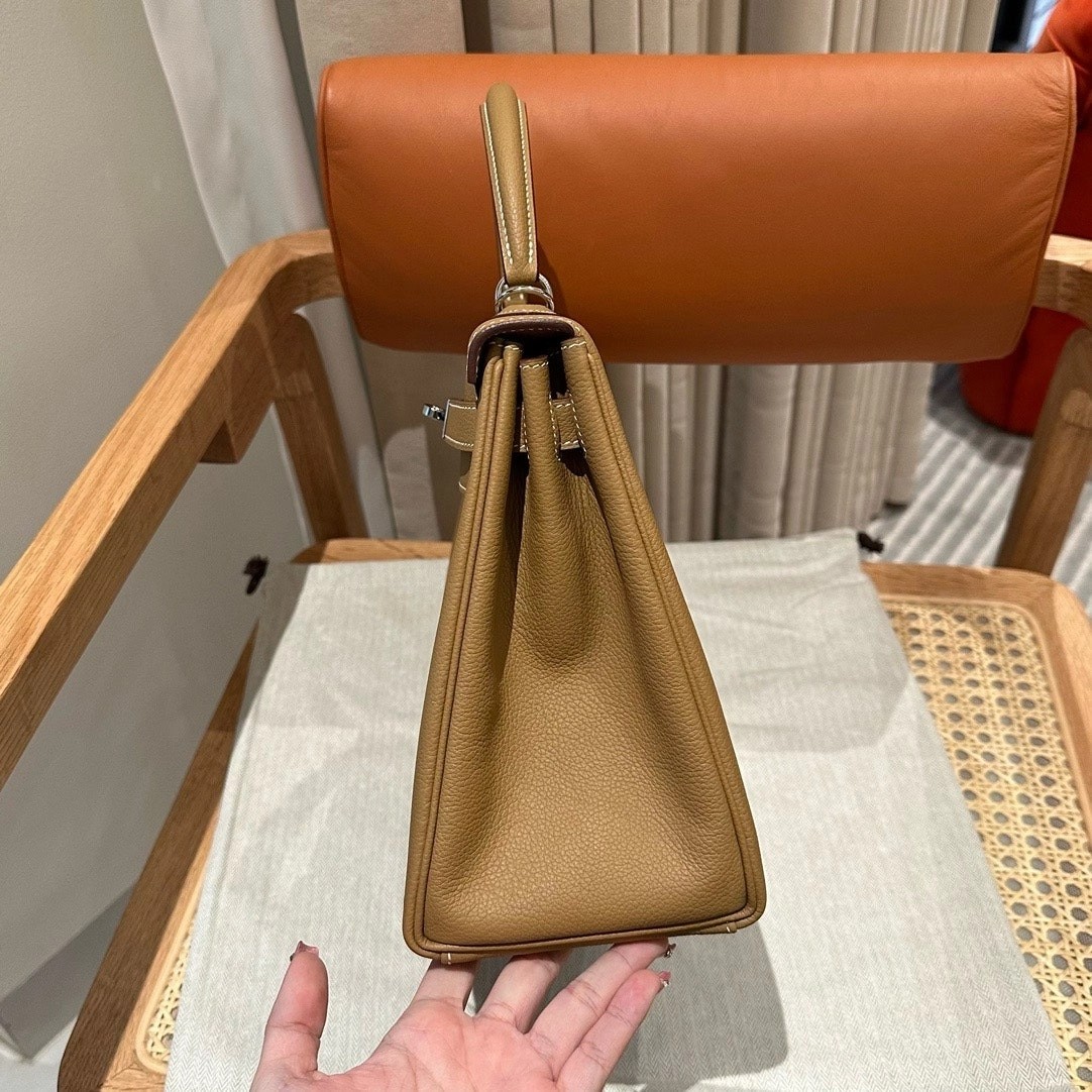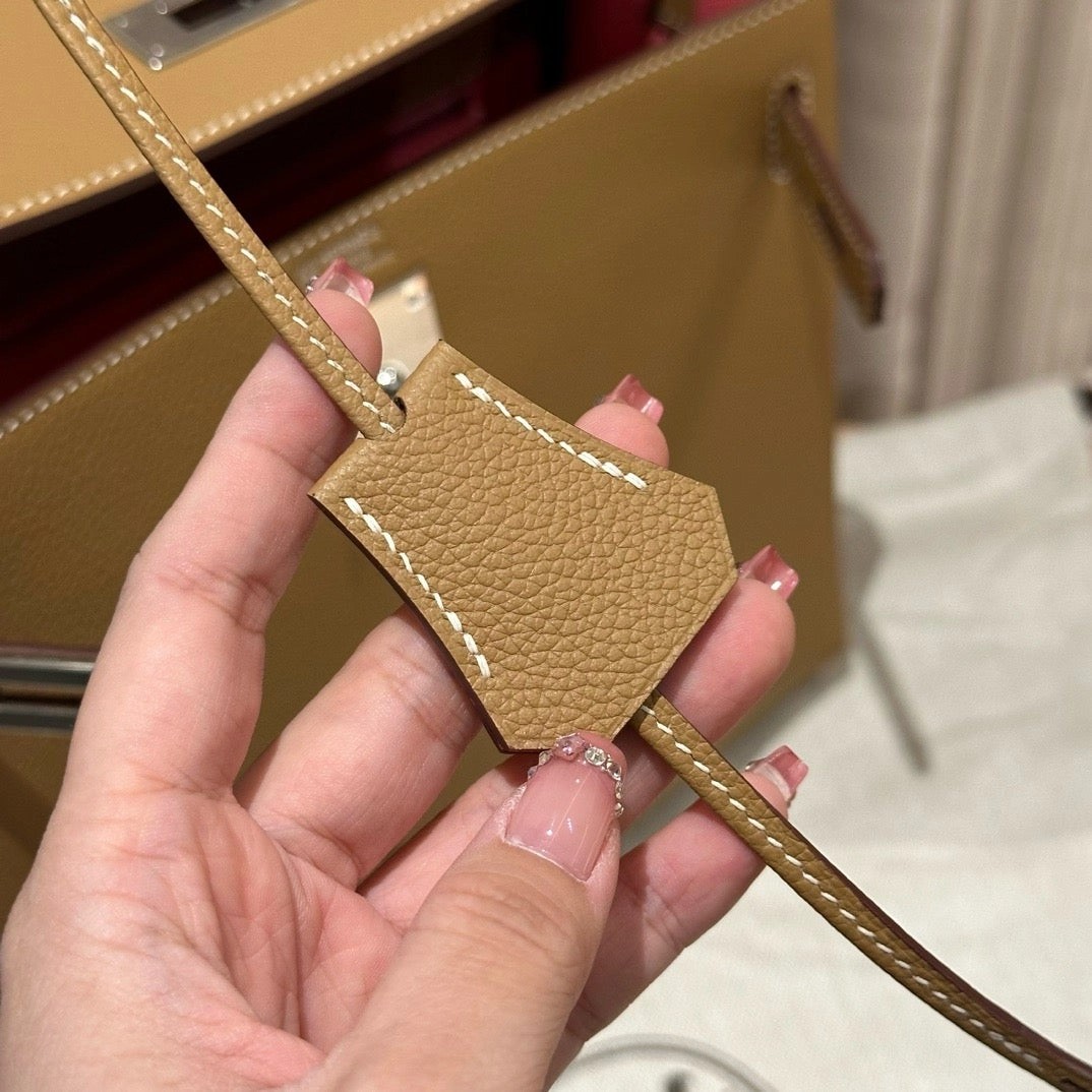 凯莉28cm,焦糖色内拼夏日粉,法国进口软牛皮,银扣,高级全手工专属定制‼️