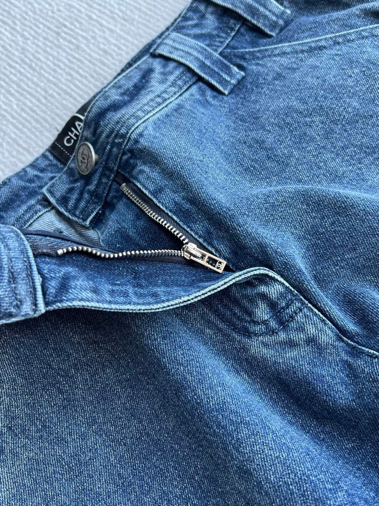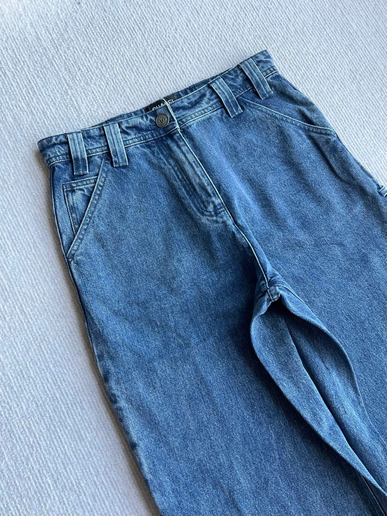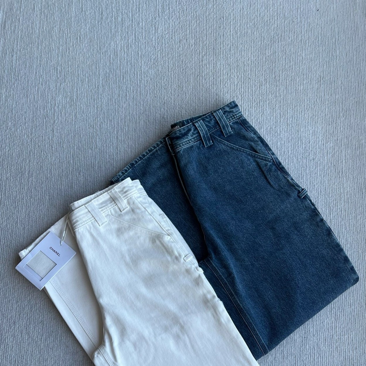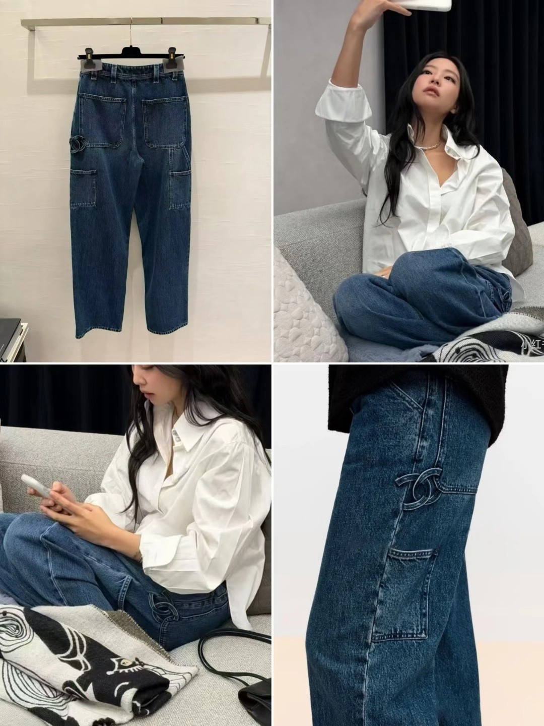 𝐂𝐡𝐚𝐧𝐞𝐥 𝟐𝟔𝐏早春小香风系列珍妮同款牛仔裤 深蓝水洗丹宁面料 薄工装宽松直筒版型 上身舒适又时髦 裤身双C刺绣标志 品牌感满满✨ 适合多种场合 裤长偏长拖地效果显腿长 搭配短上衣或衬衫都很出彩 日常出街、聚会都能轻松驾驭 是实用又时尚的必备单品~💙🤍 洗水蓝/白色36/38/40 ✈️ S腰围68 裤长106 臀围92