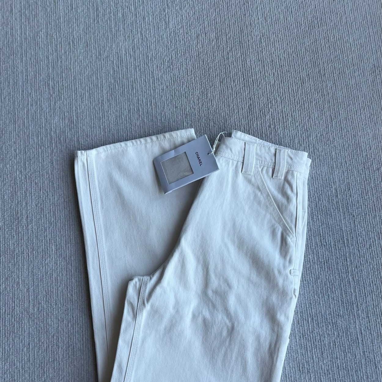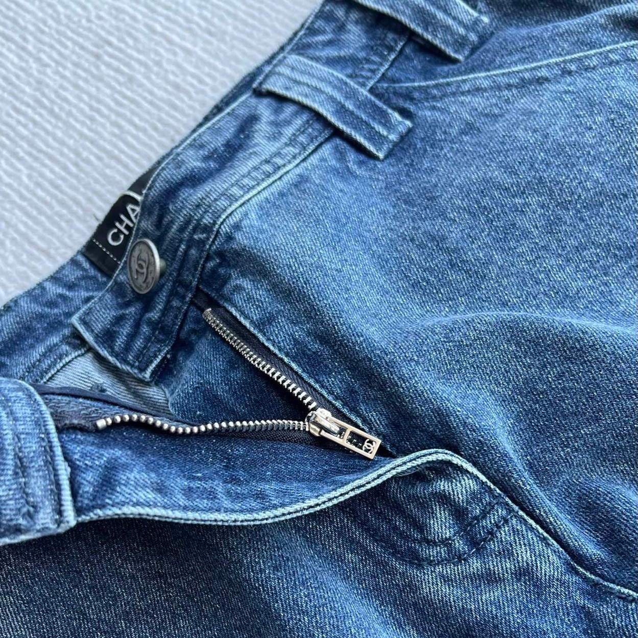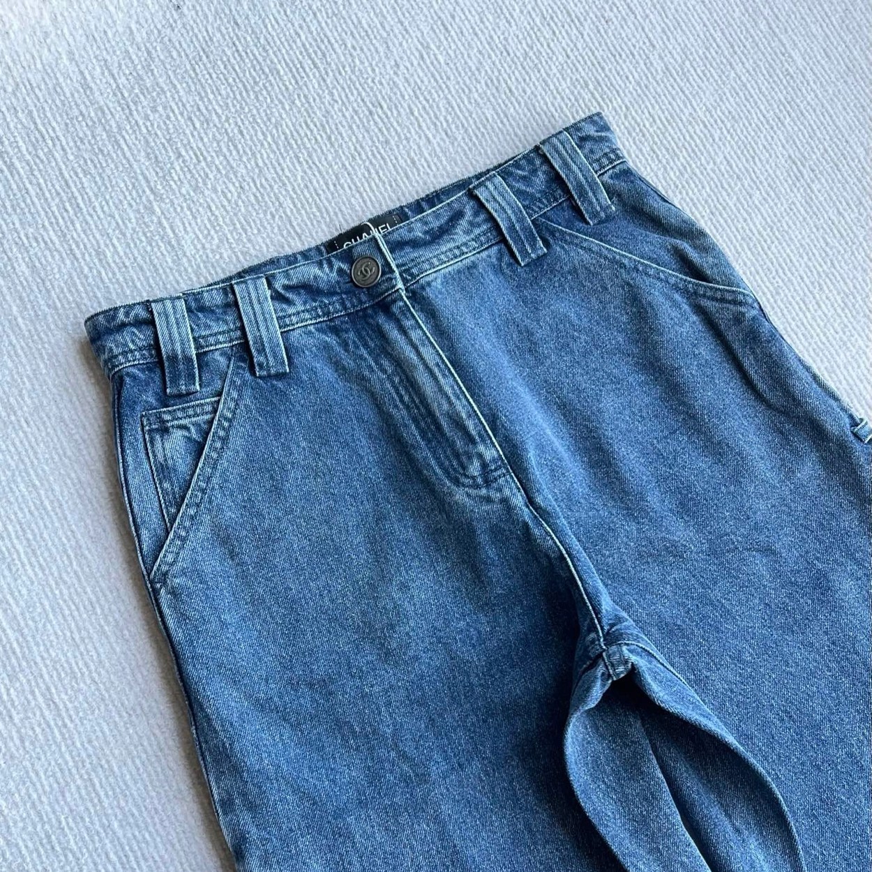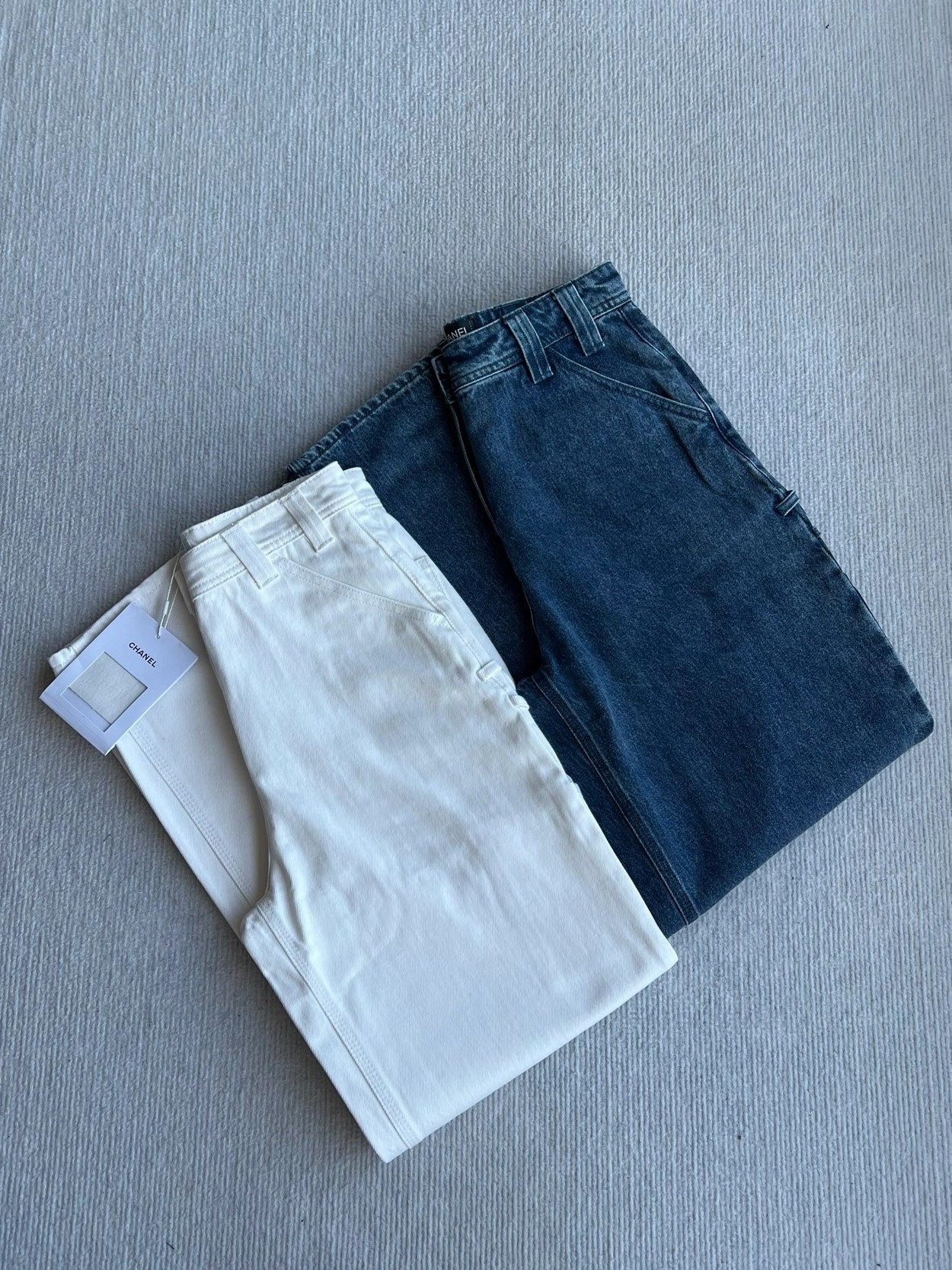𝐂𝐡𝐚𝐧𝐞𝐥 𝟐𝟔𝐏早春小香风系列珍妮同款牛仔裤 深蓝水洗丹宁面料 薄工装宽松直筒版型 上身舒适又时髦 裤身双C刺绣标志 品牌感满满✨ 适合多种场合 裤长偏长拖地效果显腿长 搭配短上衣或衬衫都很出彩 日常出街、聚会都能轻松驾驭 是实用又时尚的必备单品~💙🤍 洗水蓝/白色36/38/40 ✈️ S腰围68 裤长106 臀围92