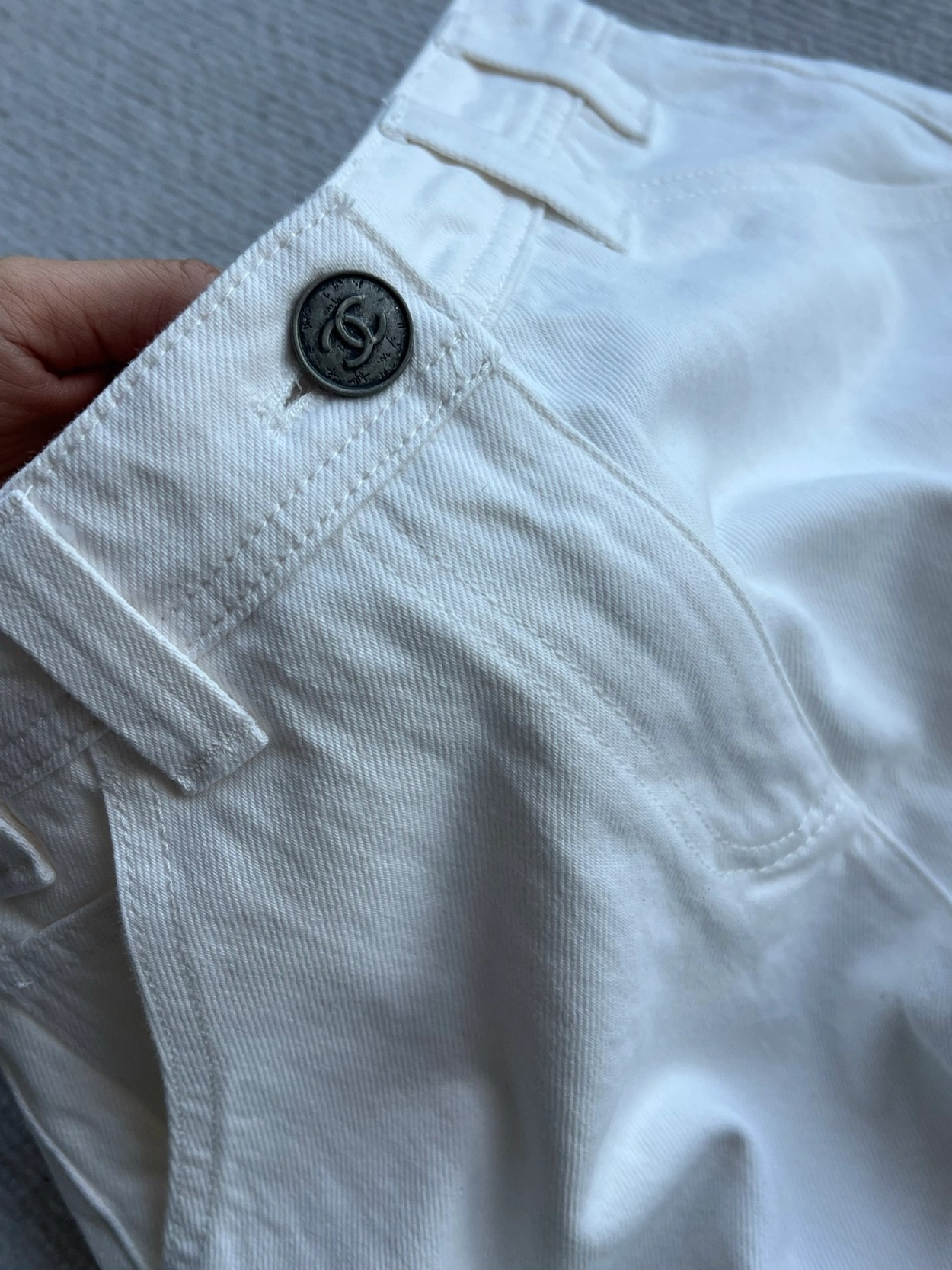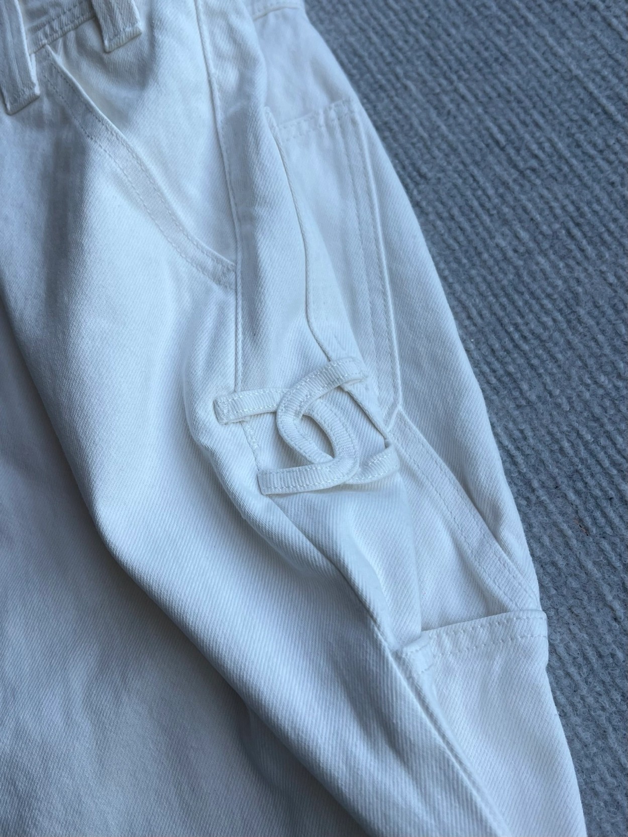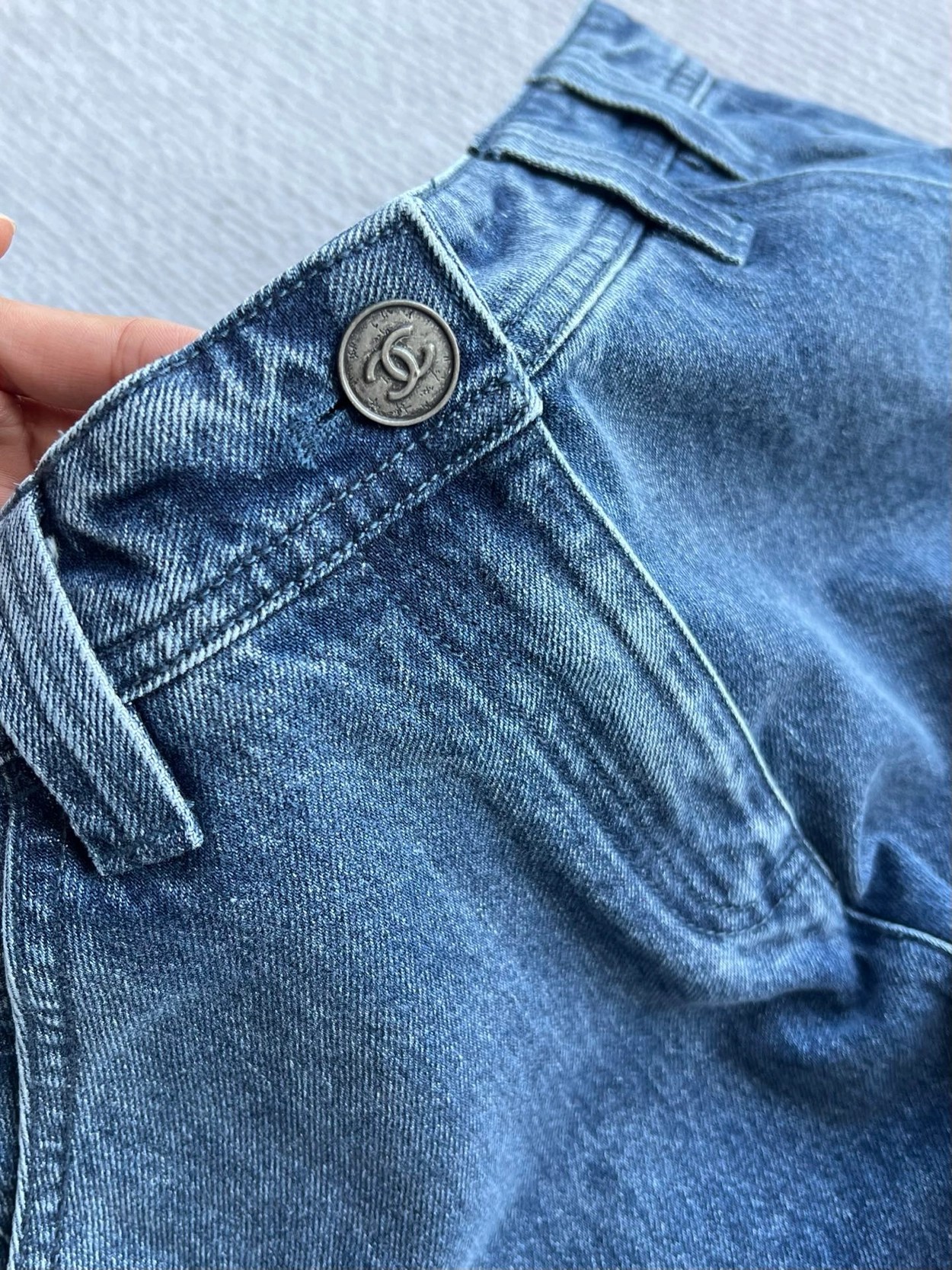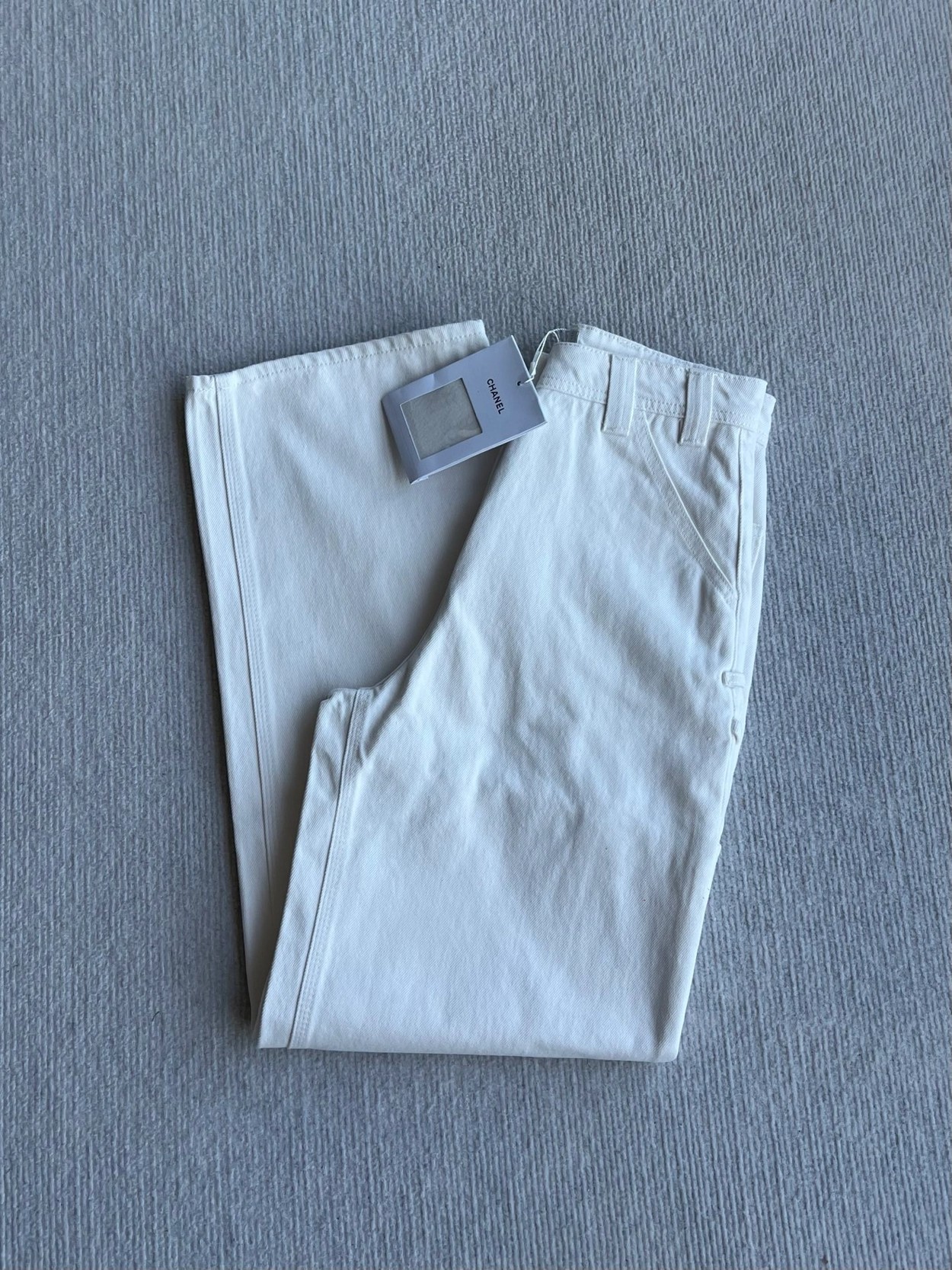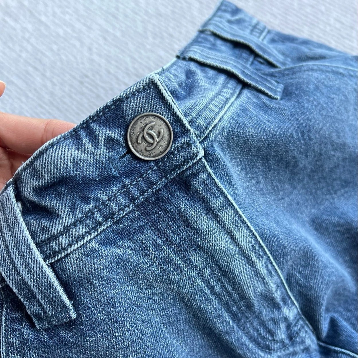𝐂𝐡𝐚𝐧𝐞𝐥 𝟐𝟔𝐏早春小香风系列珍妮同款牛仔裤 深蓝水洗丹宁面料 薄工装宽松直筒版型 上身舒适又时髦 裤身双C刺绣标志 品牌感满满✨ 适合多种场合 裤长偏长拖地效果显腿长 搭配短上衣或衬衫都很出彩 日常出街、聚会都能轻松驾驭 是实用又时尚的必备单品~💙🤍 洗水蓝/白色36/38/40 ✈️ S腰围68 裤长106 臀围92
