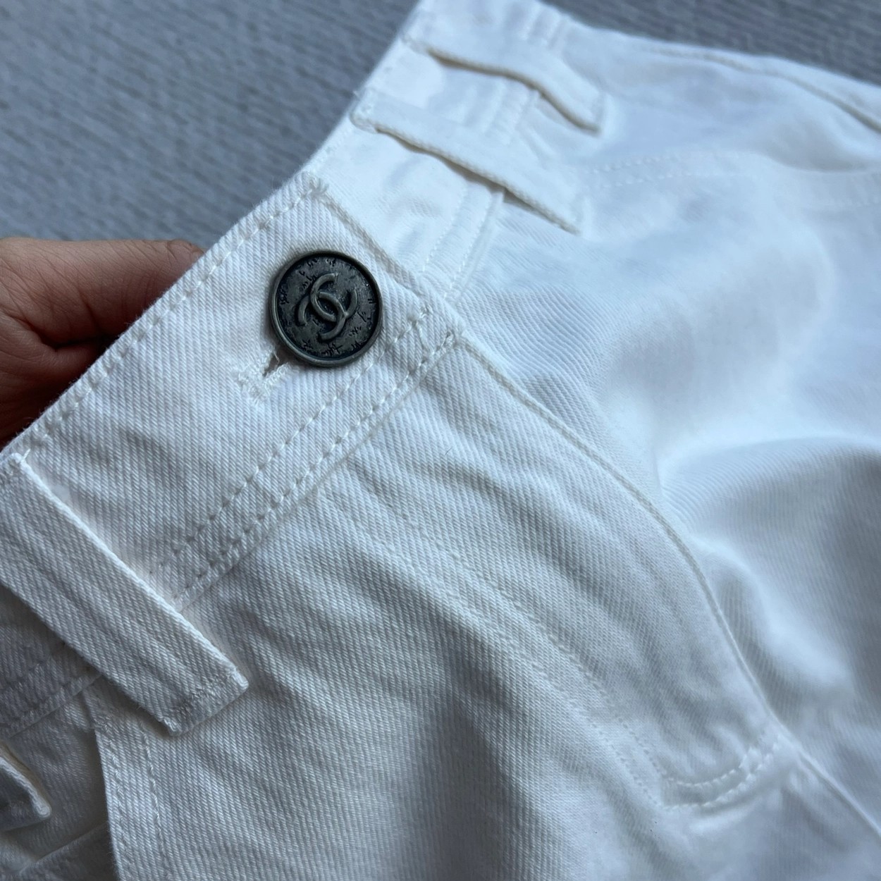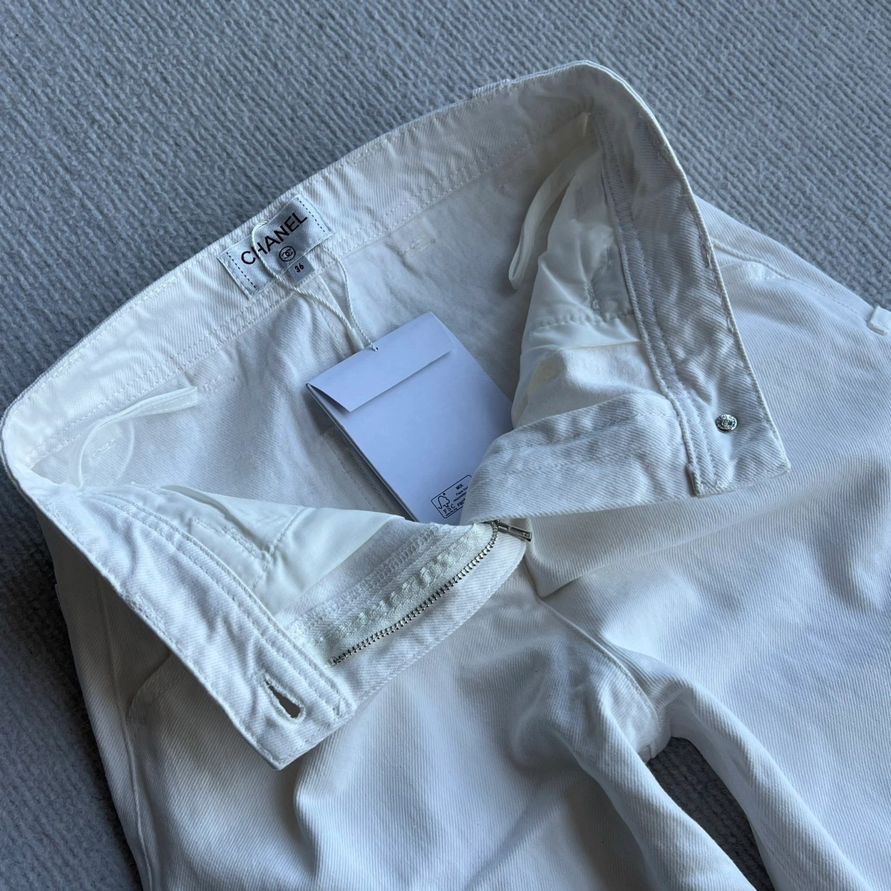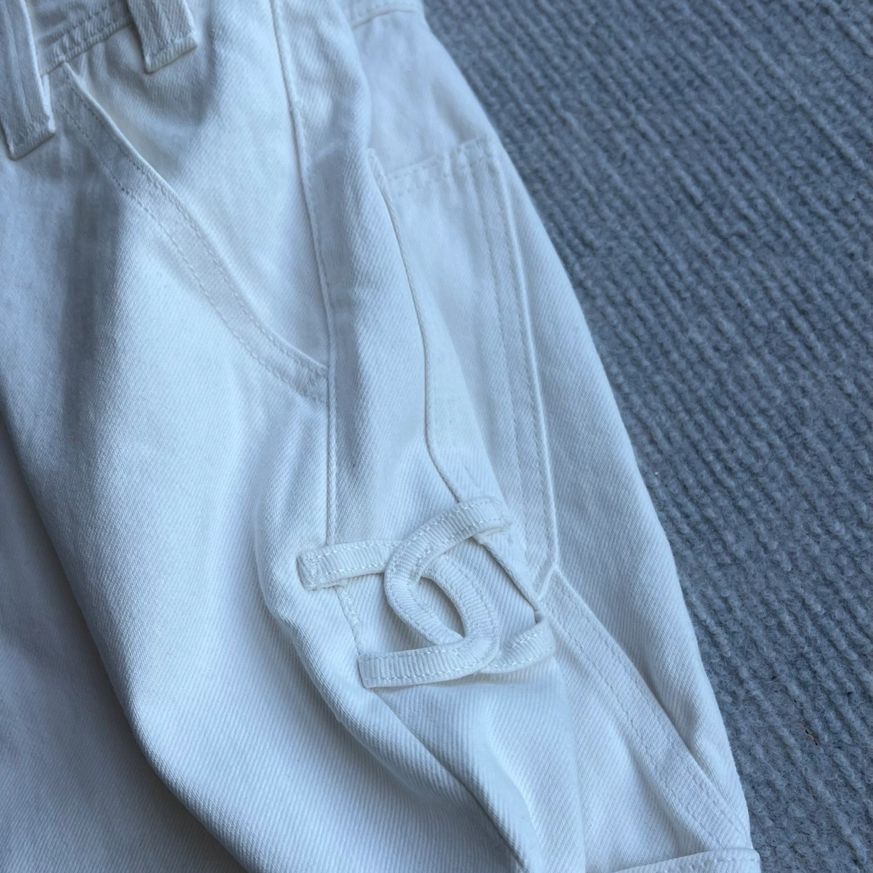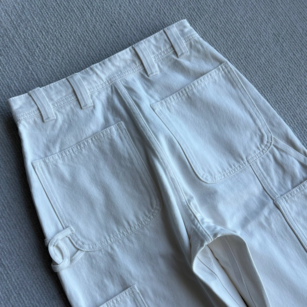 𝐂𝐡𝐚𝐧𝐞𝐥 𝟐𝟔𝐏早春小香风系列珍妮同款牛仔裤 深蓝水洗丹宁面料 薄工装宽松直筒版型 上身舒适又时髦 裤身双C刺绣标志 品牌感满满✨ 适合多种场合 裤长偏长拖地效果显腿长 搭配短上衣或衬衫都很出彩 日常出街、聚会都能轻松驾驭 是实用又时尚的必备单品~💙🤍 洗水蓝/白色36/38/40 ✈️ S腰围68 裤长106 臀围92