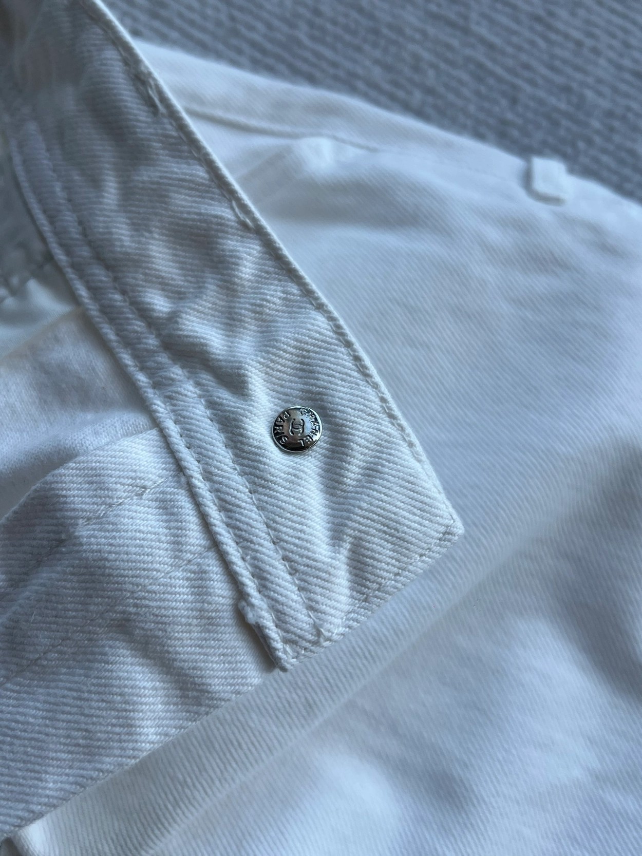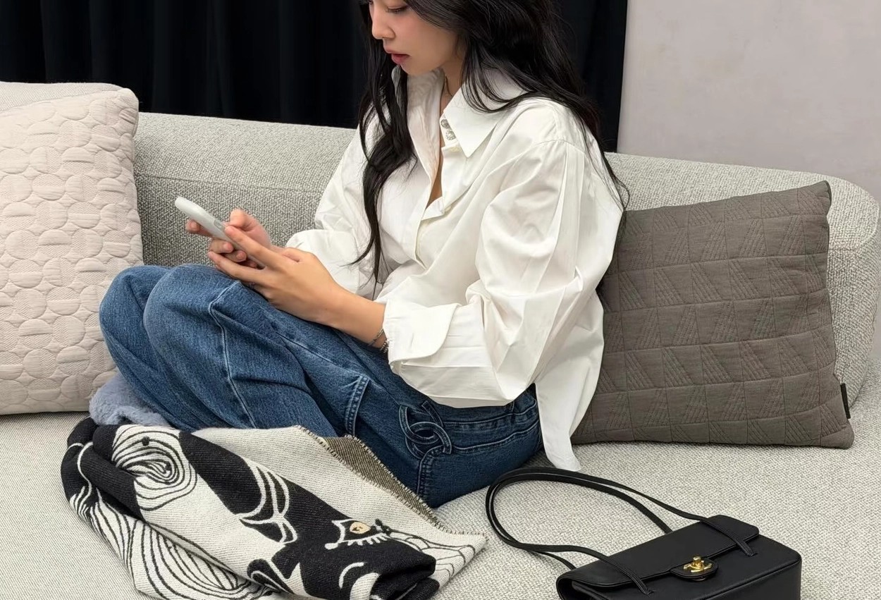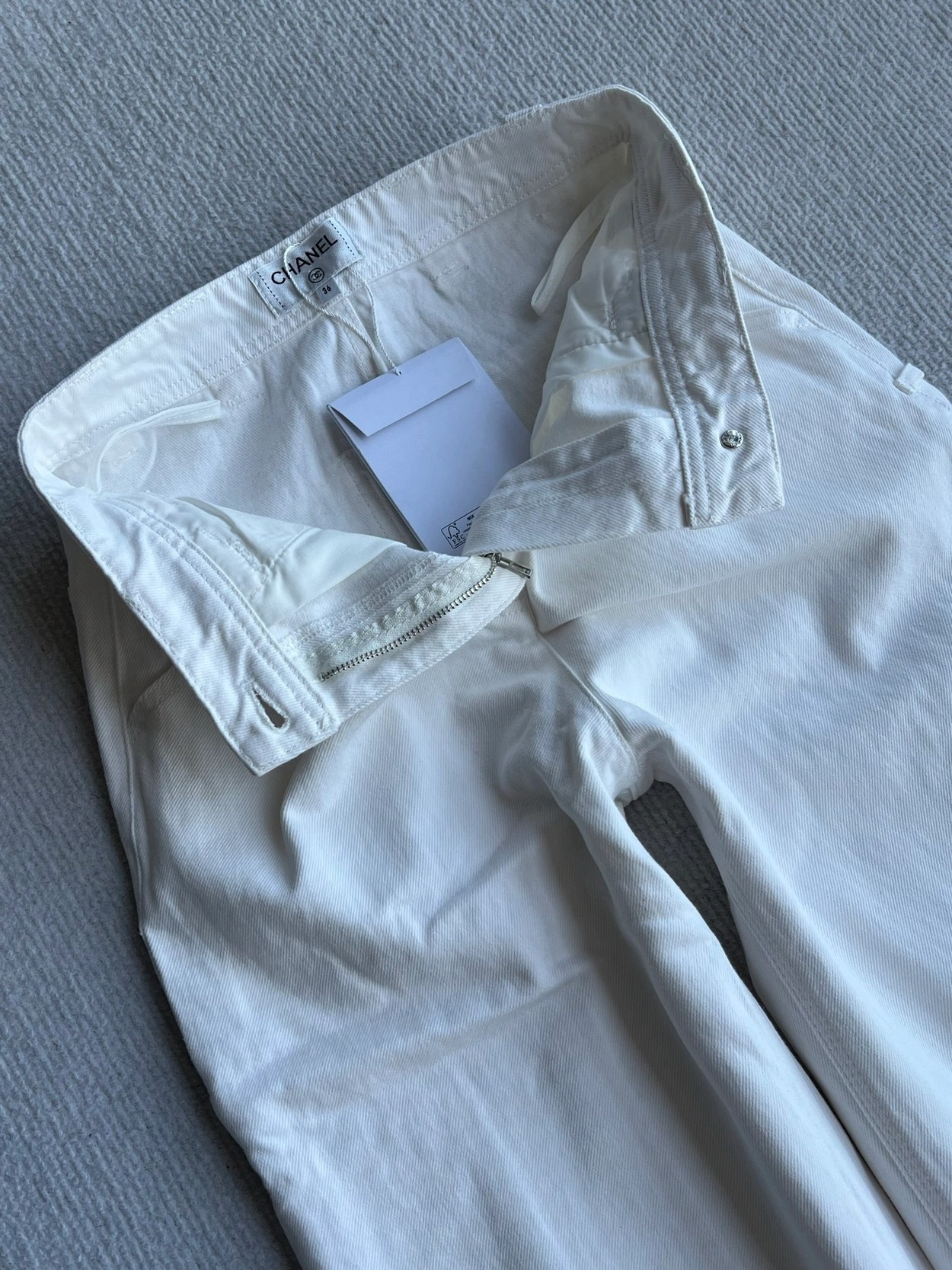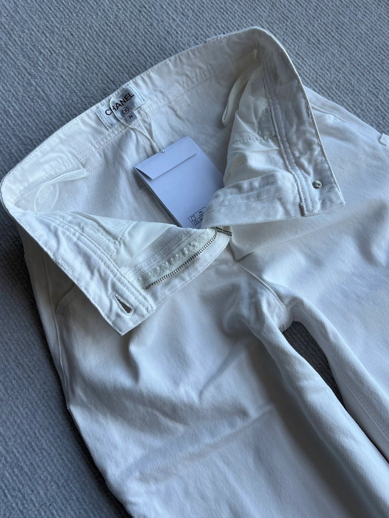 𝐂𝐡𝐚𝐧𝐞𝐥 𝟐𝟔𝐏早春小香风系列珍妮同款牛仔裤 深蓝水洗丹宁面料 薄工装宽松直筒版型 上身舒适又时髦 裤身双C刺绣标志 品牌感满满✨ 适合多种场合 裤长偏长拖地效果显腿长 搭配短上衣或衬衫都很出彩 日常出街、聚会都能轻松驾驭 是实用又时尚的必备单品~💙🤍 洗水蓝/白色36/38/40 ✈️ S腰围68 裤长106 臀围92