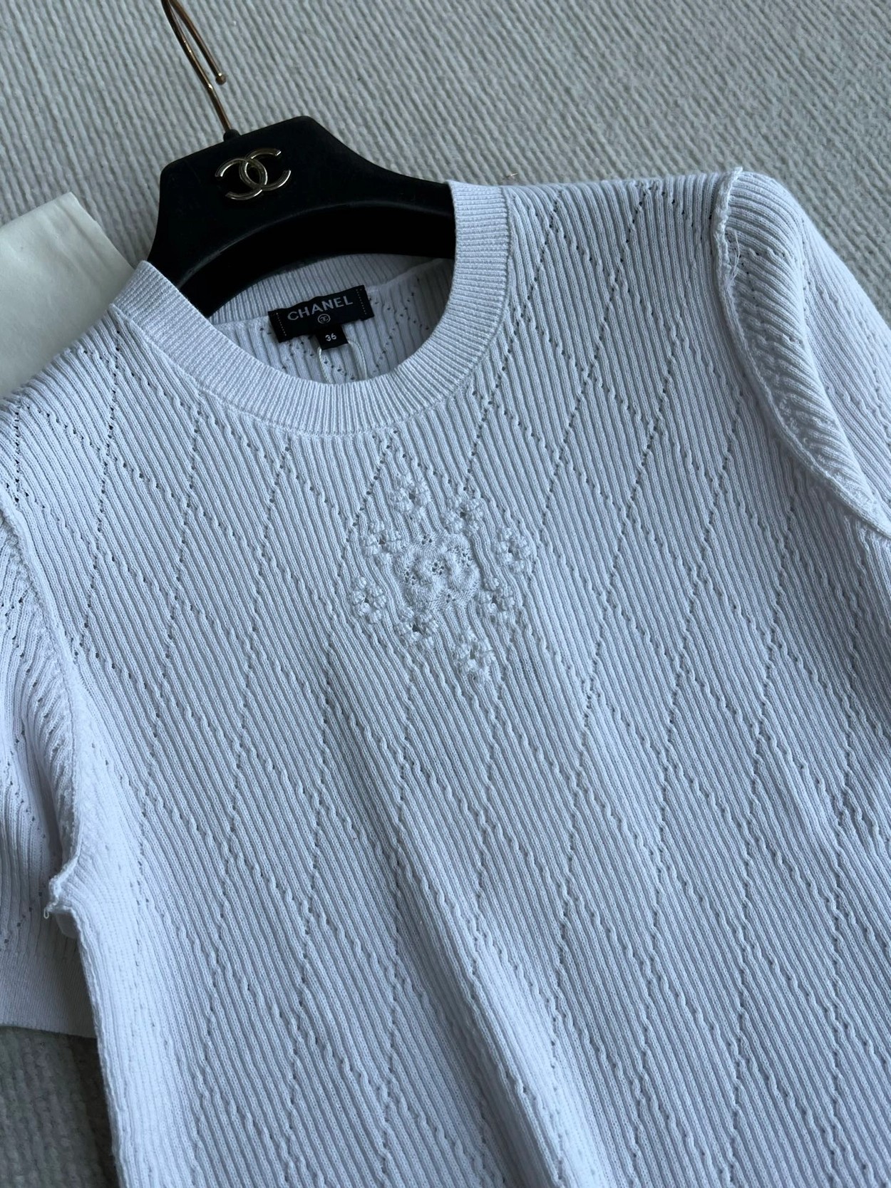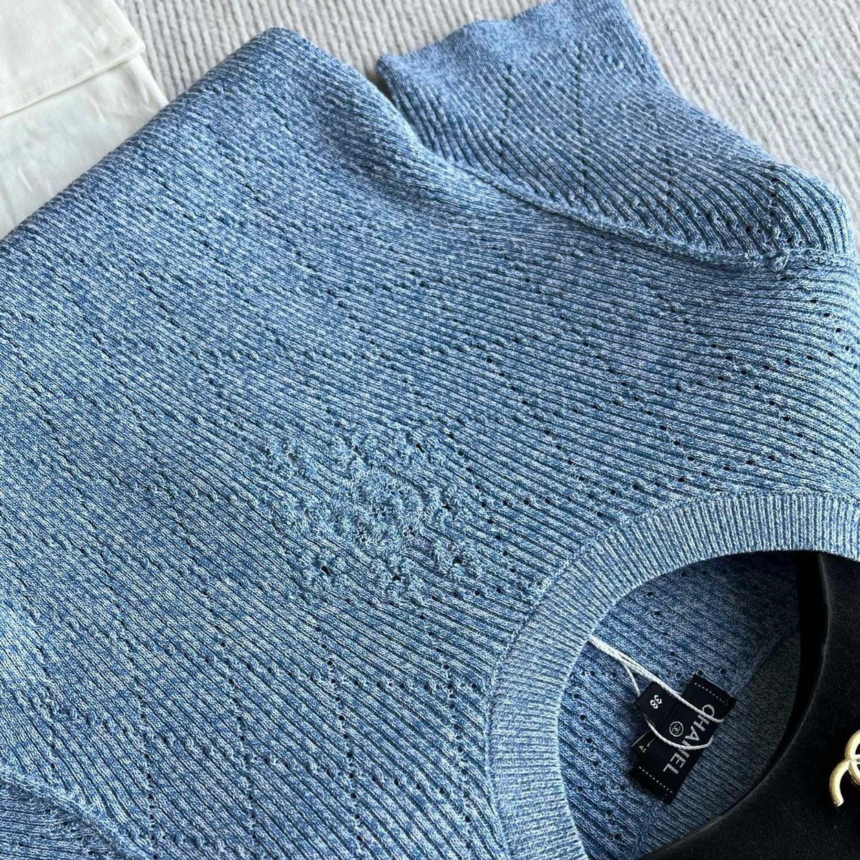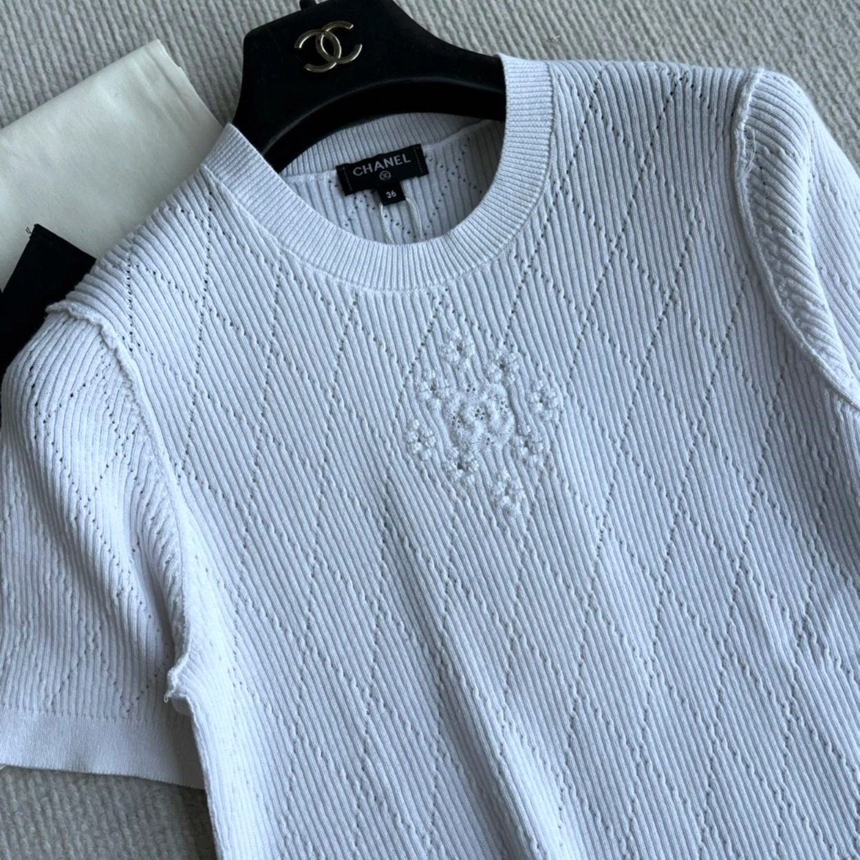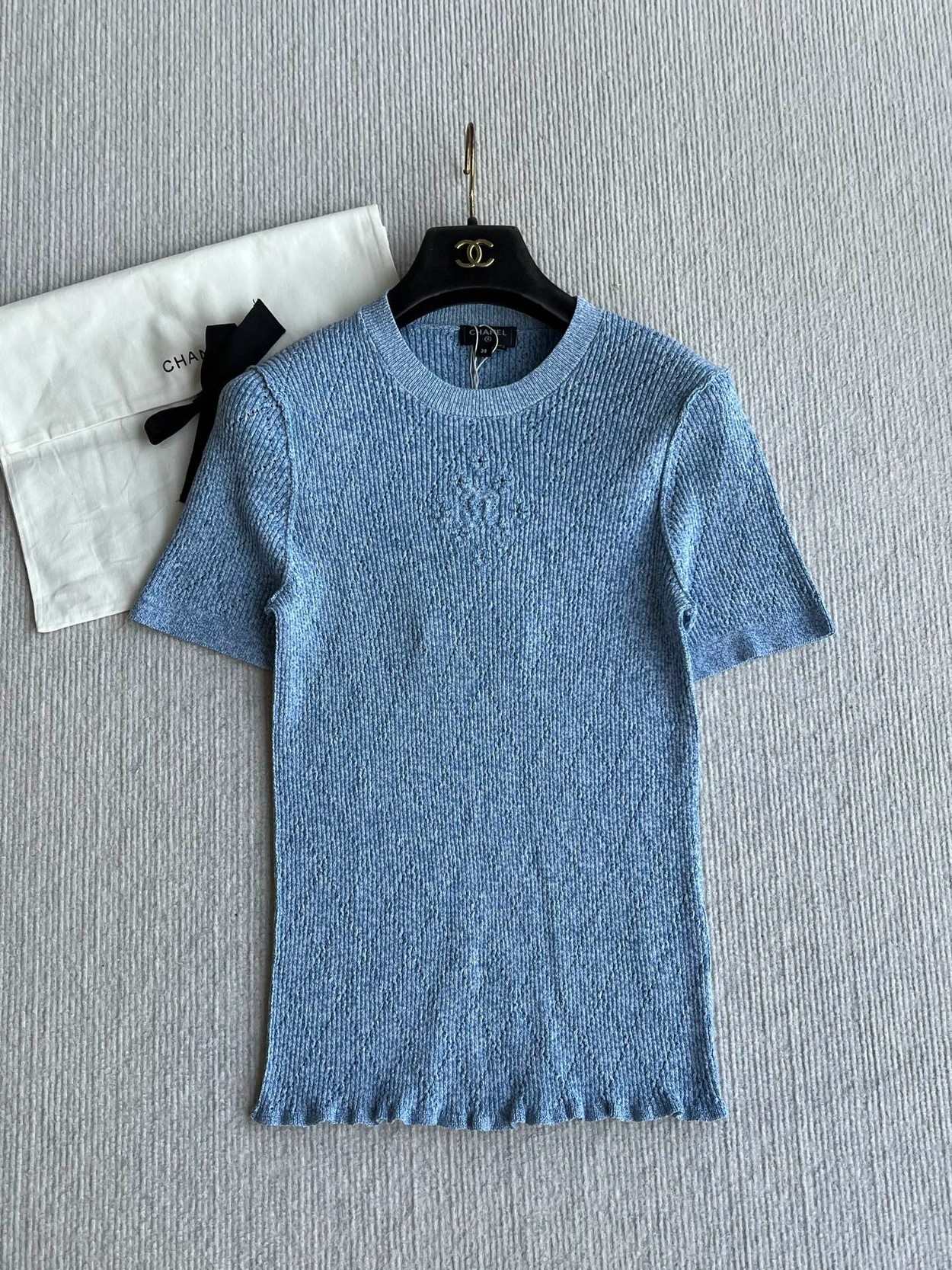 𝐂𝐡𝐚𝐧𝐞𝐥 𝟐𝟔𝐏早春系列~💙定制纱线面料 🧶 柔软弹力面料 胸前精致刺绣花纹 细节满分 简约优雅风格 轻松搭配各种下装 26P由新设计师打造 融合经典与现代元素 上身毫不费力 白色/蓝色36/38/40✈️ M胸围72 衣长57 肩宽47