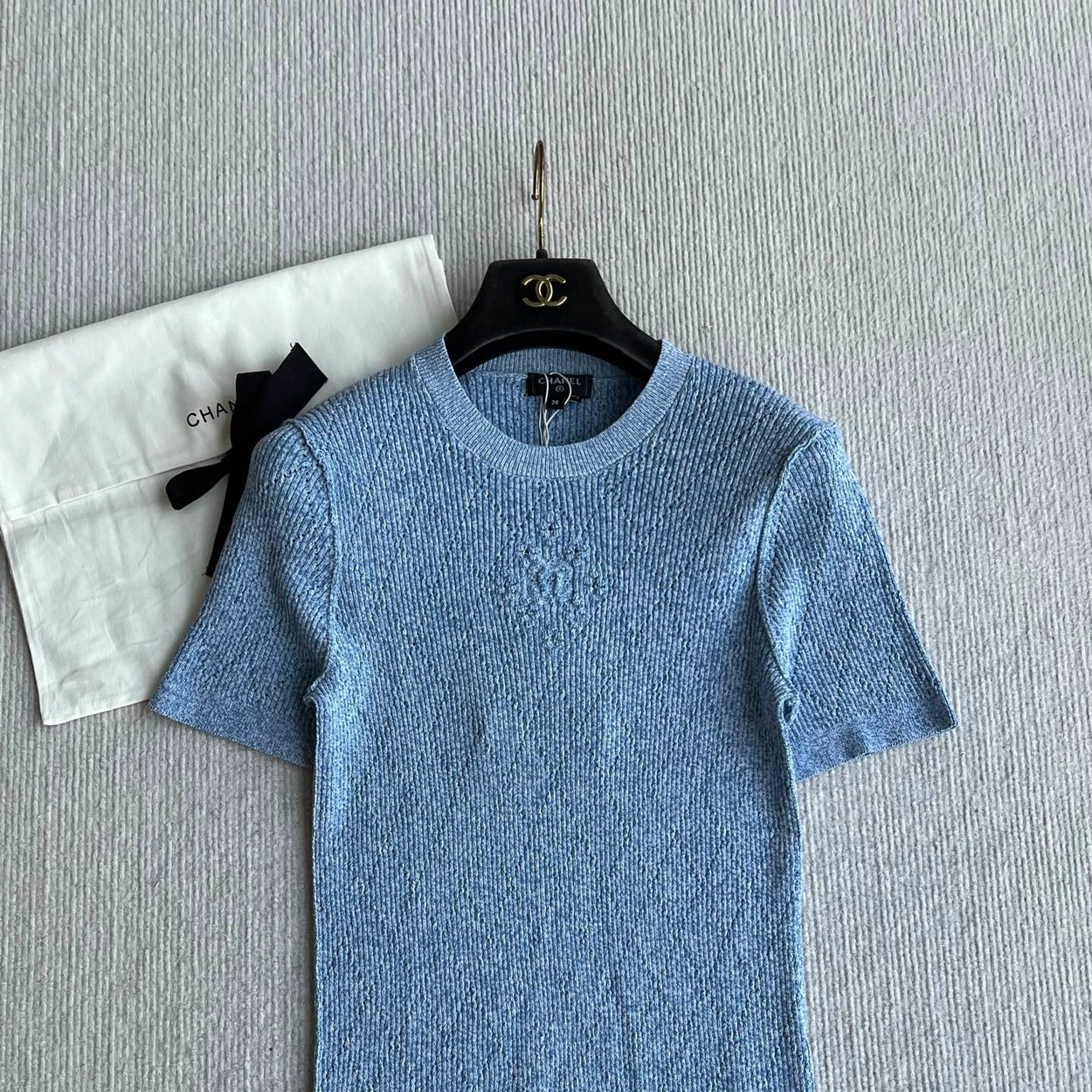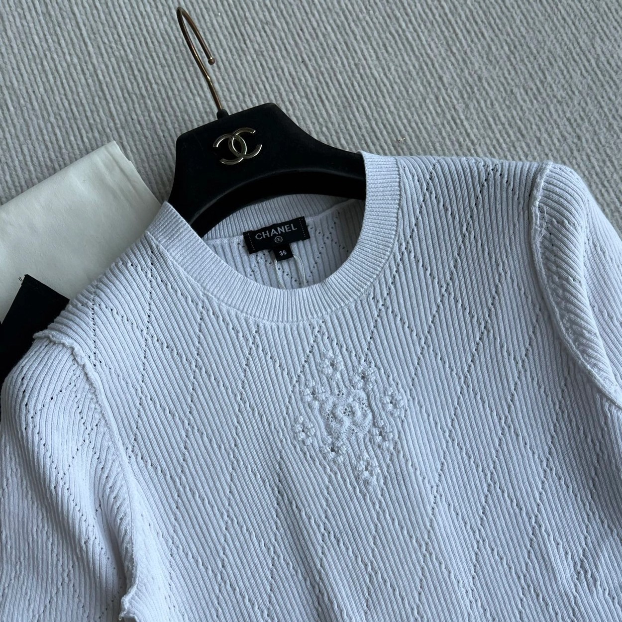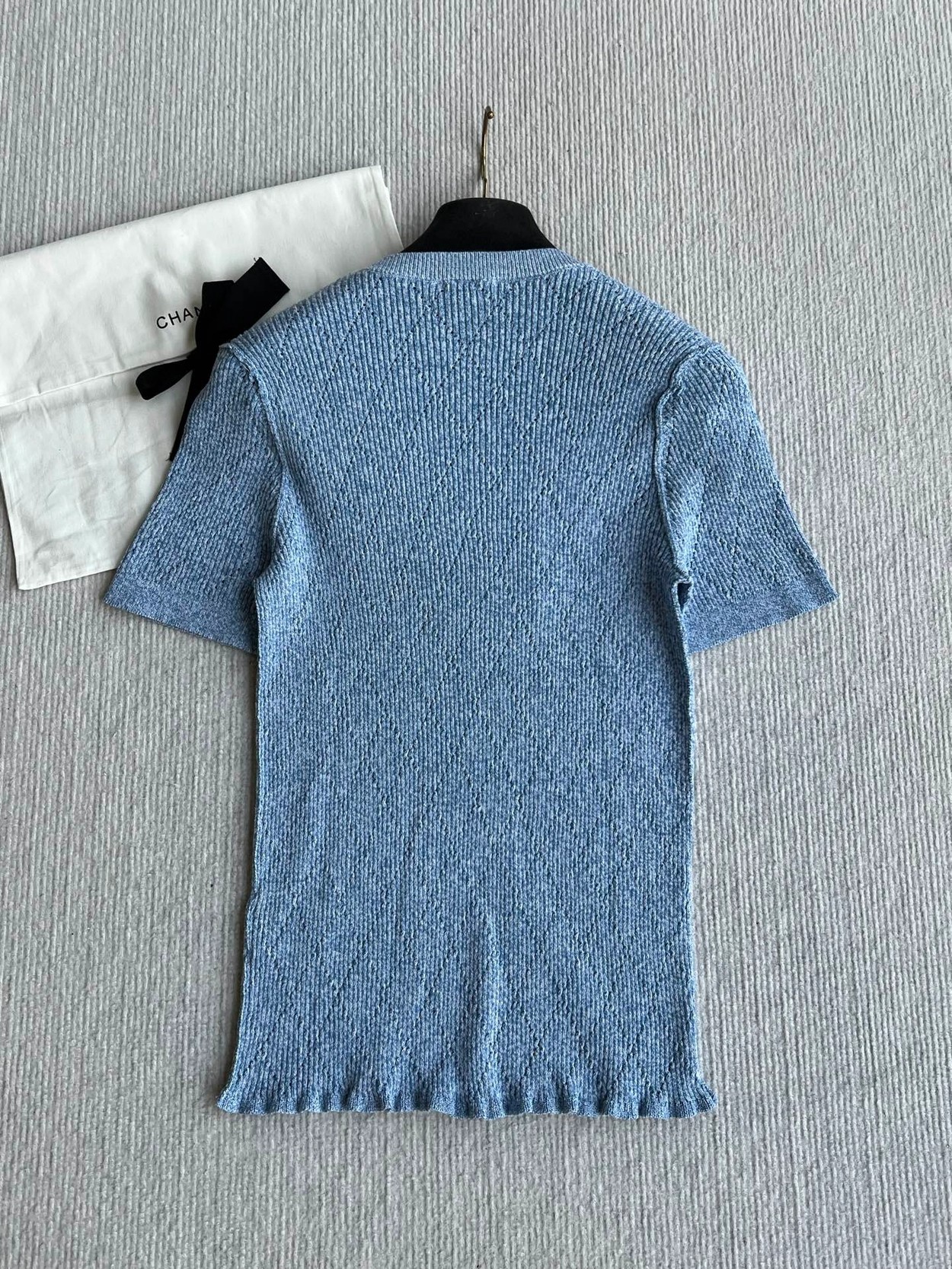 𝐂𝐡𝐚𝐧𝐞𝐥 𝟐𝟔𝐏早春系列~💙定制纱线面料 🧶 柔软弹力面料 胸前精致刺绣花纹 细节满分 简约优雅风格 轻松搭配各种下装 26P由新设计师打造 融合经典与现代元素 上身毫不费力 白色/蓝色36/38/40✈️ M胸围72 衣长57 肩宽47