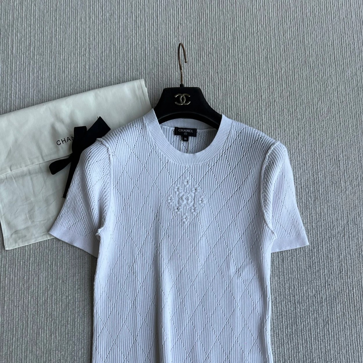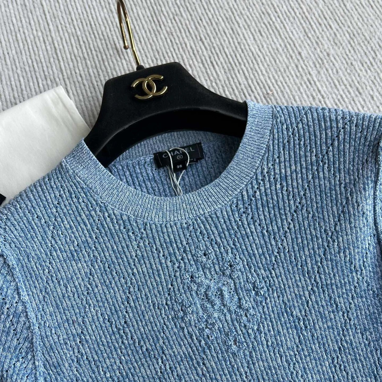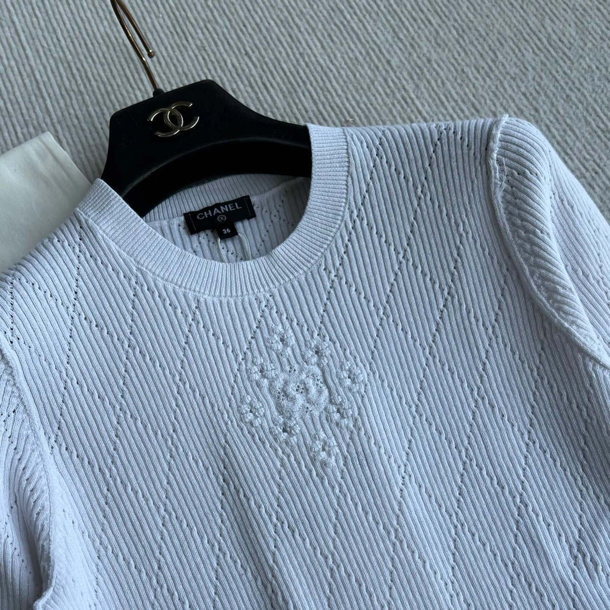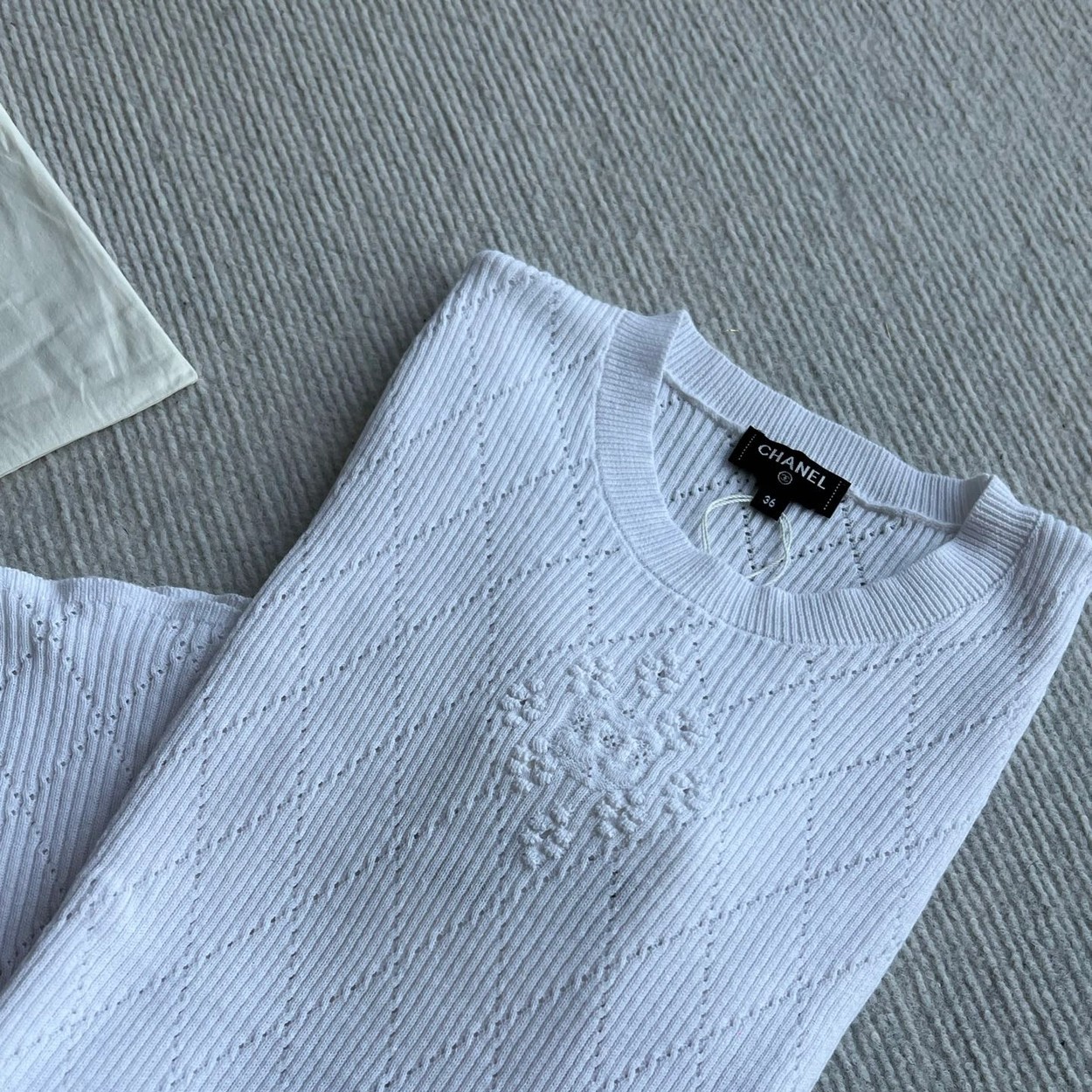 𝐂𝐡𝐚𝐧𝐞𝐥 𝟐𝟔𝐏早春系列~💙定制纱线面料 🧶 柔软弹力面料 胸前精致刺绣花纹 细节满分 简约优雅风格 轻松搭配各种下装 26P由新设计师打造 融合经典与现代元素 上身毫不费力 白色/蓝色36/38/40✈️ M胸围72 衣长57 肩宽47