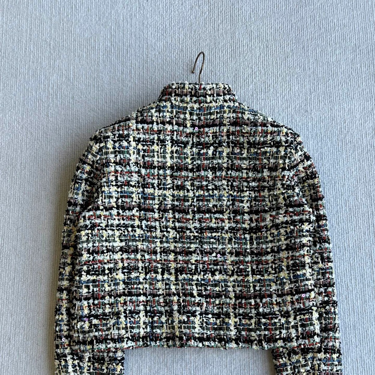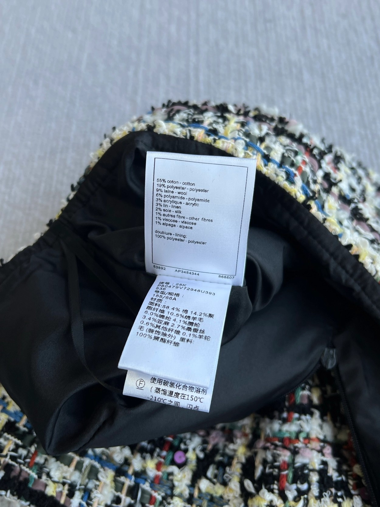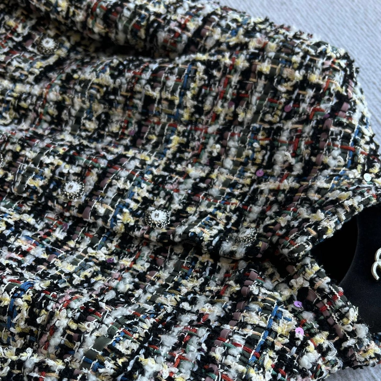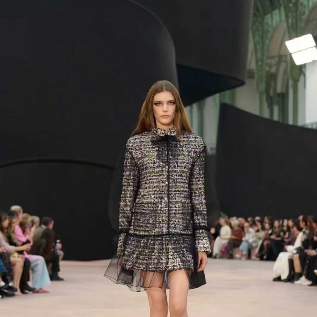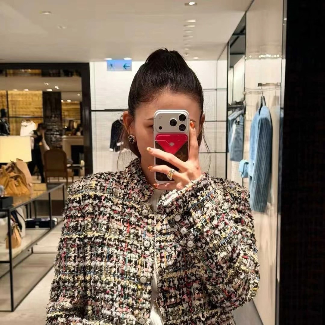 𝐜𝐡𝐚𝐧𝐞𝐥 𝟐𝟔𝐂25/26早春系列新款彩色外套+半裙套装~ 定制彩纱粗花呢小香风套装 上衣采用立领短款剪裁 彩纱混纺的粗花呢面料肌理感十足 黑白红蓝交织出丰富层次 系列半裙采用A字版型藏肉显瘦 还能拉长腿部线条 整套搭配自带高级氛围感 一套搭配不易出错 36/38/40✈️S胸围94 衣长47 肩宽39 袖长58