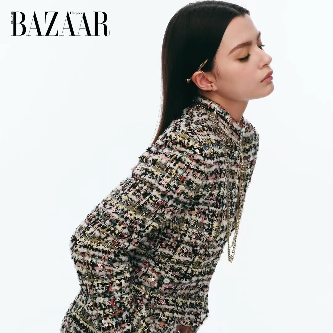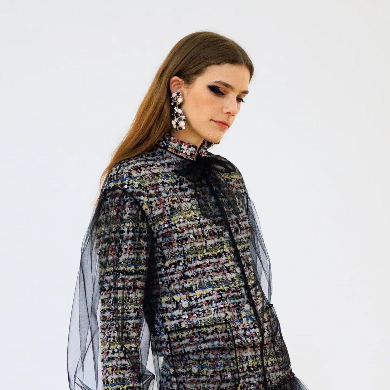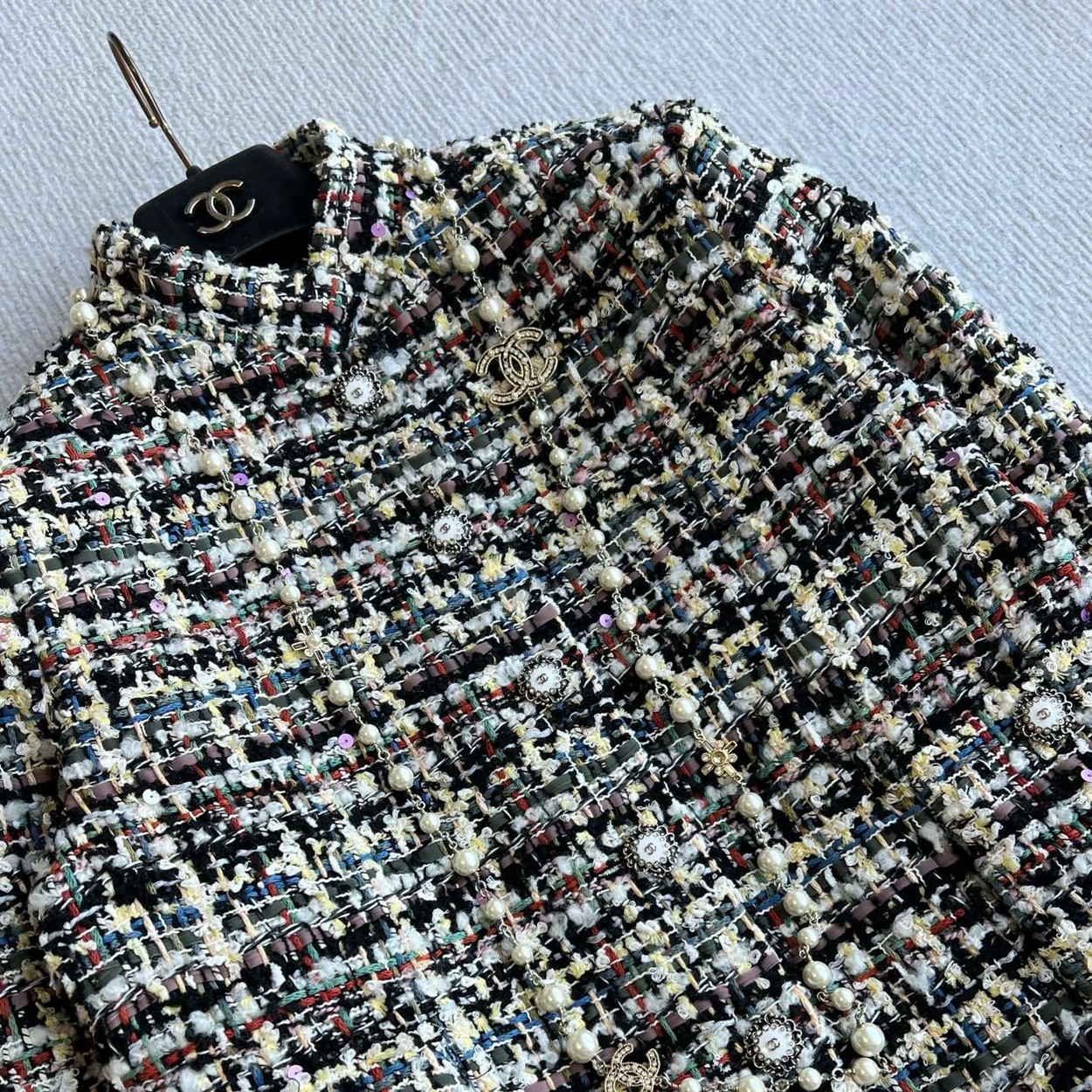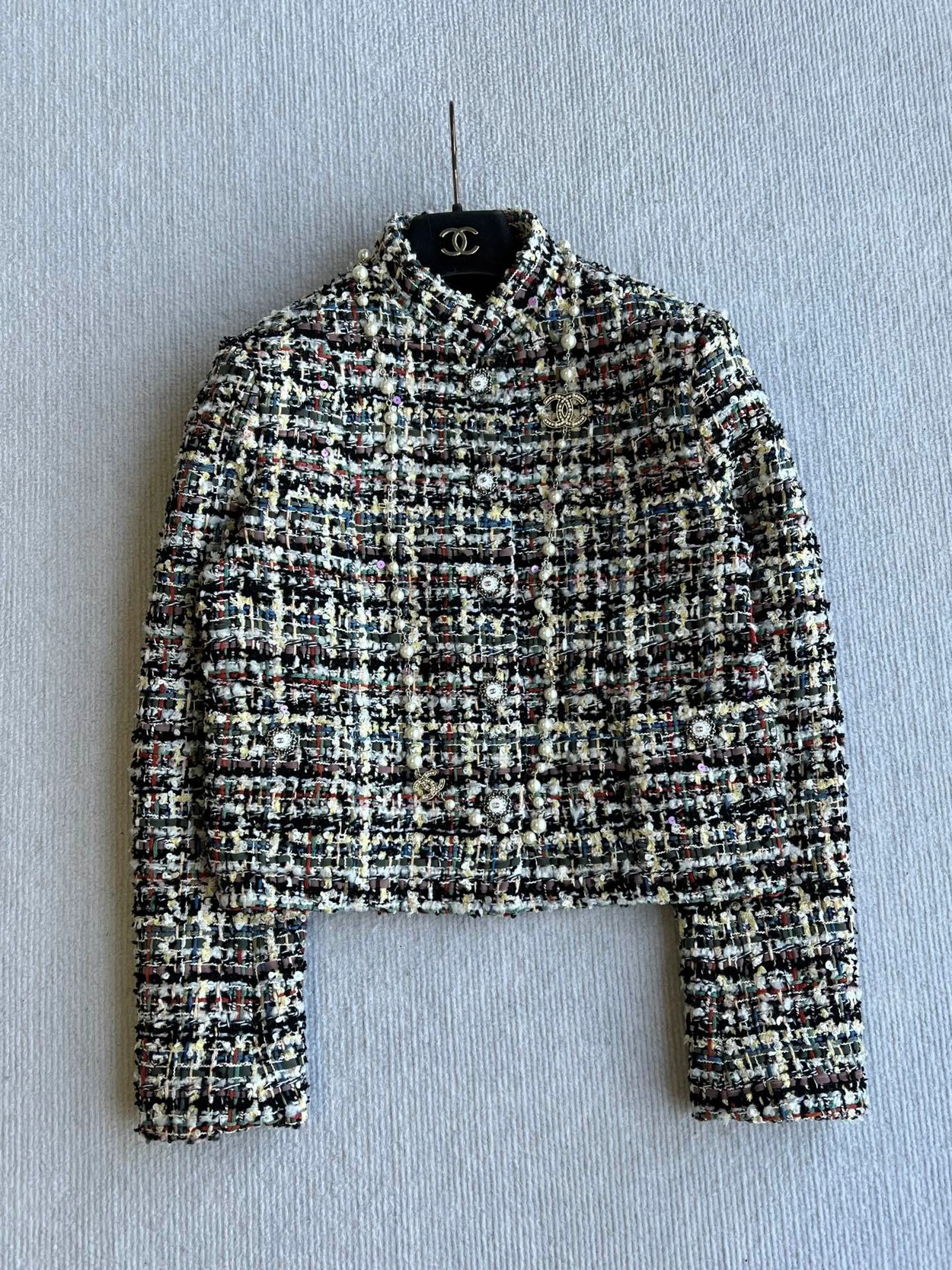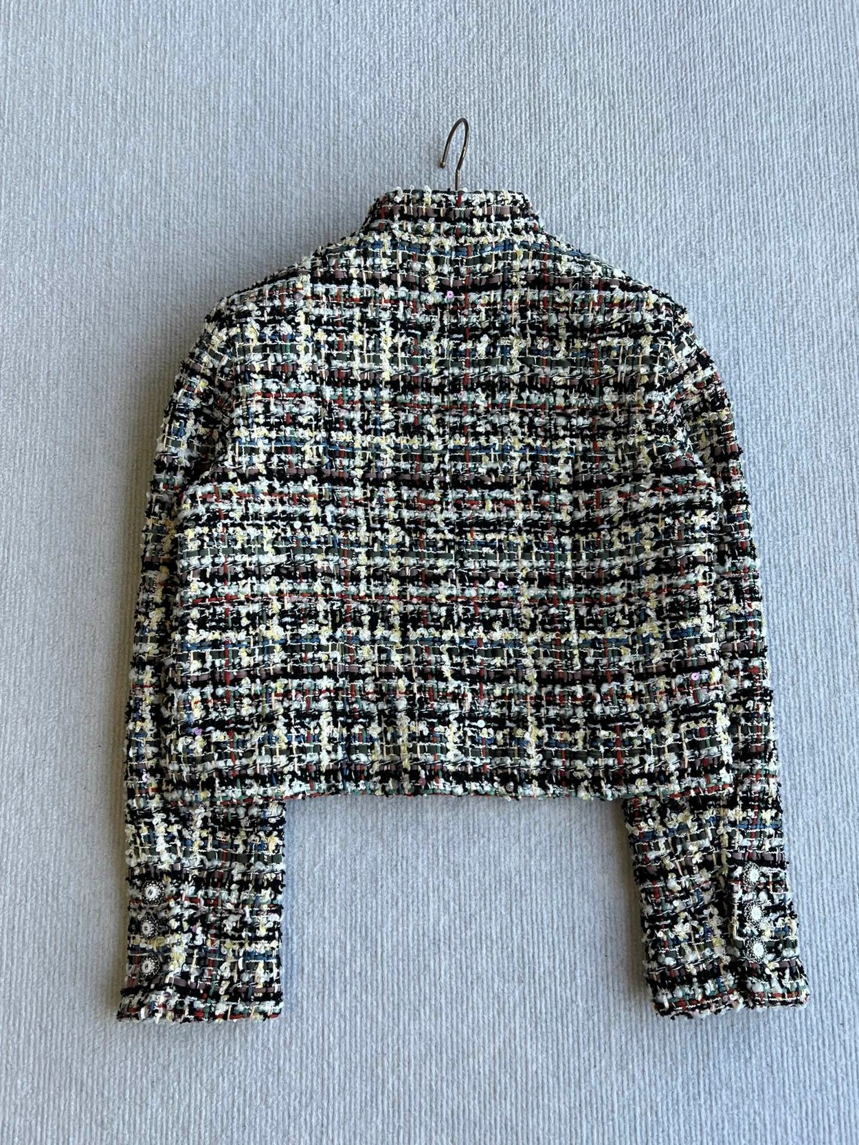𝐜𝐡𝐚𝐧𝐞𝐥 𝟐𝟔𝐂25/26早春系列新款彩色外套+半裙套装~ 定制彩纱粗花呢小香风套装 上衣采用立领短款剪裁 彩纱混纺的粗花呢面料肌理感十足 黑白红蓝交织出丰富层次 系列半裙采用A字版型藏肉显瘦 还能拉长腿部线条 整套搭配自带高级氛围感 一套搭配不易出错 36/38/40✈️S胸围94 衣长47 肩宽39 袖长58