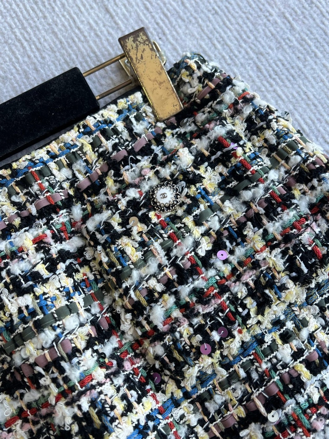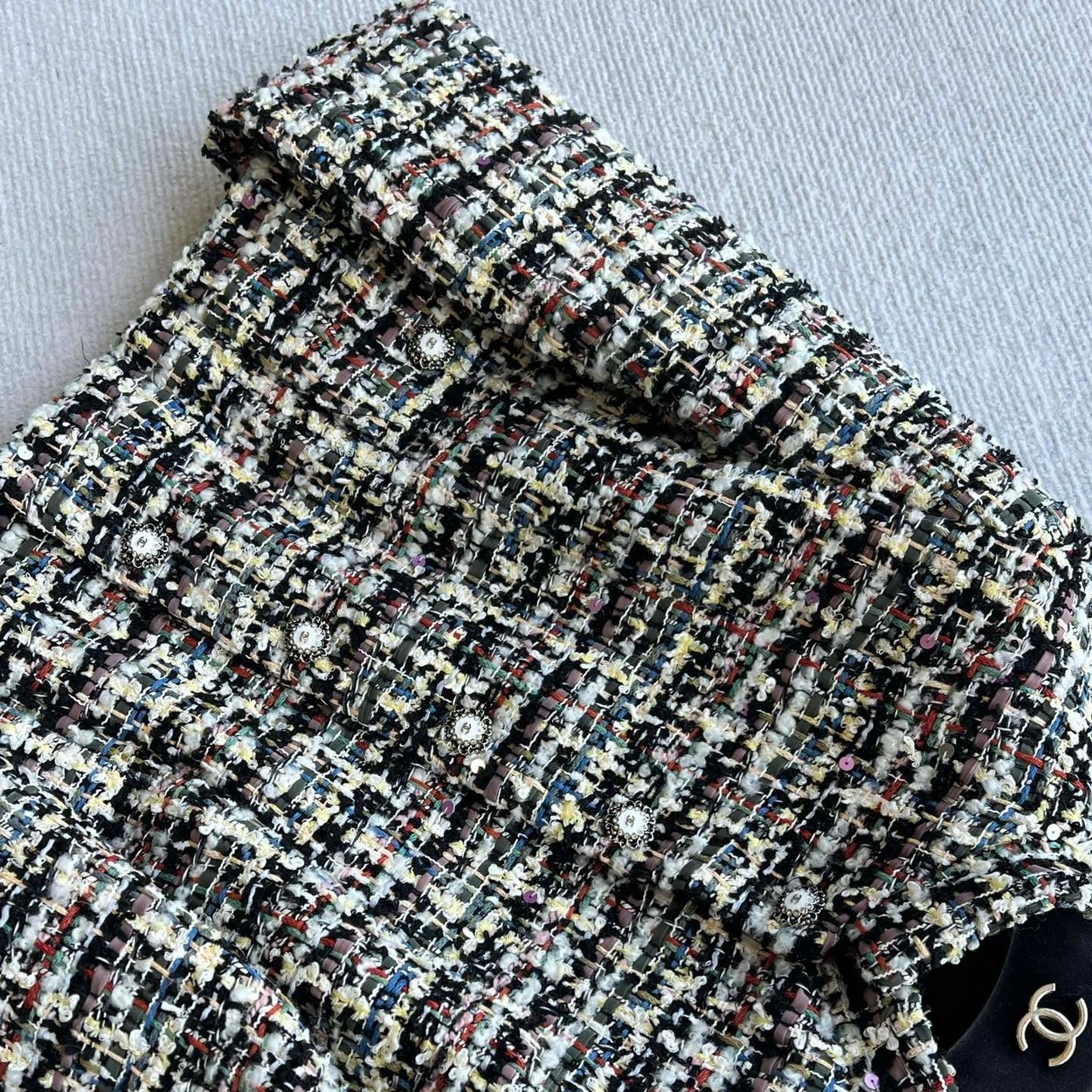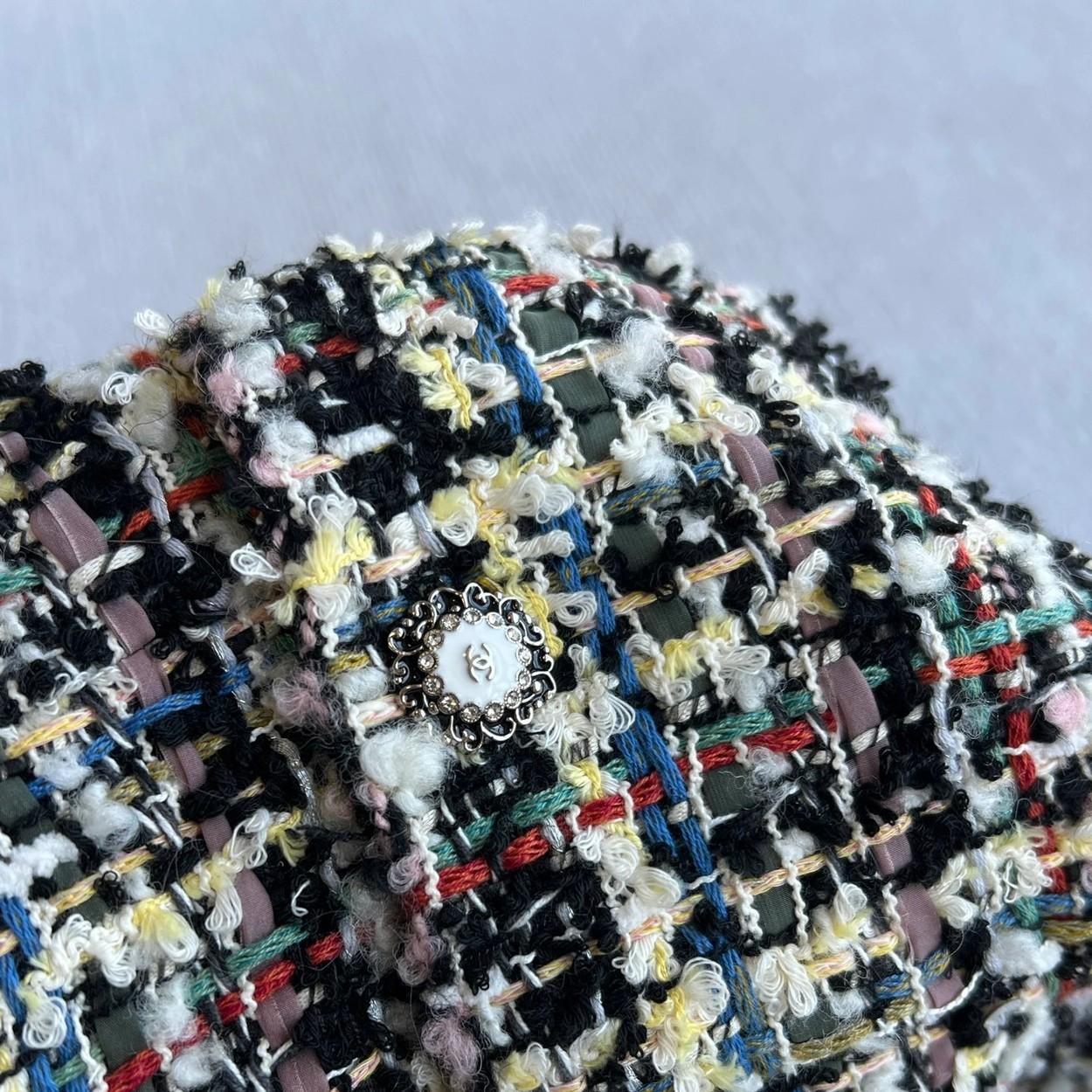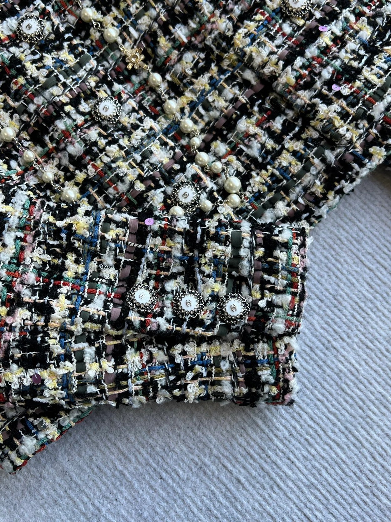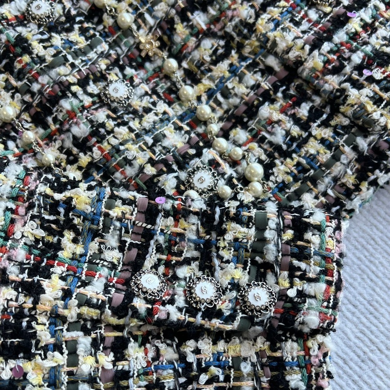 𝐜𝐡𝐚𝐧𝐞𝐥 𝟐𝟔𝐂25/26早春系列新款彩色外套+半裙套装~ 定制彩纱粗花呢小香风套装 上衣采用立领短款剪裁 彩纱混纺的粗花呢面料肌理感十足 黑白红蓝交织出丰富层次 系列半裙采用A字版型藏肉显瘦 还能拉长腿部线条 整套搭配自带高级氛围感 一套搭配不易出错 36/38/40✈️ S腰围70 裙长37~