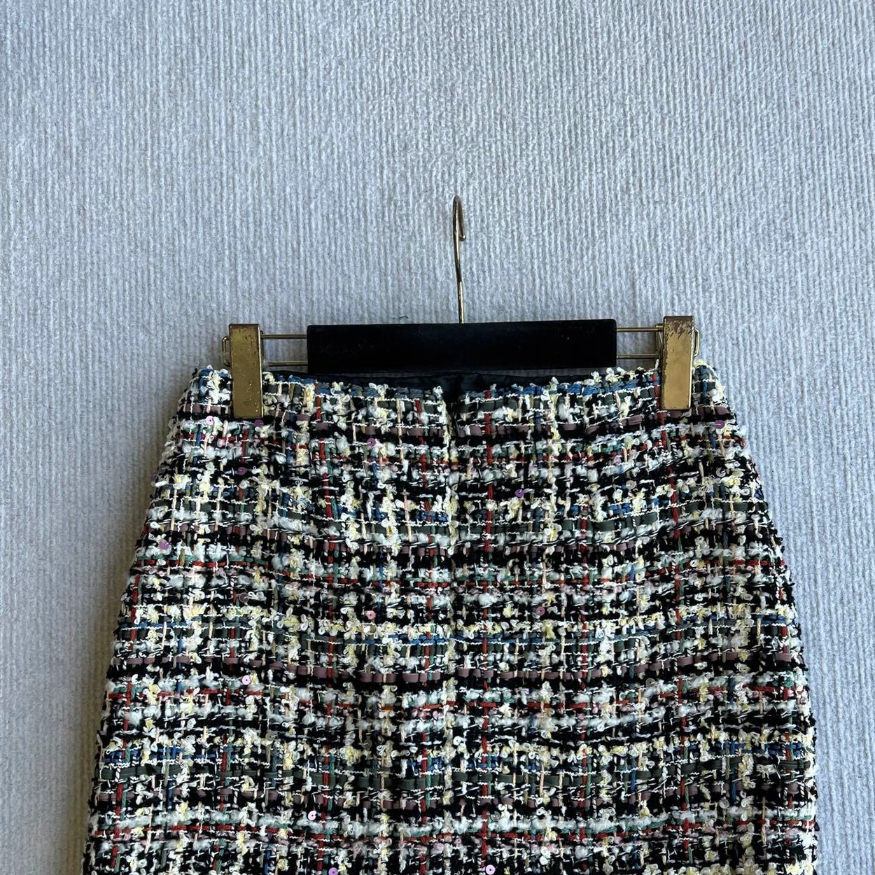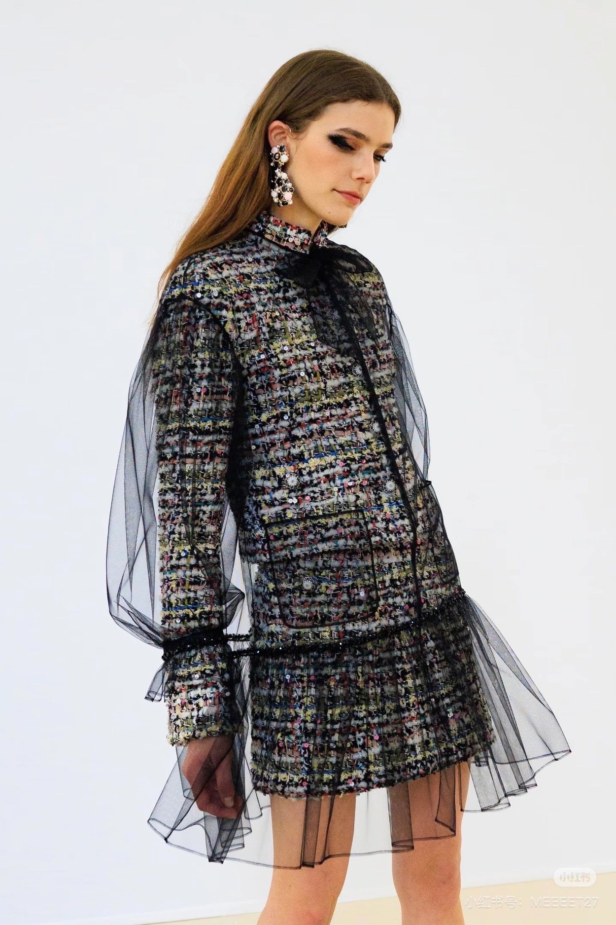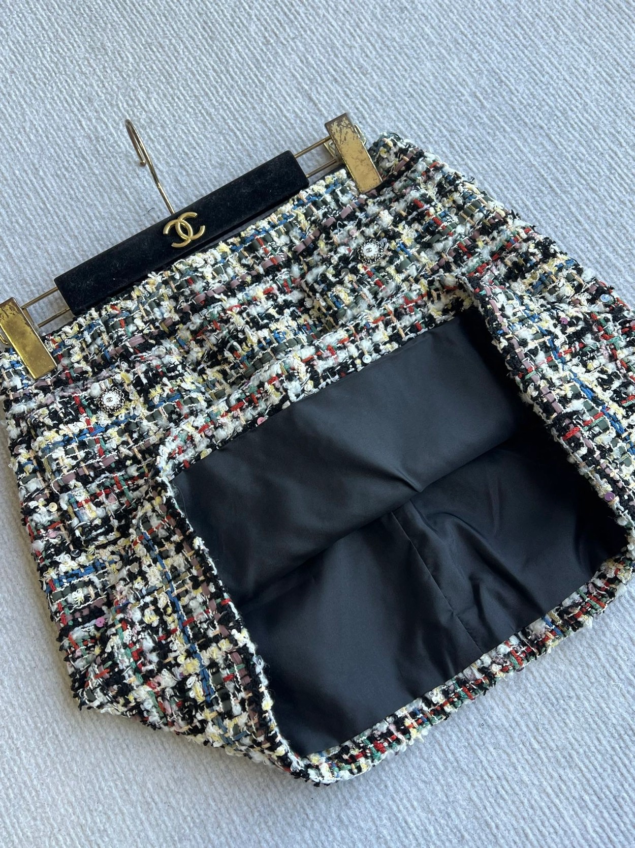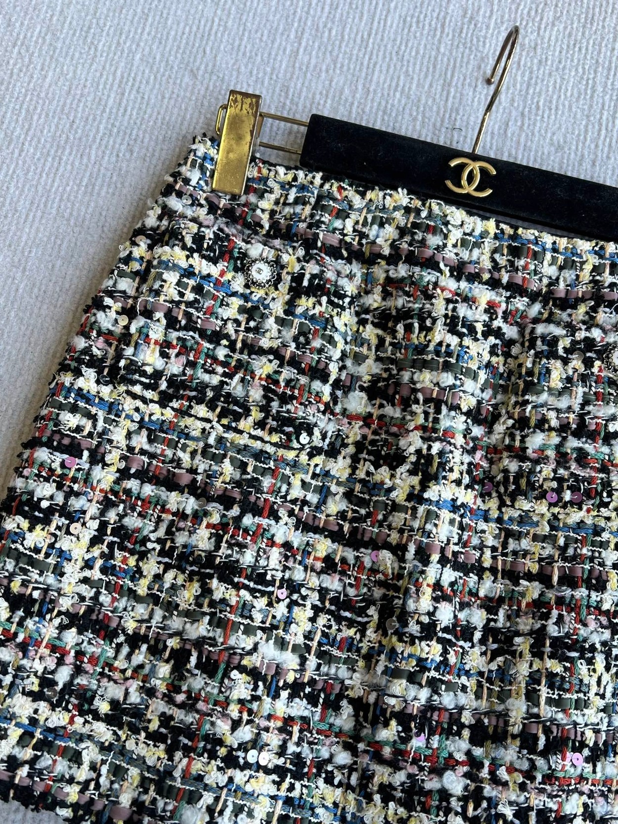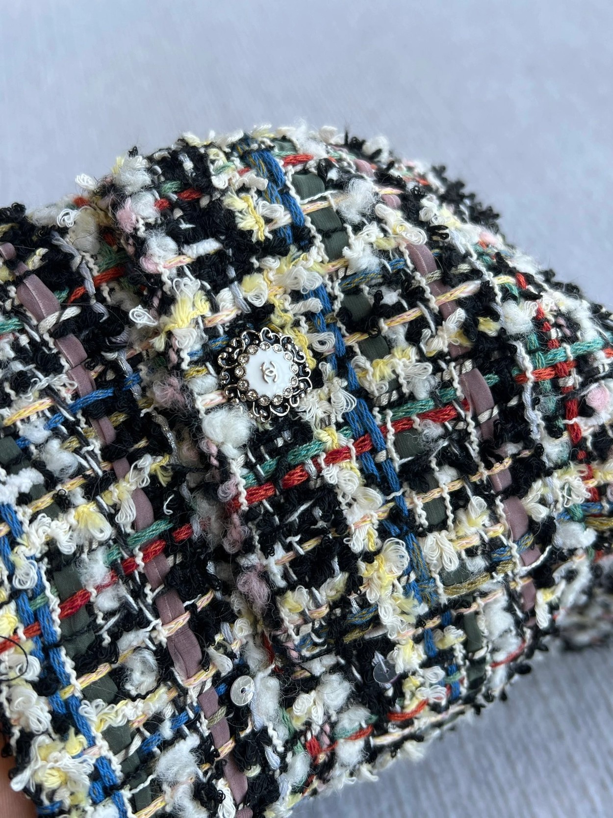 𝐜𝐡𝐚𝐧𝐞𝐥 𝟐𝟔𝐂25/26早春系列新款彩色外套+半裙套装~ 定制彩纱粗花呢小香风套装 上衣采用立领短款剪裁 彩纱混纺的粗花呢面料肌理感十足 黑白红蓝交织出丰富层次 系列半裙采用A字版型藏肉显瘦 还能拉长腿部线条 整套搭配自带高级氛围感 一套搭配不易出错 36/38/40✈️ S腰围70 裙长37~