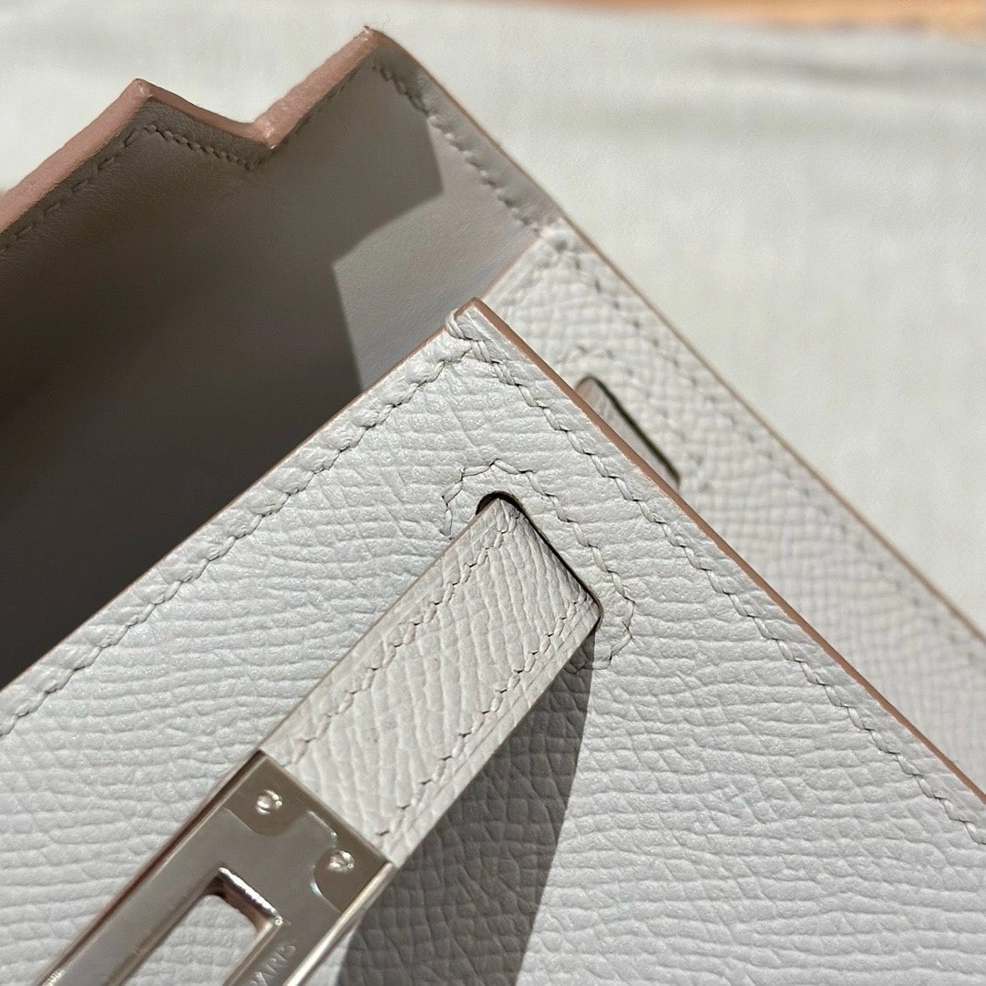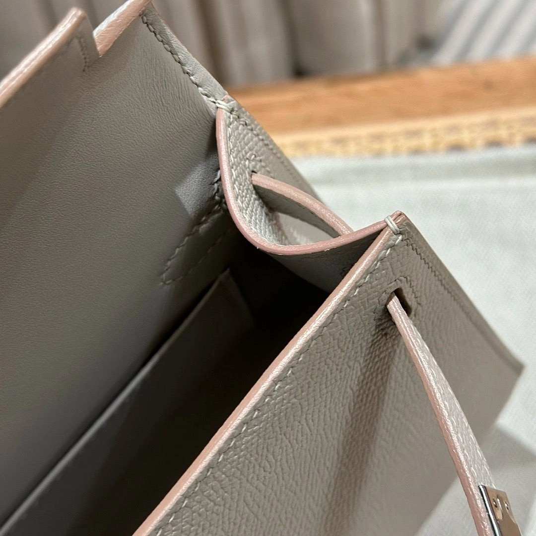 迷你凯莉,珍珠灰,法国进口原厂牛皮,银扣,高级全手工专属定制‼️