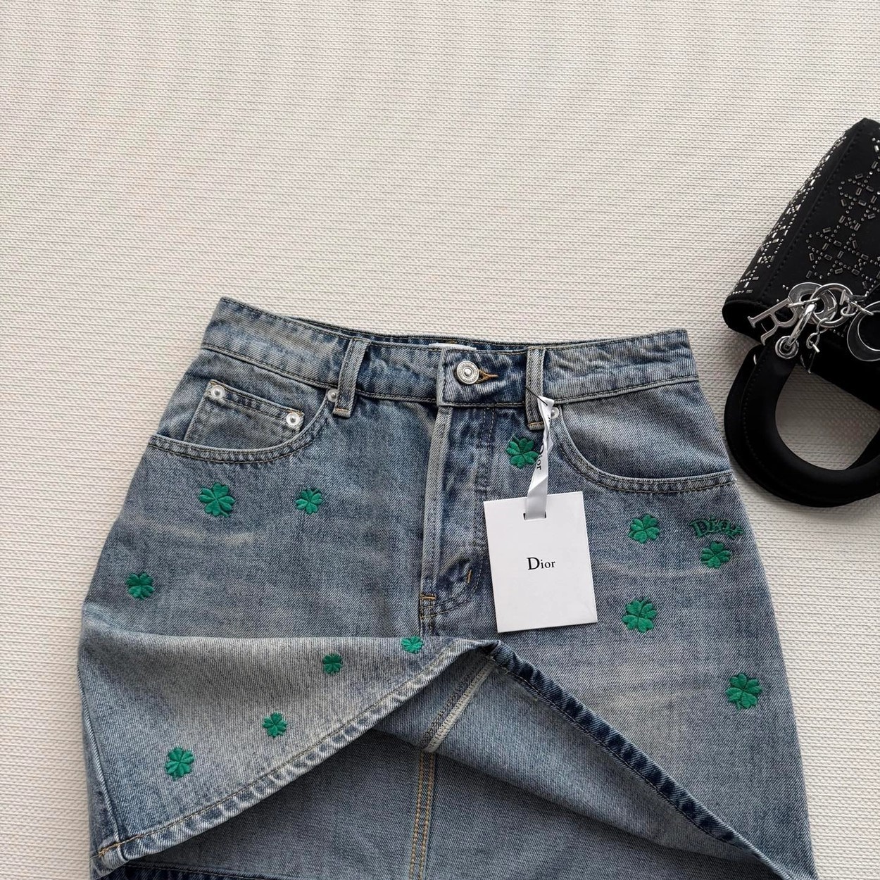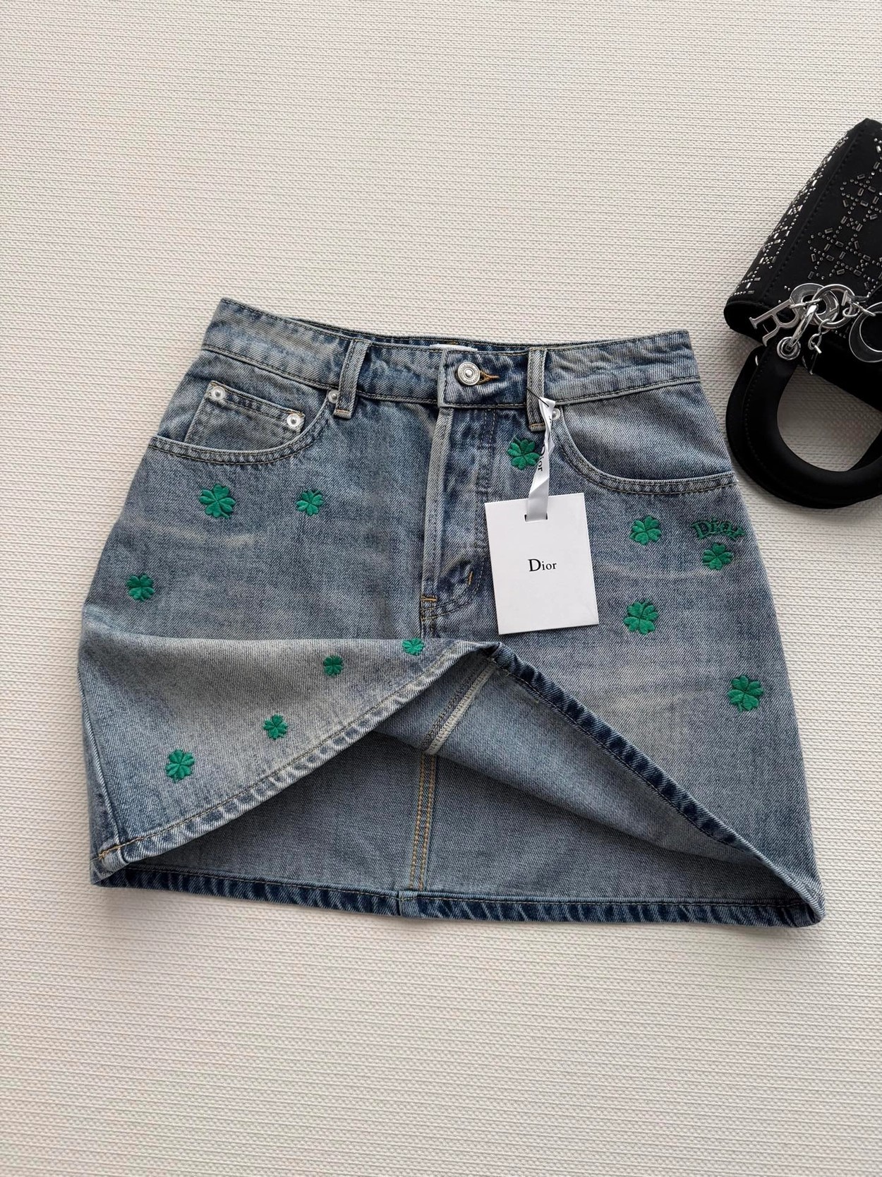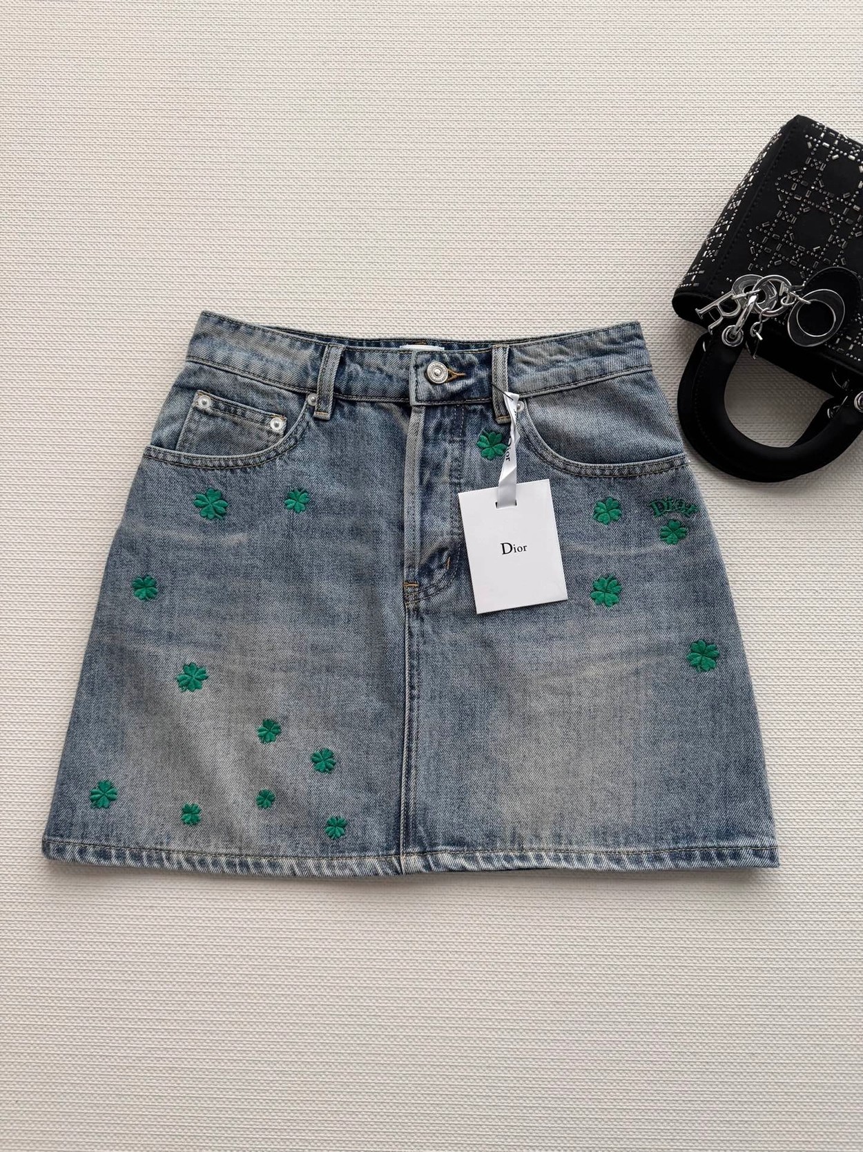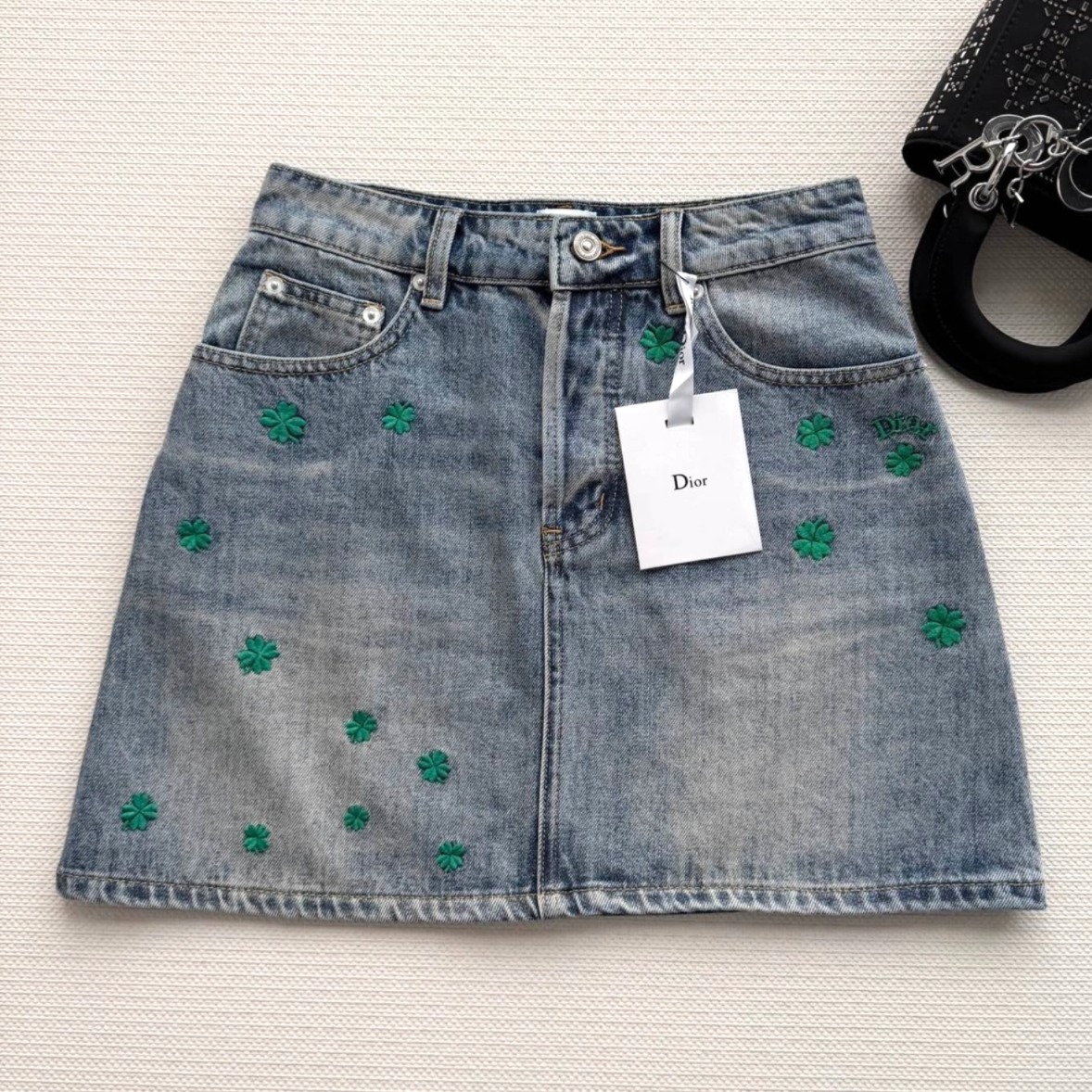 Dio*🆕2026春夏新款女士蓝色时尚百搭高级感气质四叶草A版半裙 顶级版本,选用纯棉牛仔面料,五金YB定制,双重酵素洗水固色 做工精细,高端品质,版型超级正,上身效果棒棒的时尚百搭看上高级感满满SML.AE0666270