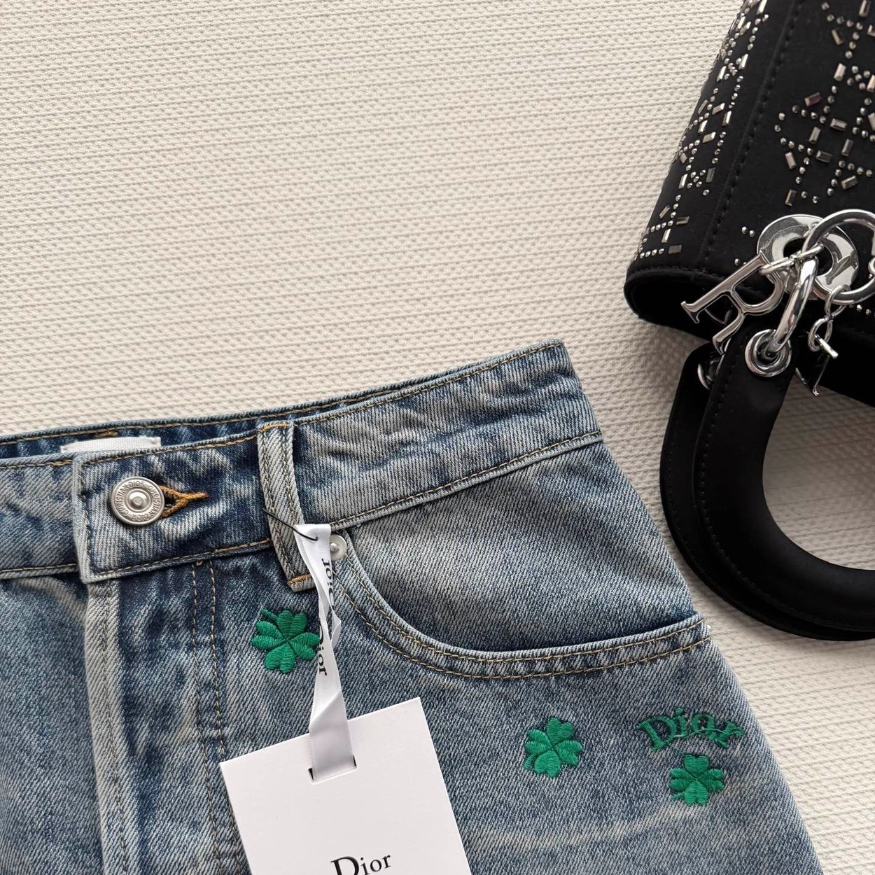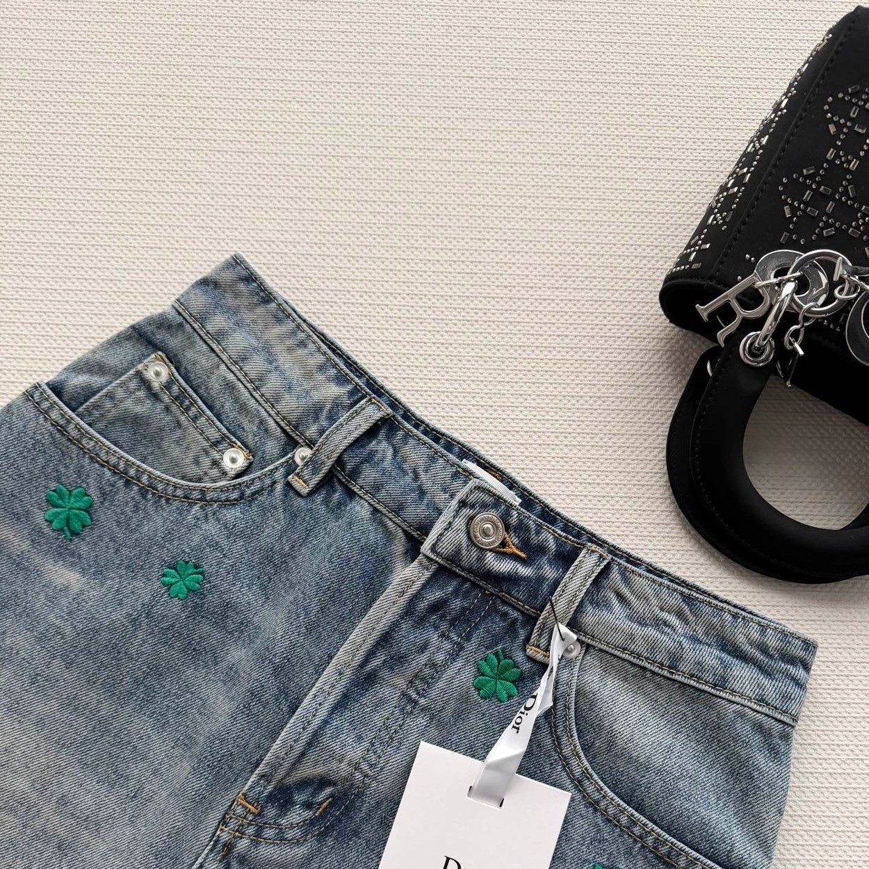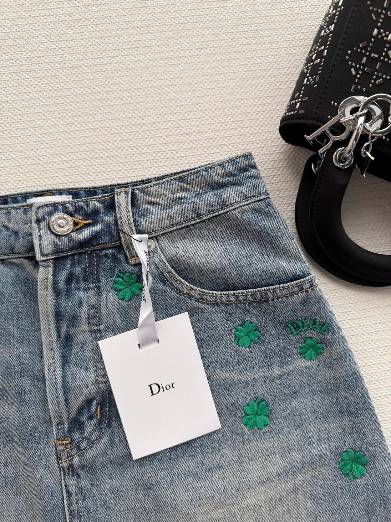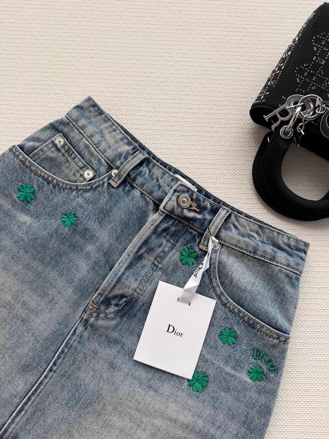 Dio*🆕2026春夏新款女士蓝色时尚百搭高级感气质四叶草A版半裙 顶级版本,选用纯棉牛仔面料,五金YB定制,双重酵素洗水固色 做工精细,高端品质,版型超级正,上身效果棒棒的时尚百搭看上高级感满满SML.AE0666270
