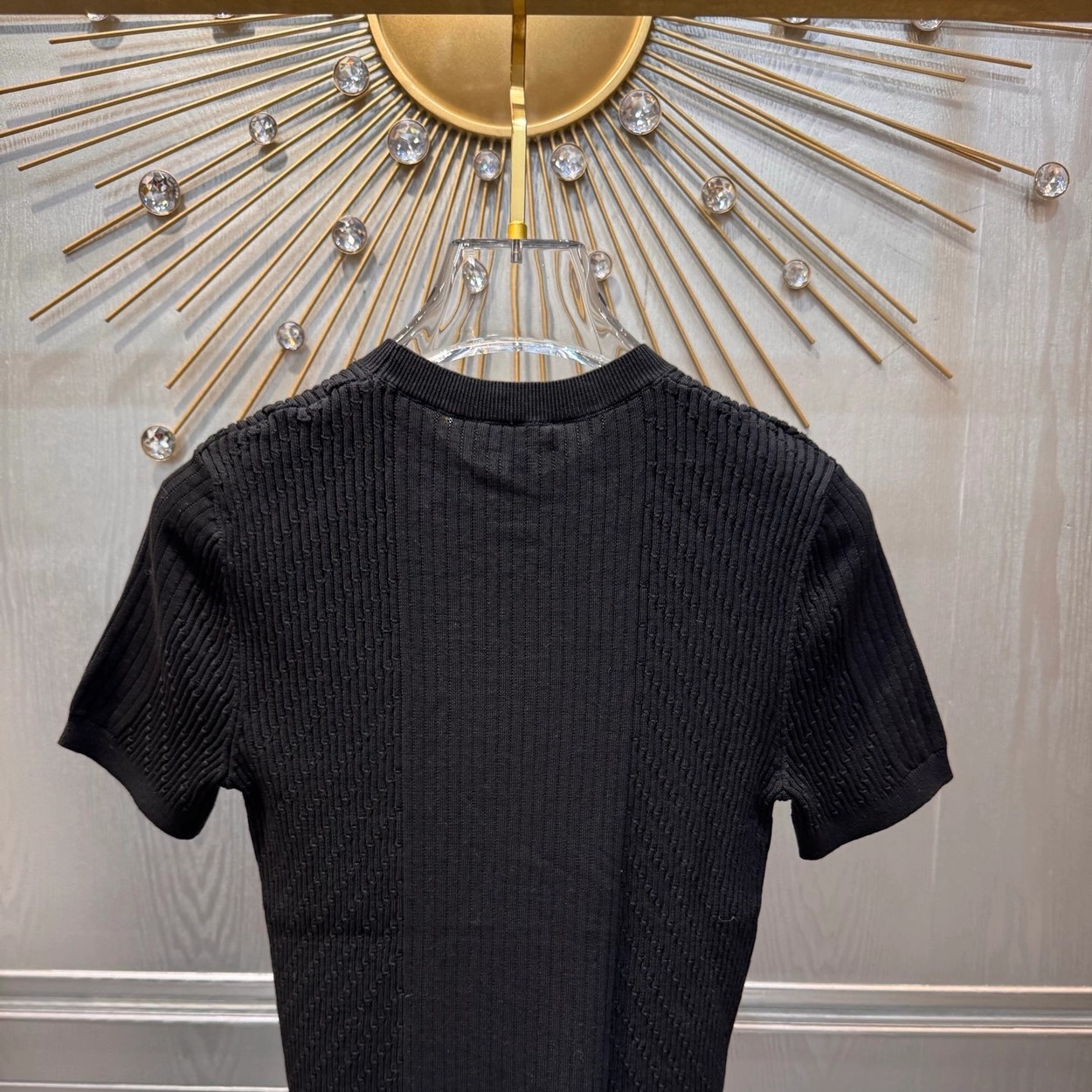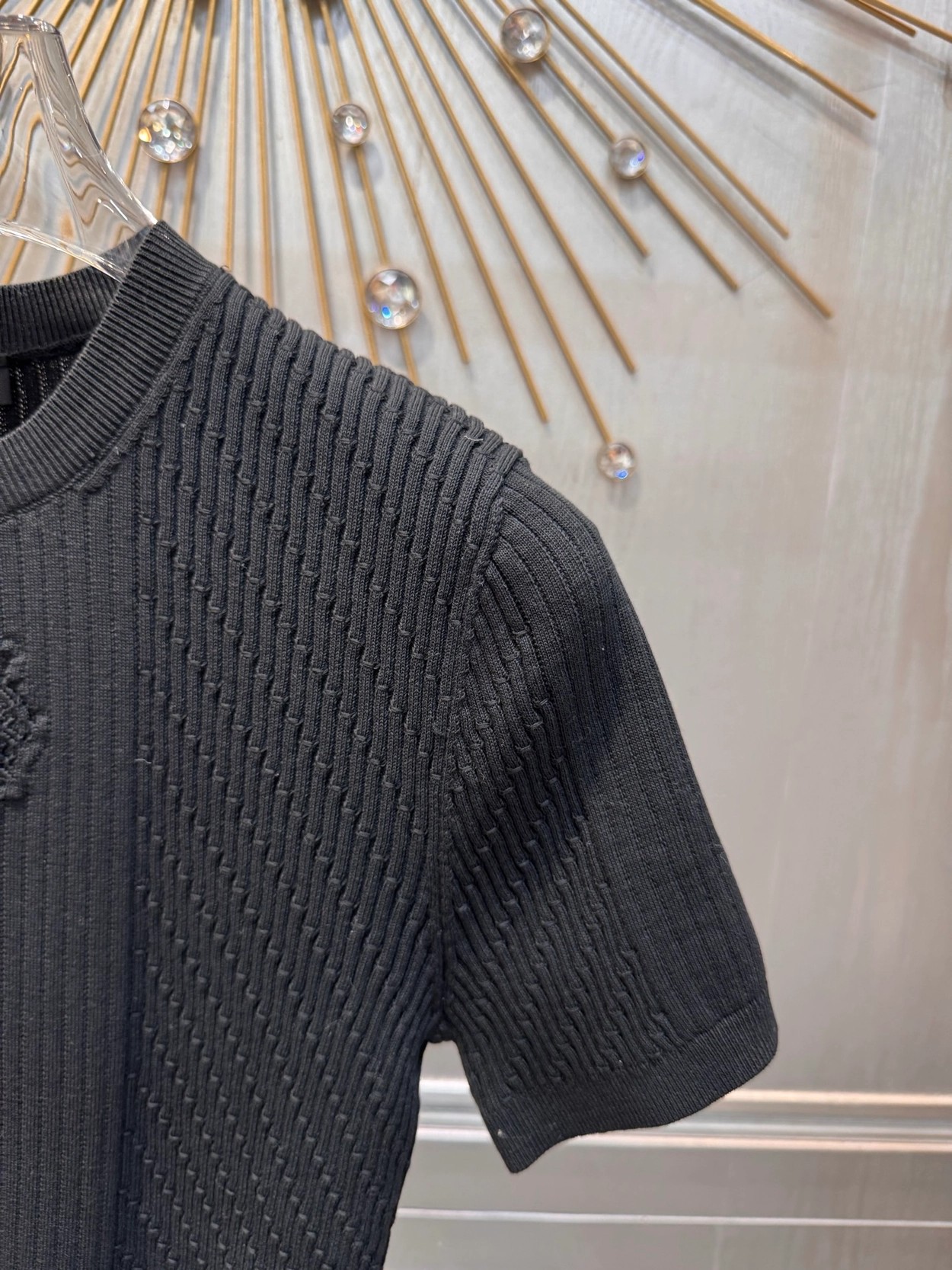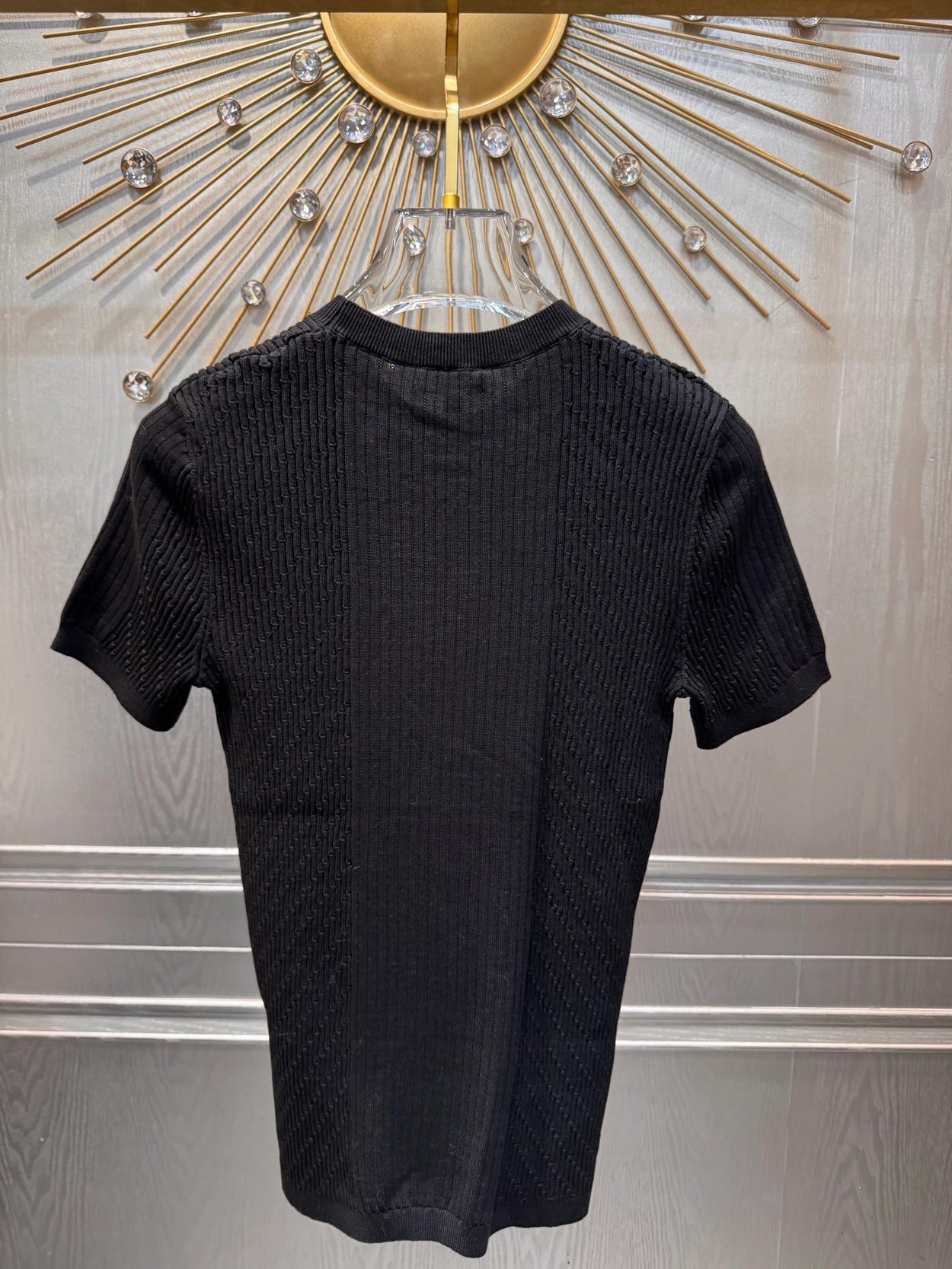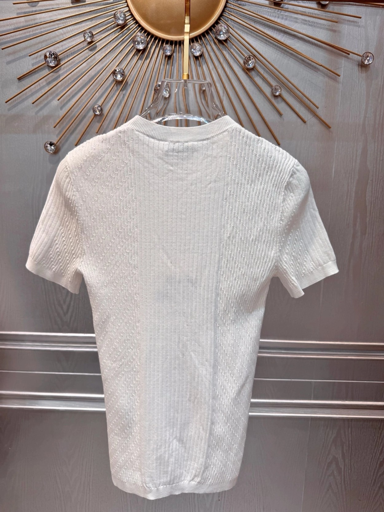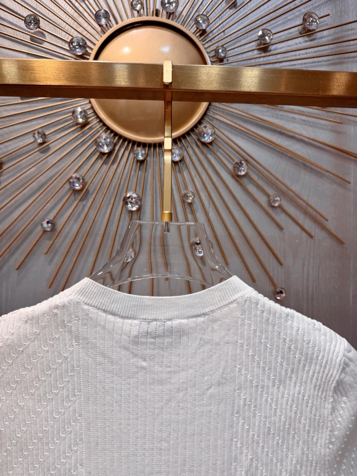 26C早春系列针织短袖,胸口山茶花标志+精致刺绣,品牌感满满!柔软针织面料,竖条纹设计,修身显瘦,圆领短袖超百搭,春夏穿超舒服。单穿或内搭都很 OK,轻松搭配半裙,牛仔裤,优雅休闲随心切换 SML