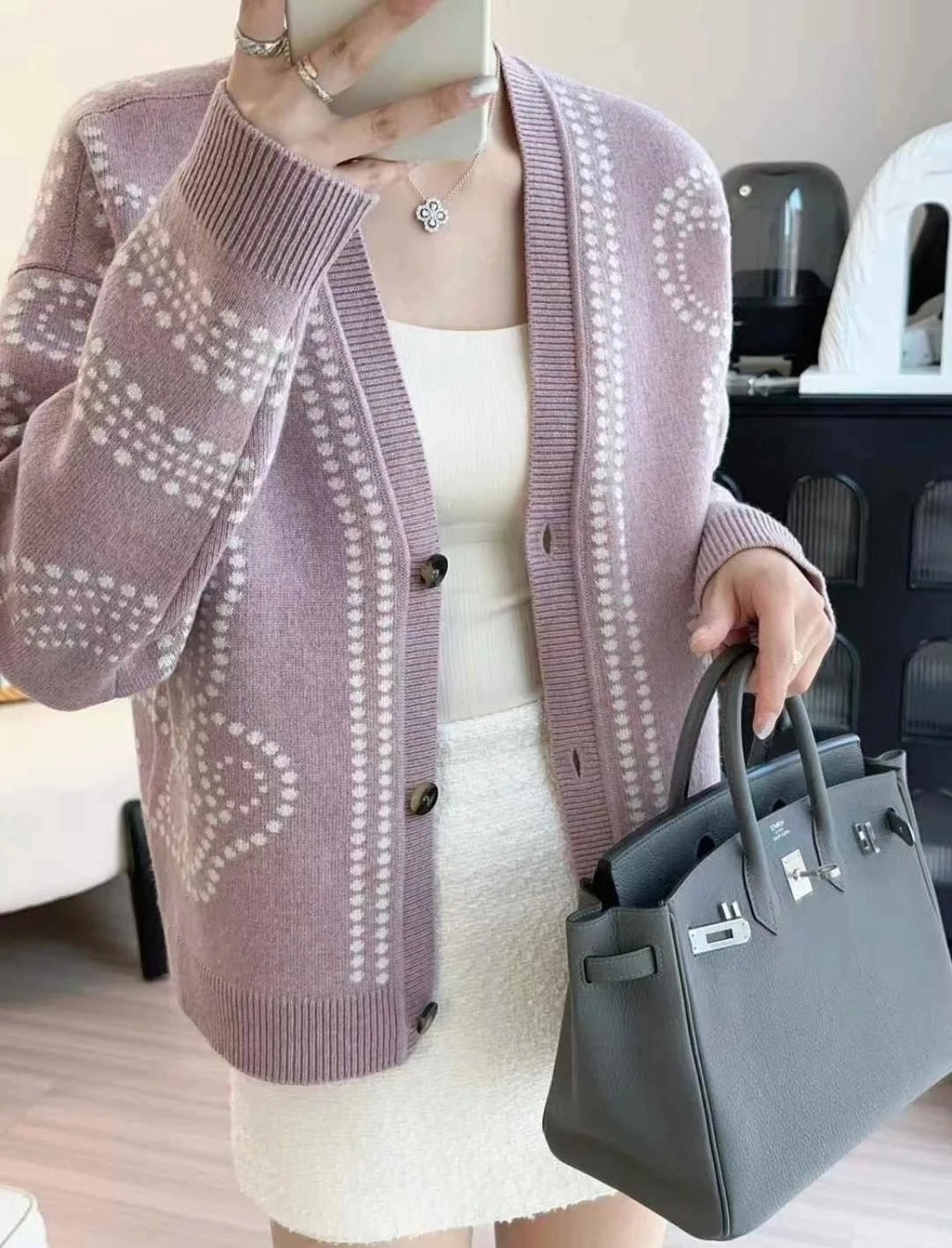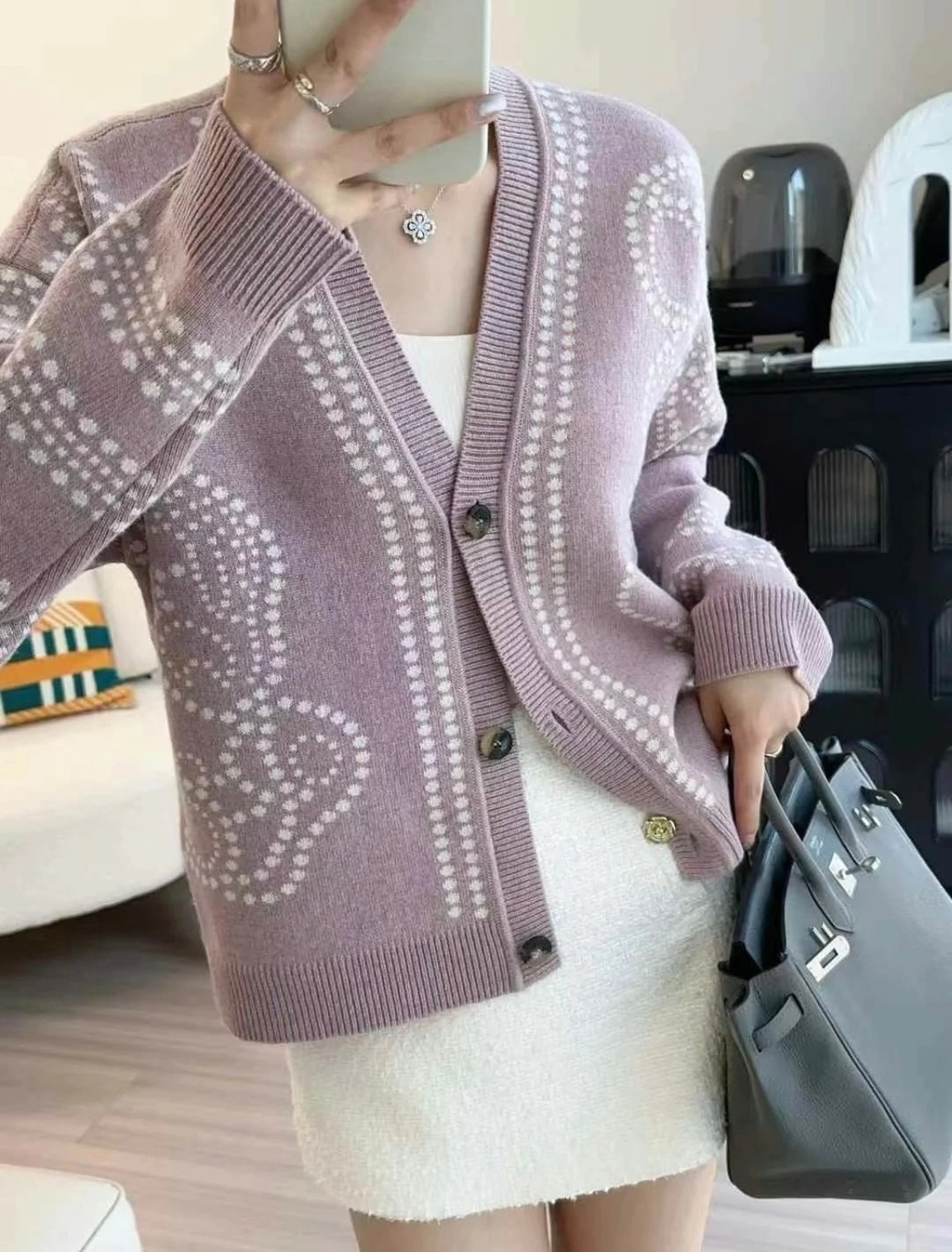 ✨Herme*s羊绒羊毛开衫 粉紫/绿色 SML