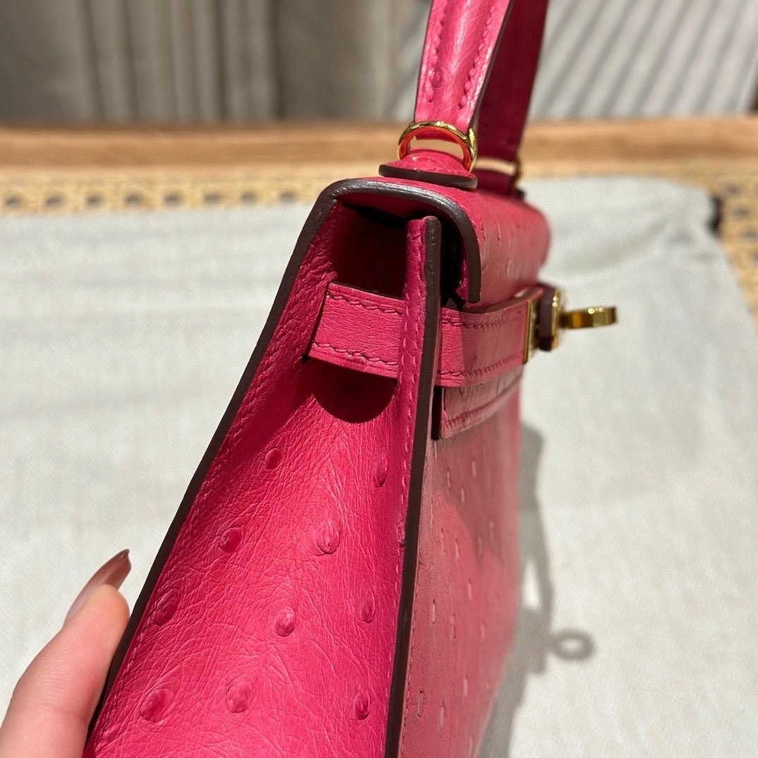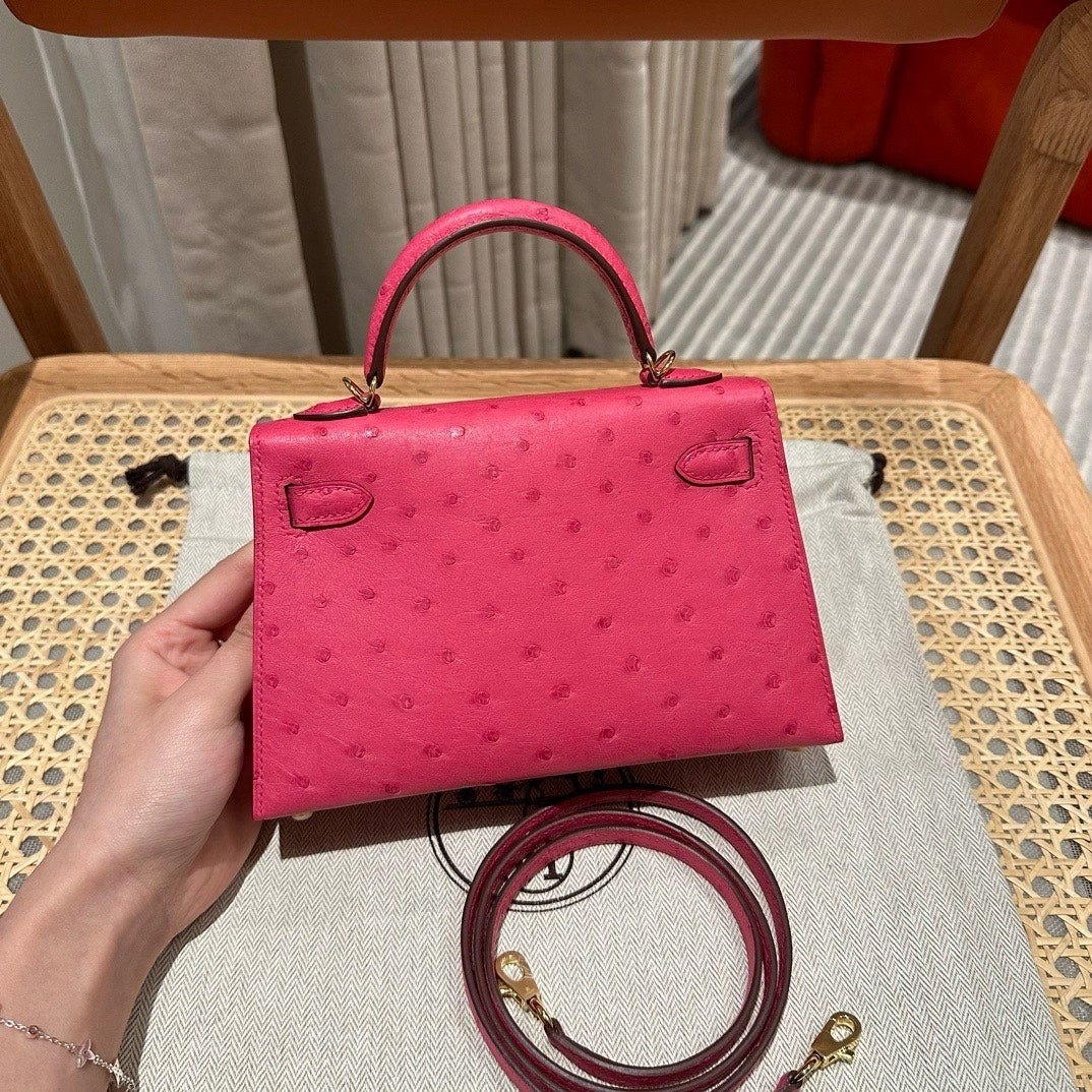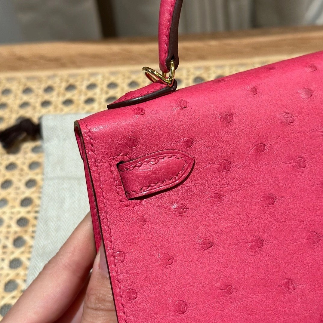凯莉二代19,桃粉色,法国进口鸵鸟皮,原产于南非,金扣,高级全手工专属定制‼️