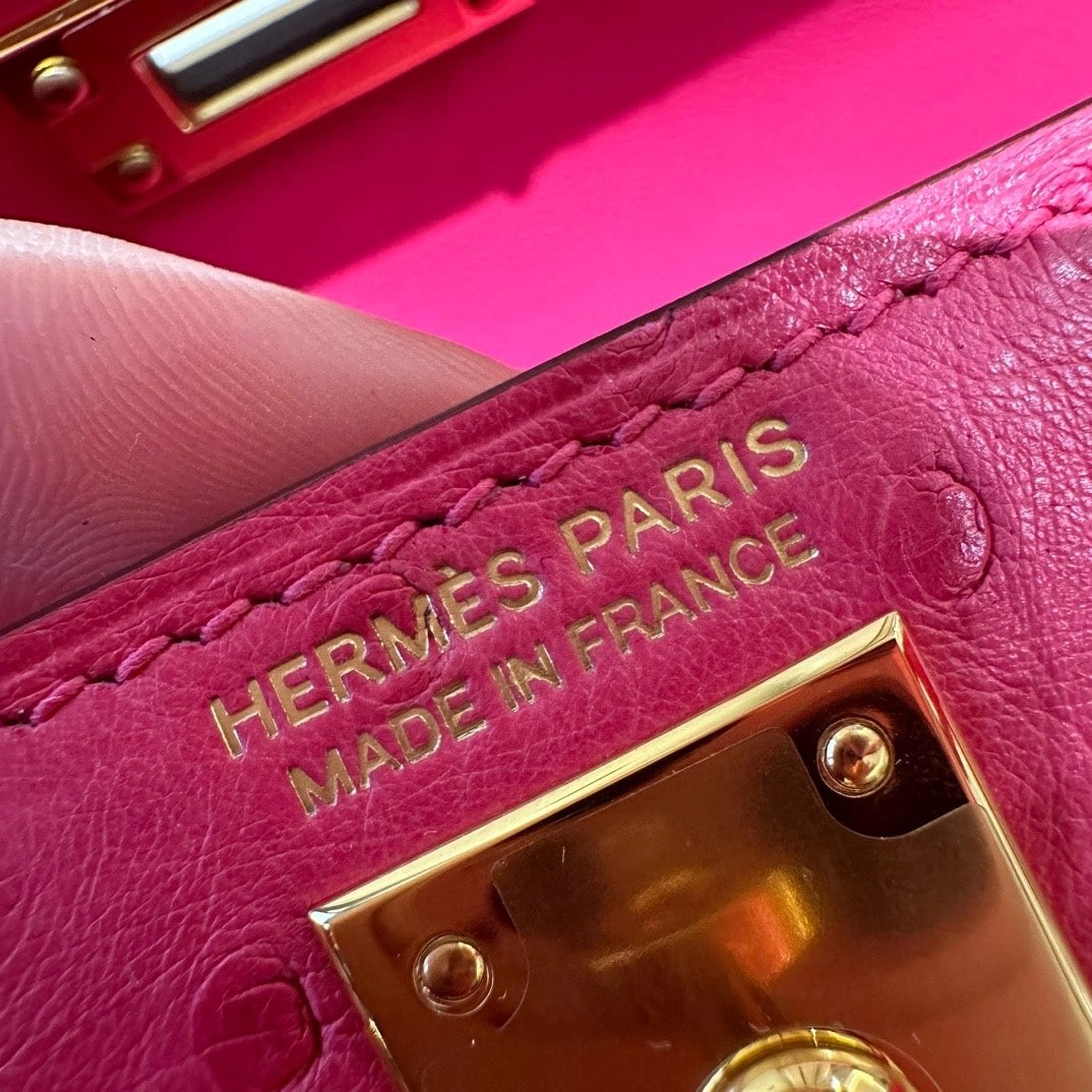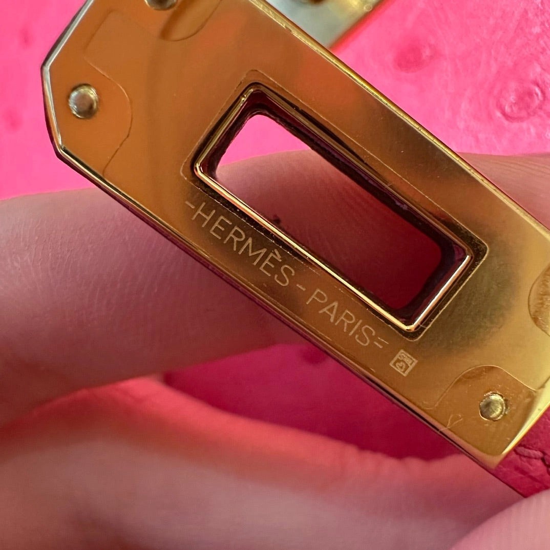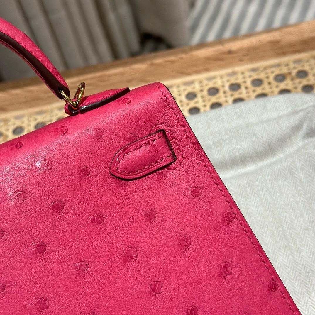 凯莉二代19,桃粉色,法国进口鸵鸟皮,原产于南非,金扣,高级全手工专属定制‼️