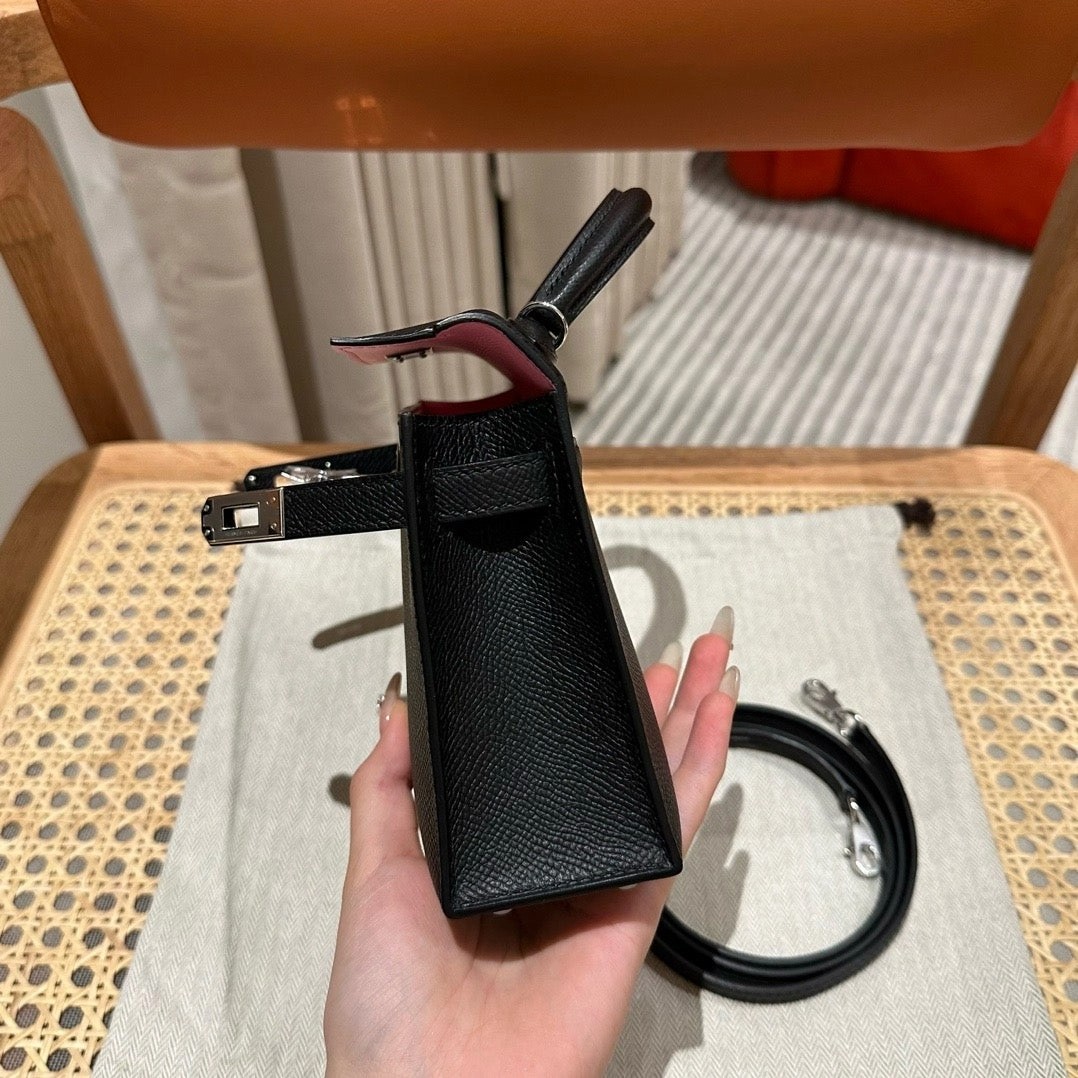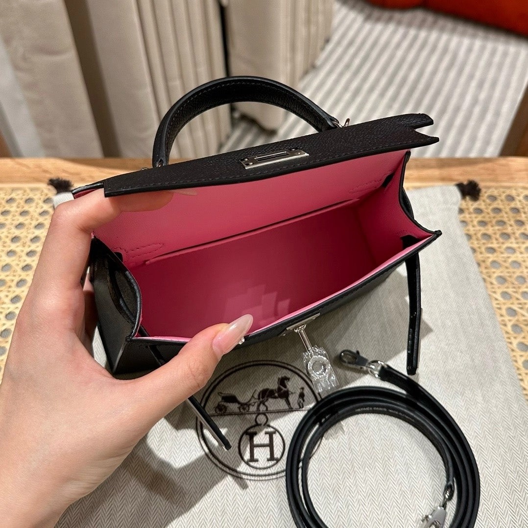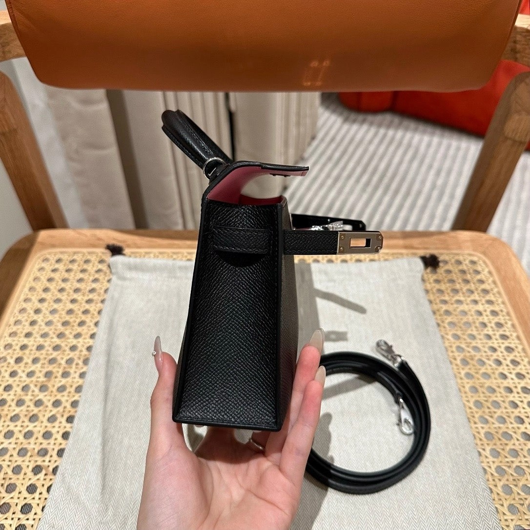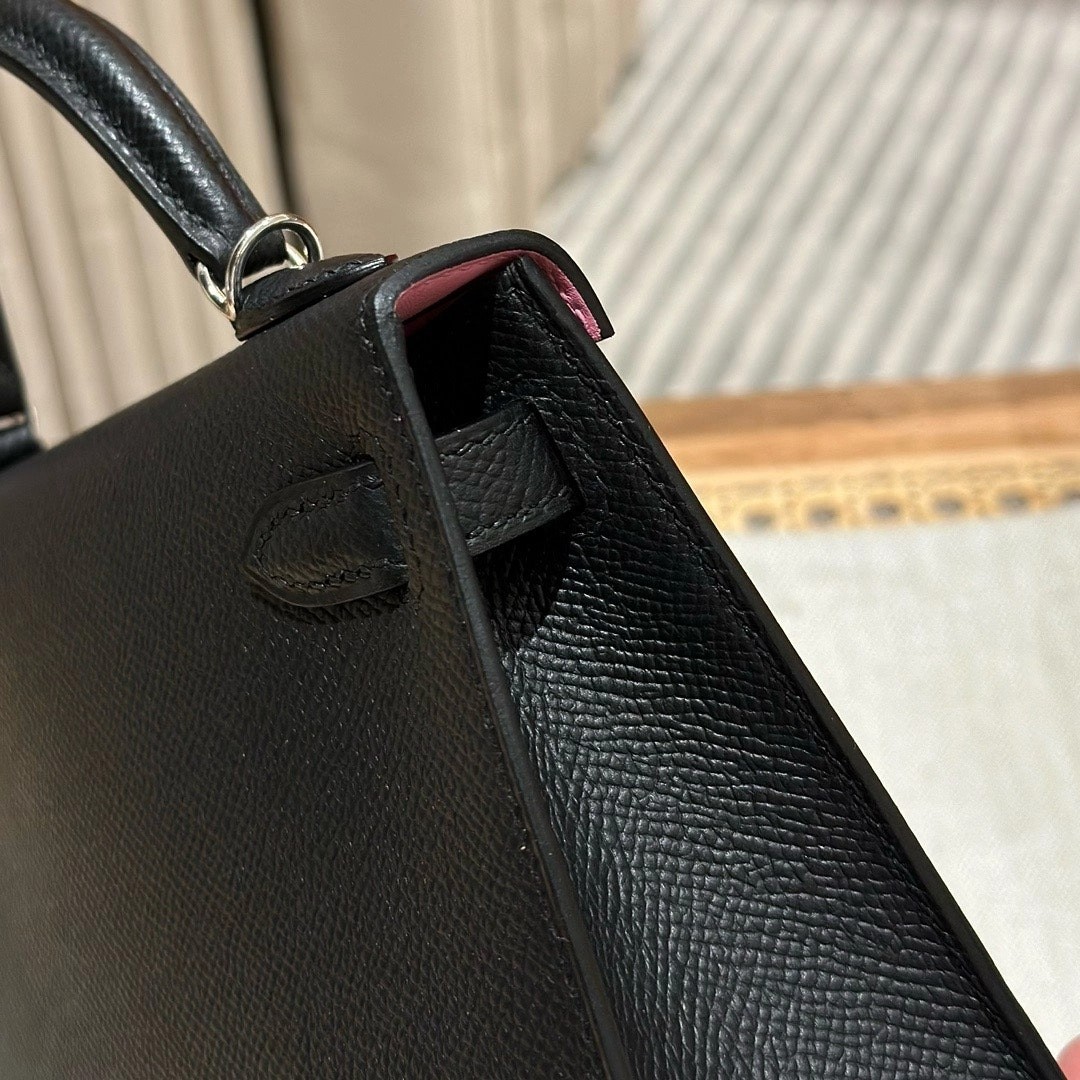 迷你凯莉,黑色内拼樱花粉,法国进口原厂牛皮,银扣,高级全手工专属定制‼️
