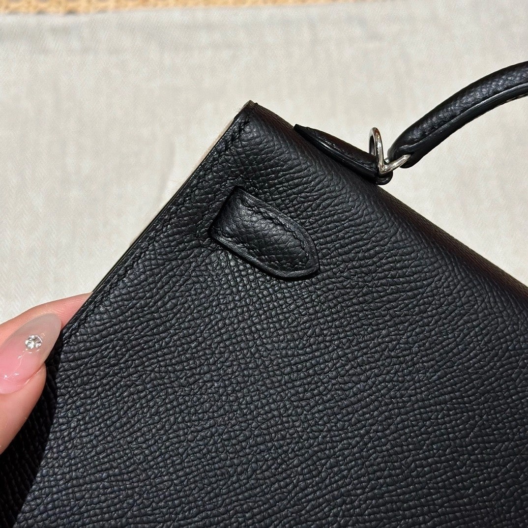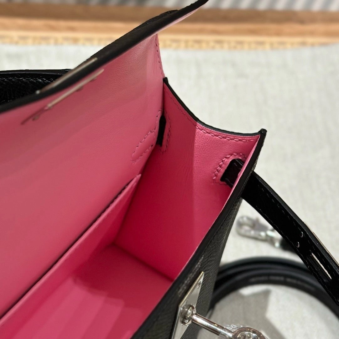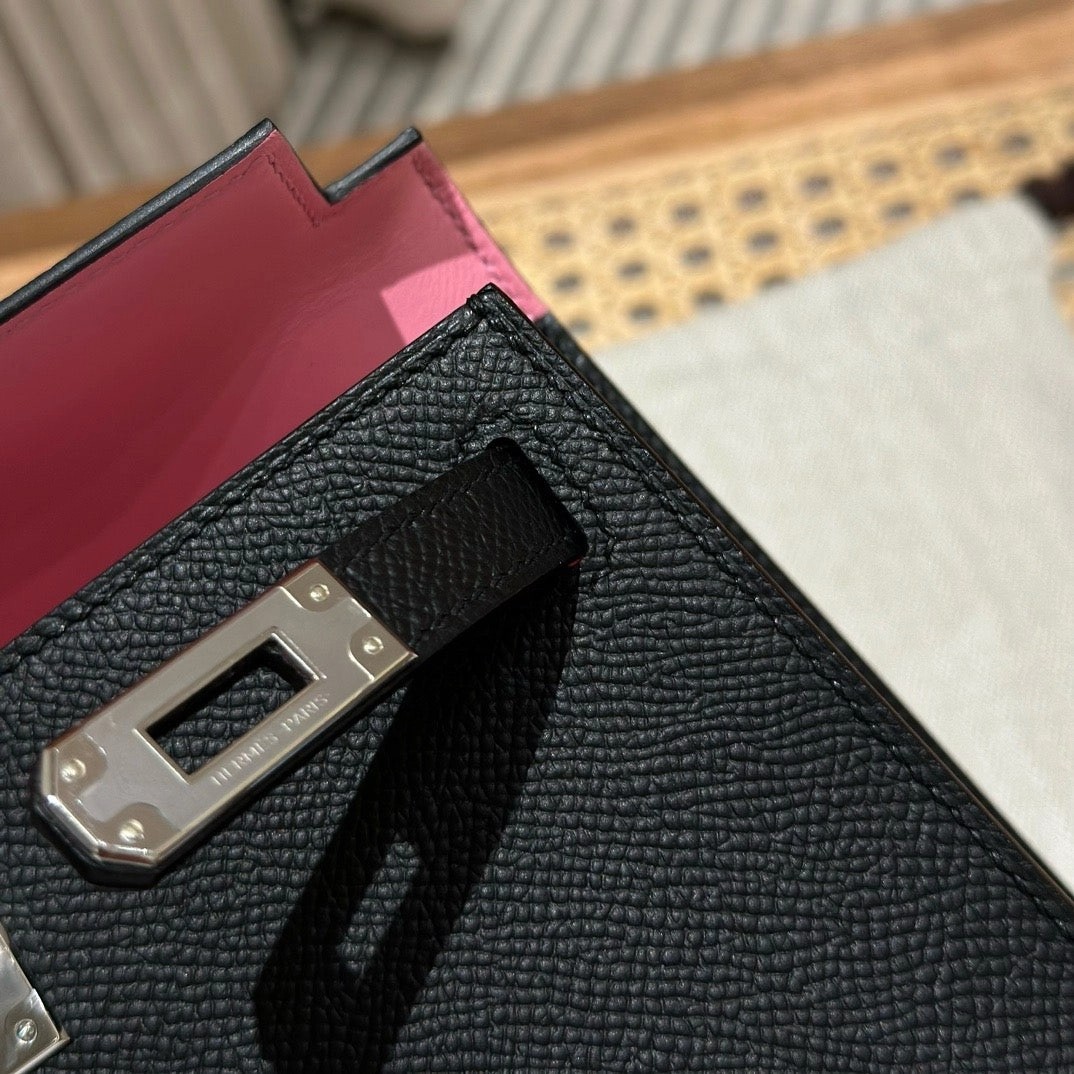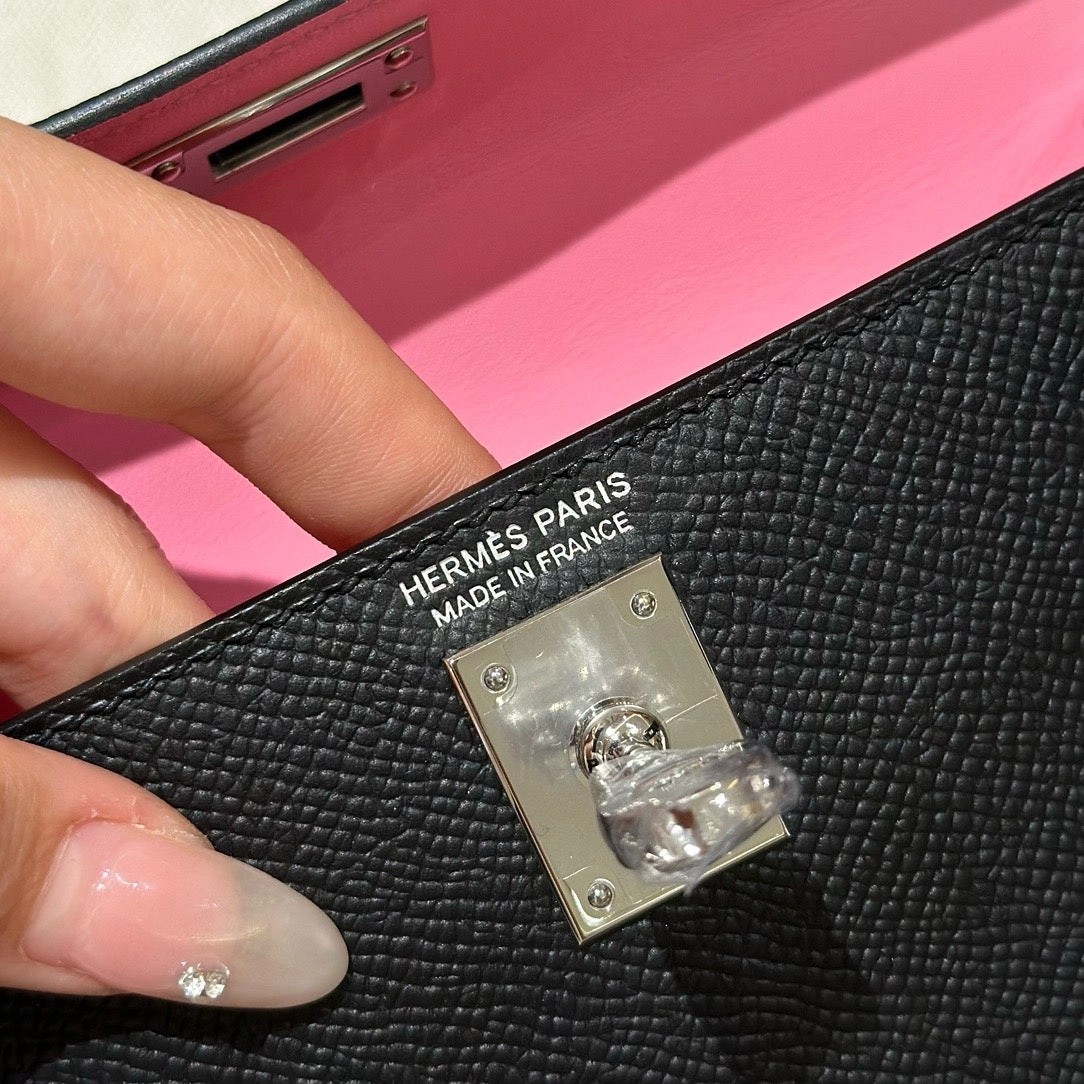 迷你凯莉,黑色内拼樱花粉,法国进口原厂牛皮,银扣,高级全手工专属定制‼️