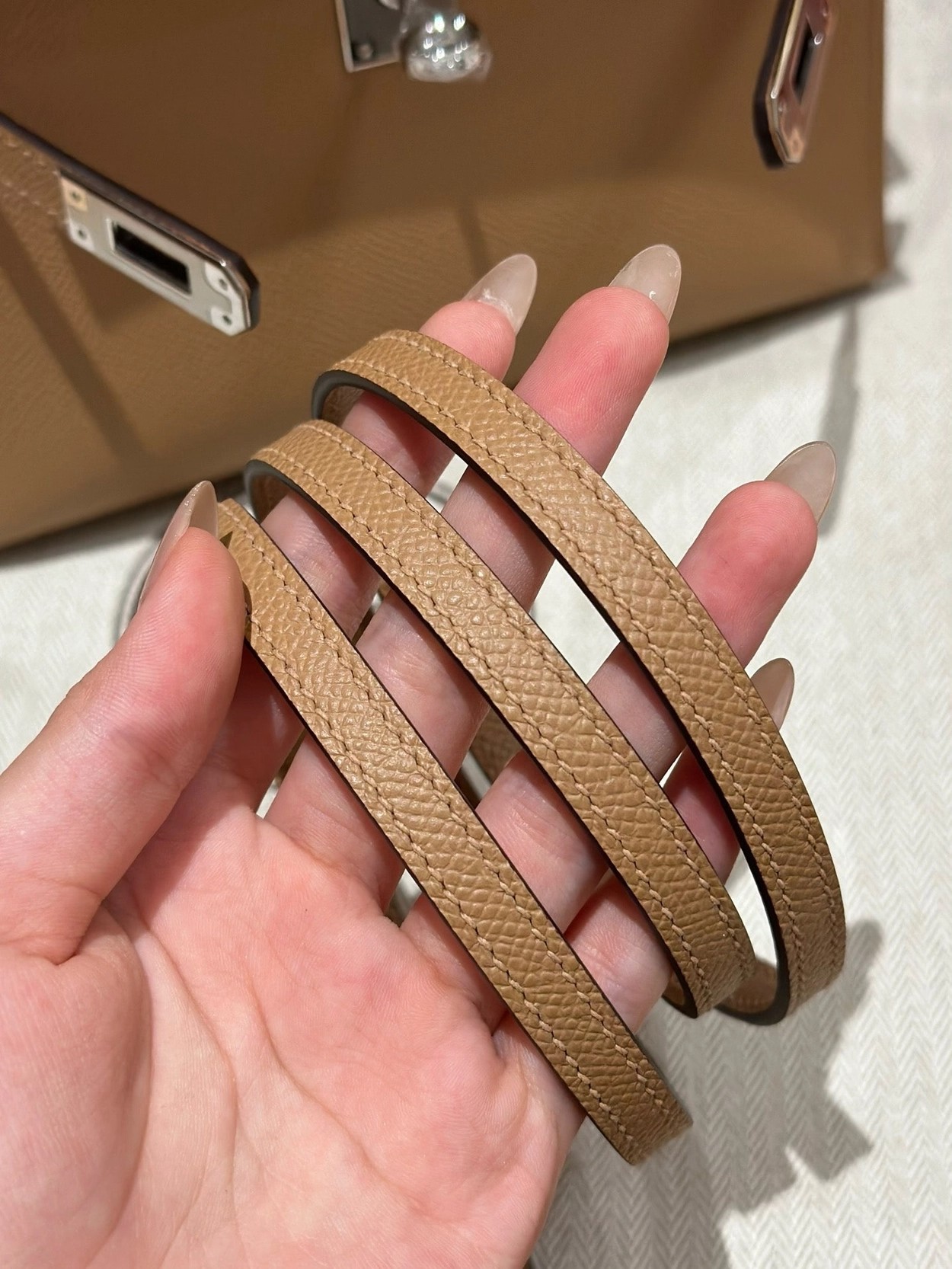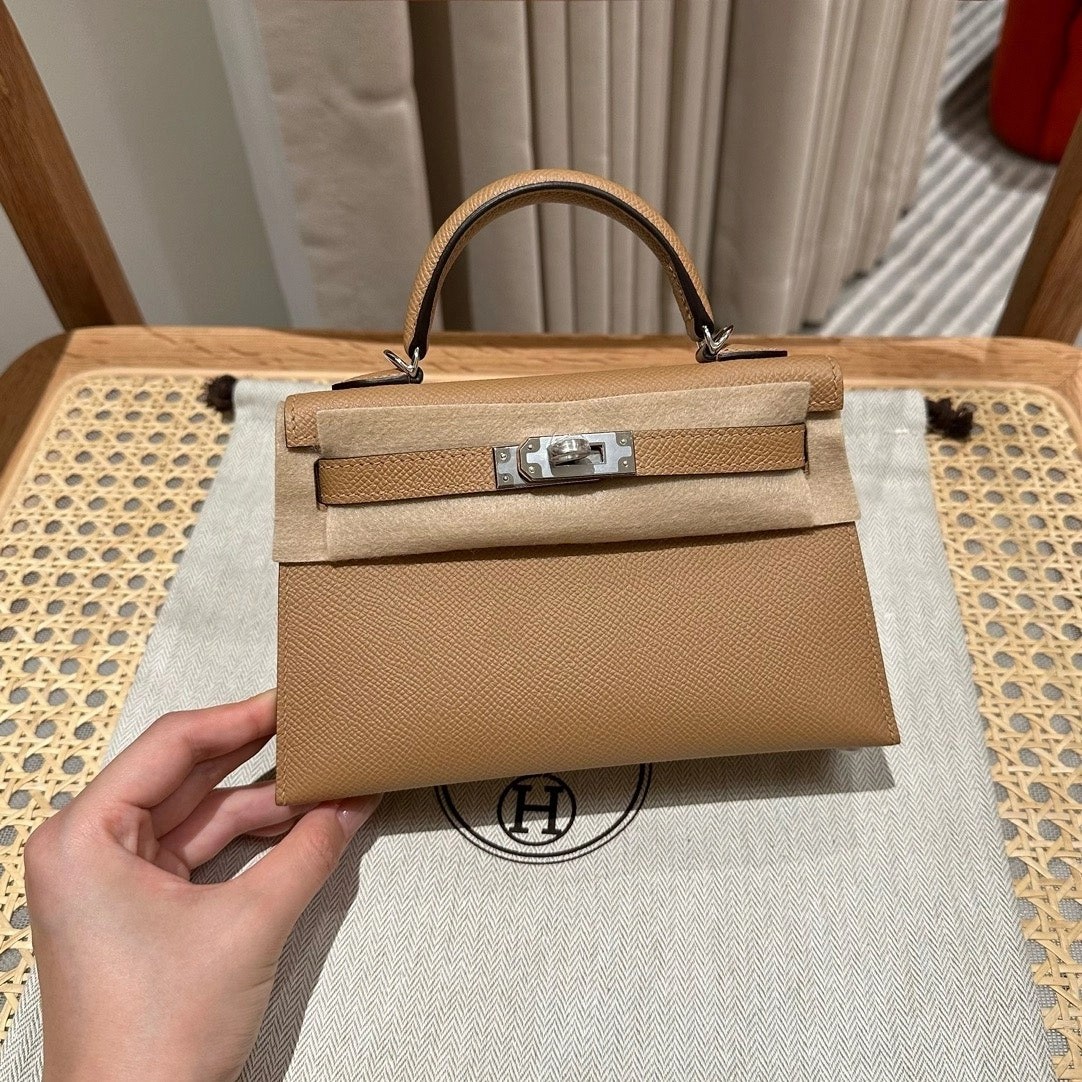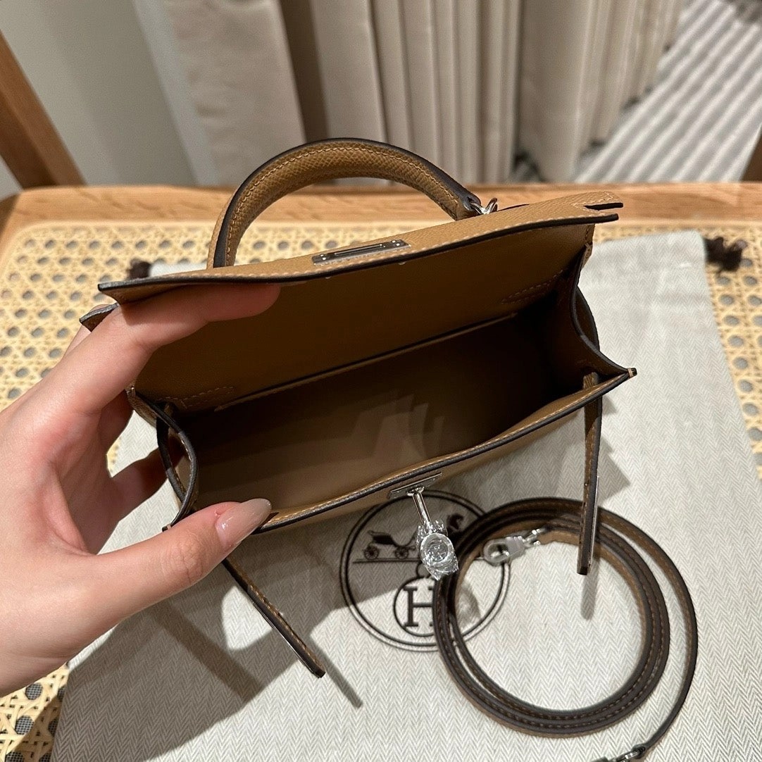 迷你凯莉二代,奶茶色,掌纹,银扣,19cm,高级全手工专属定制‼️