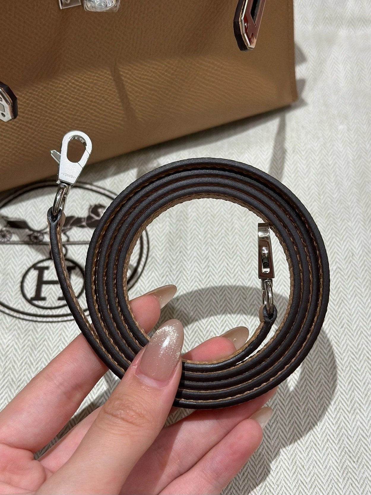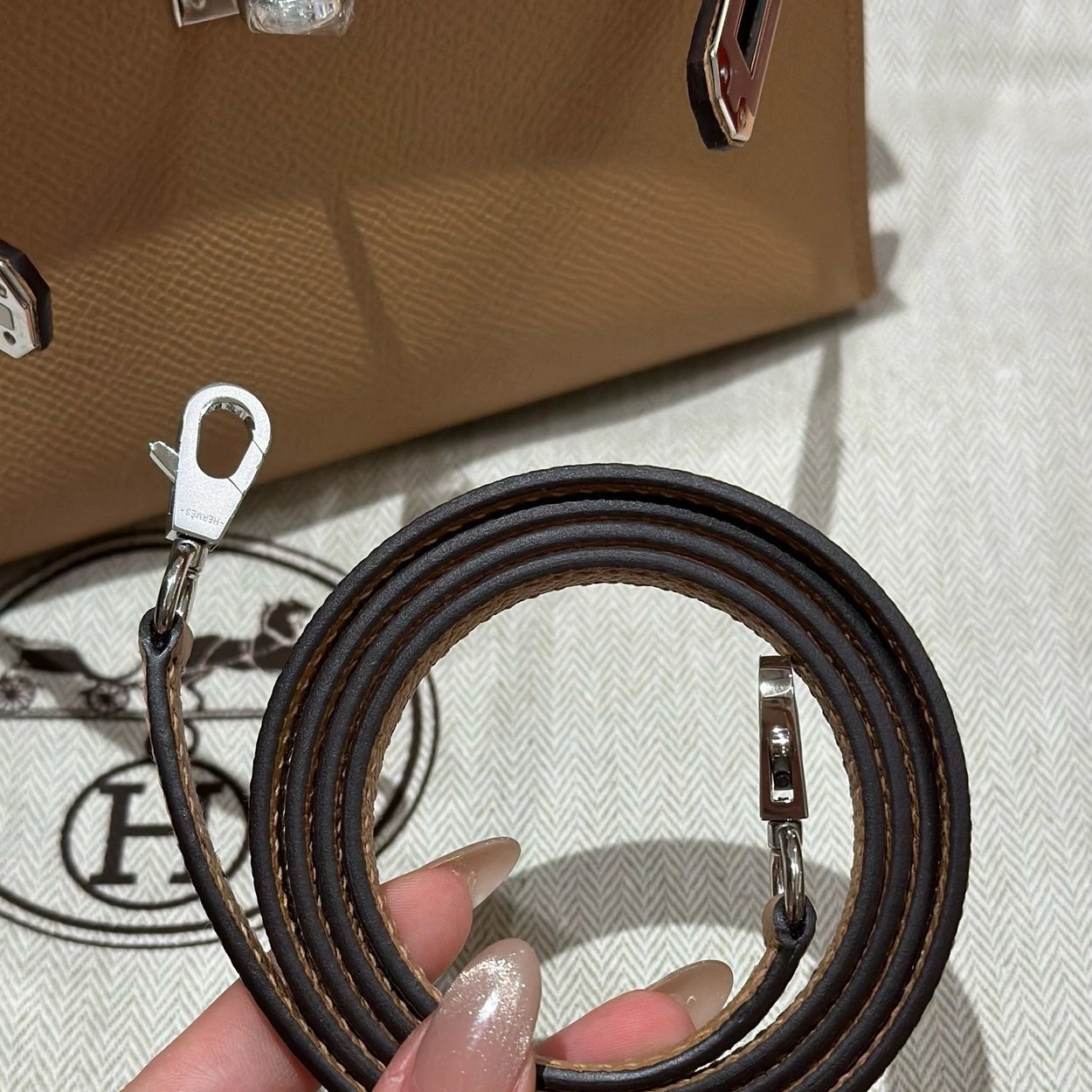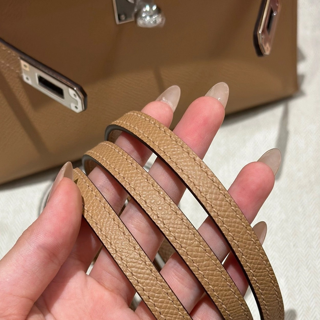 迷你凯莉二代,奶茶色,掌纹,银扣,19cm,高级全手工专属定制‼️