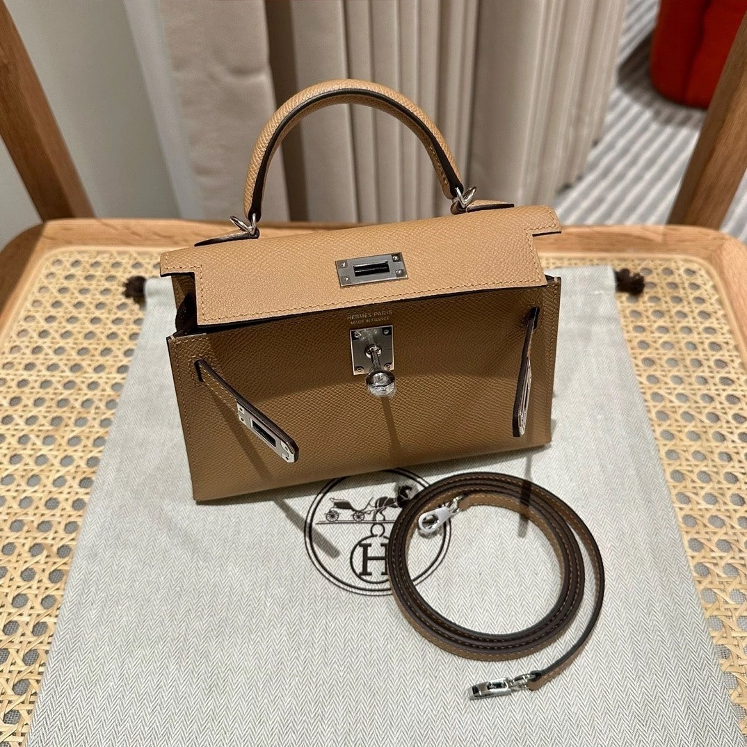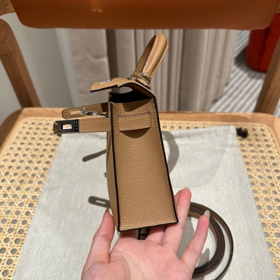 mini kelly 2 ,0M/Chai,Epsom,sliver,19cm,all handmade‼️