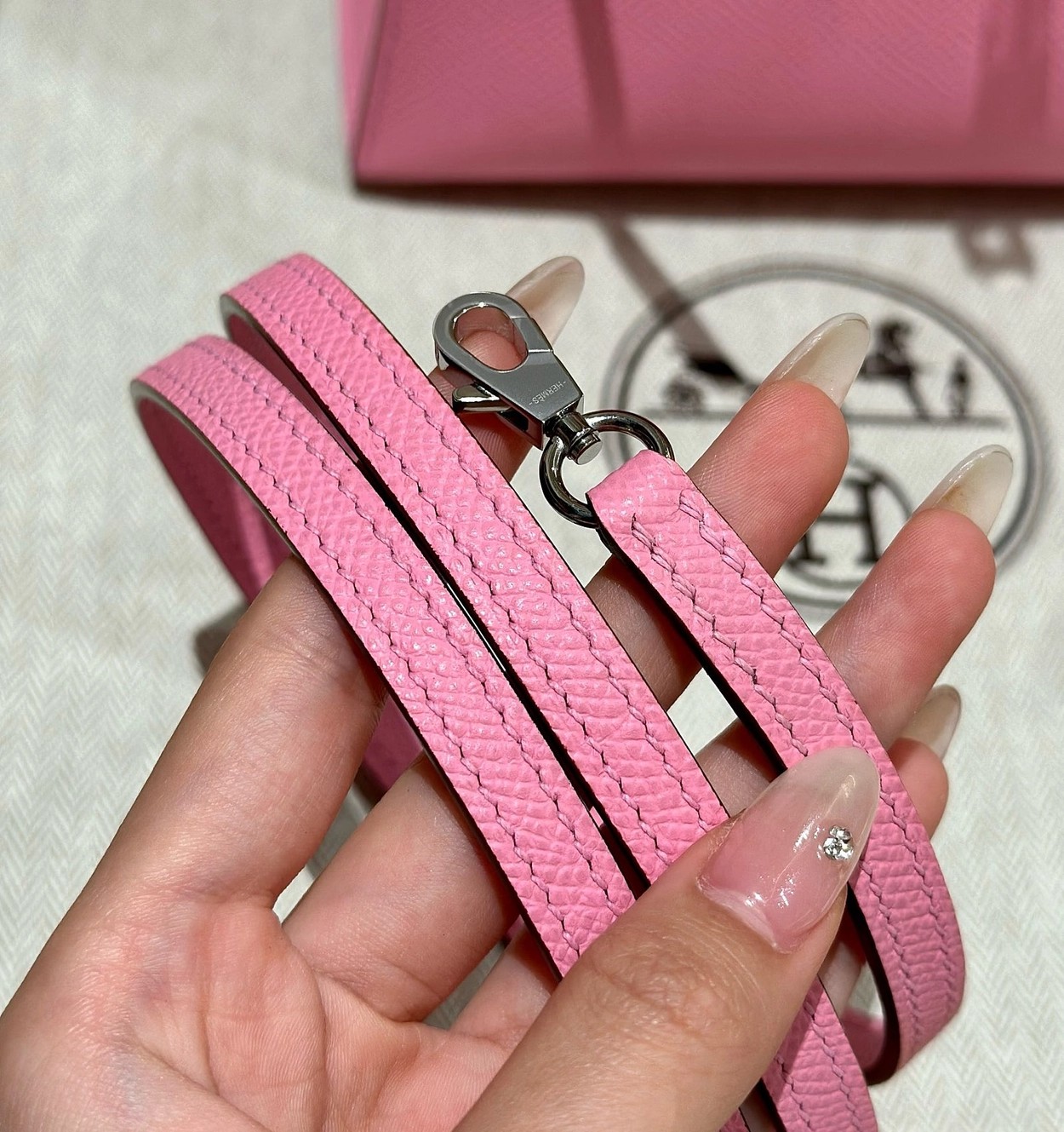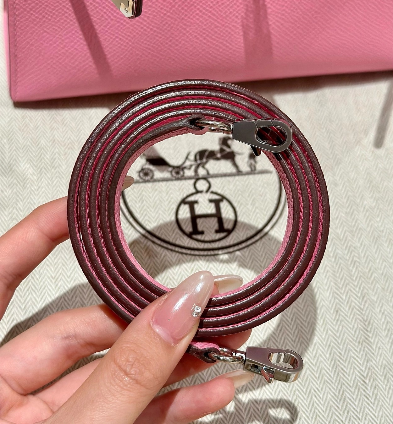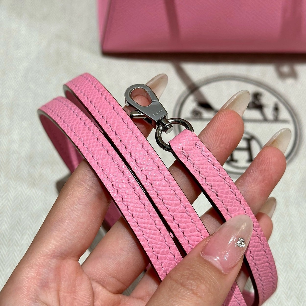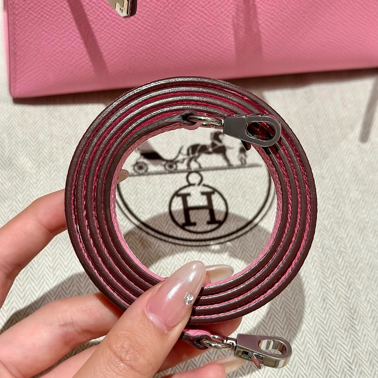 迷你凯莉二代,樱花粉,掌纹,银扣,19cm,高级全手工专属定制‼️