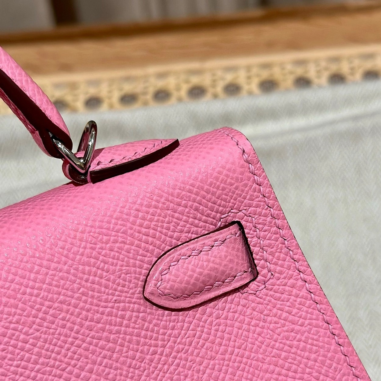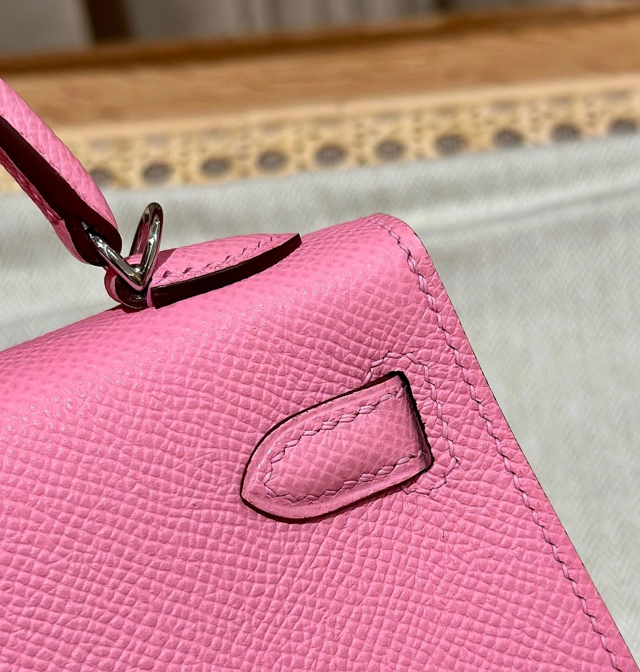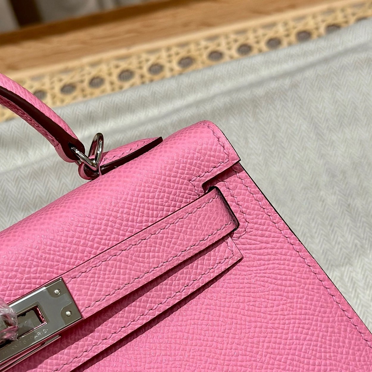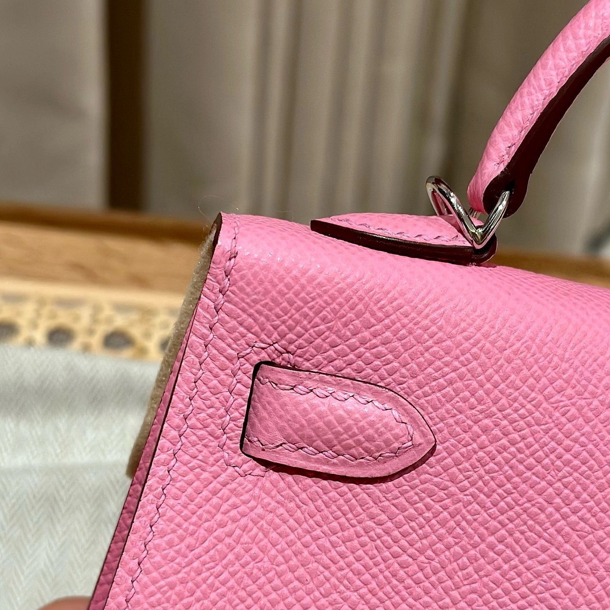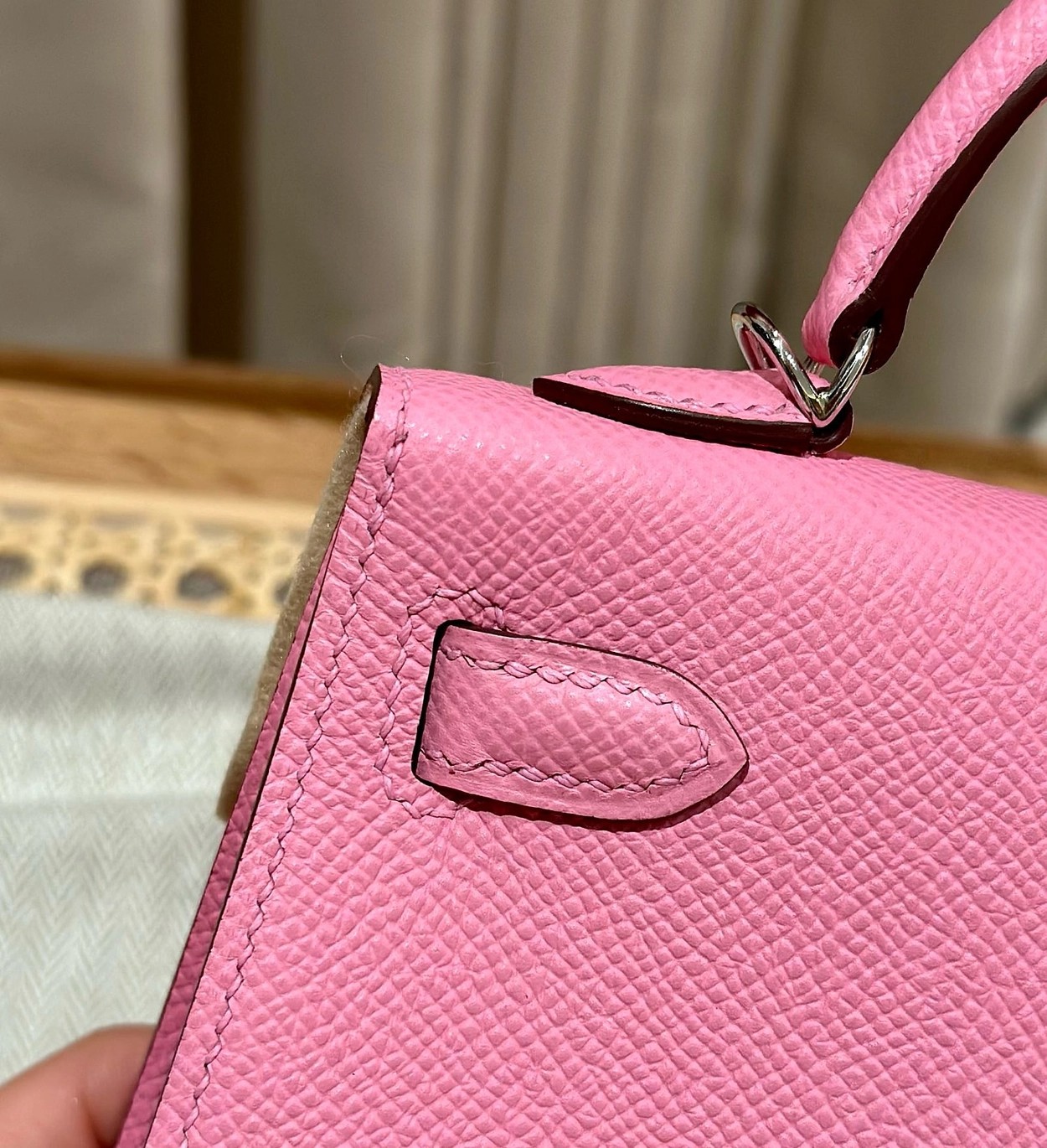 迷你凯莉二代,樱花粉,掌纹,银扣,19cm,高级全手工专属定制‼️