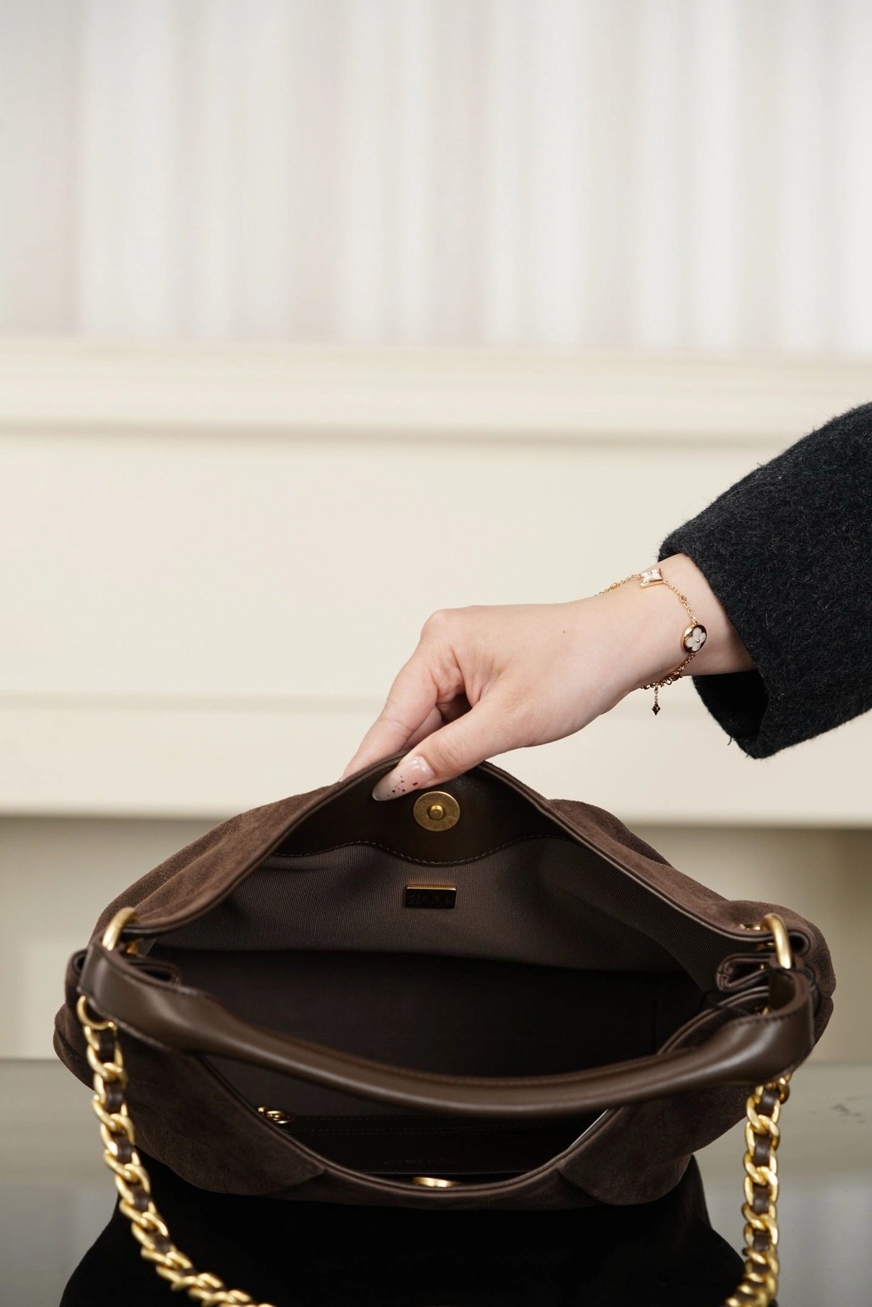 麂皮材质超适合秋冬‼️手柄➕金属链可轻松切换场合 容量也比较大 日常实用通勤还得是大包! 👜