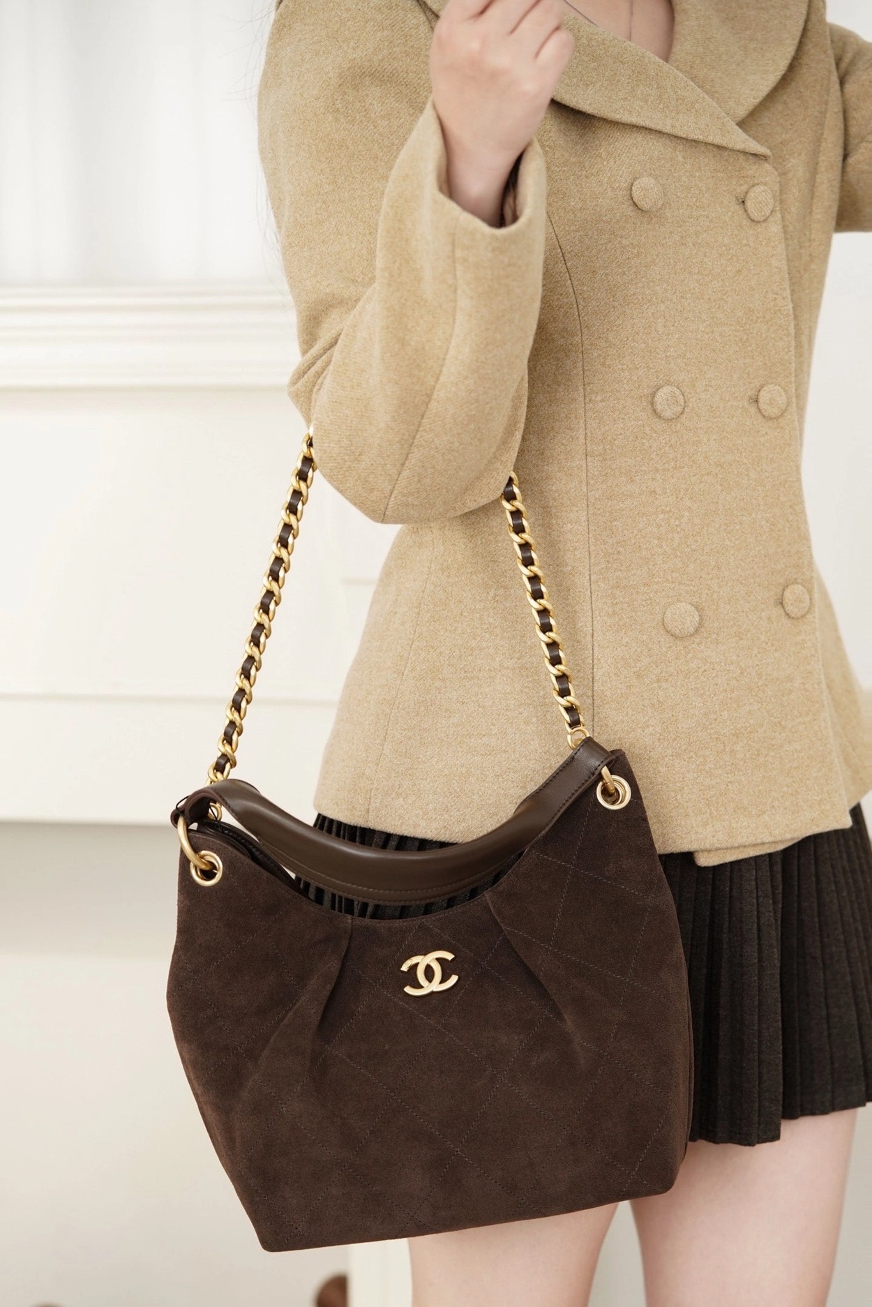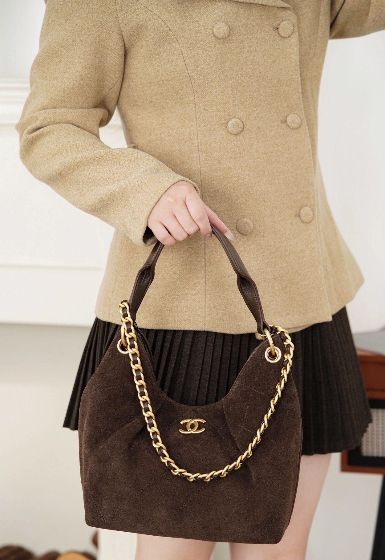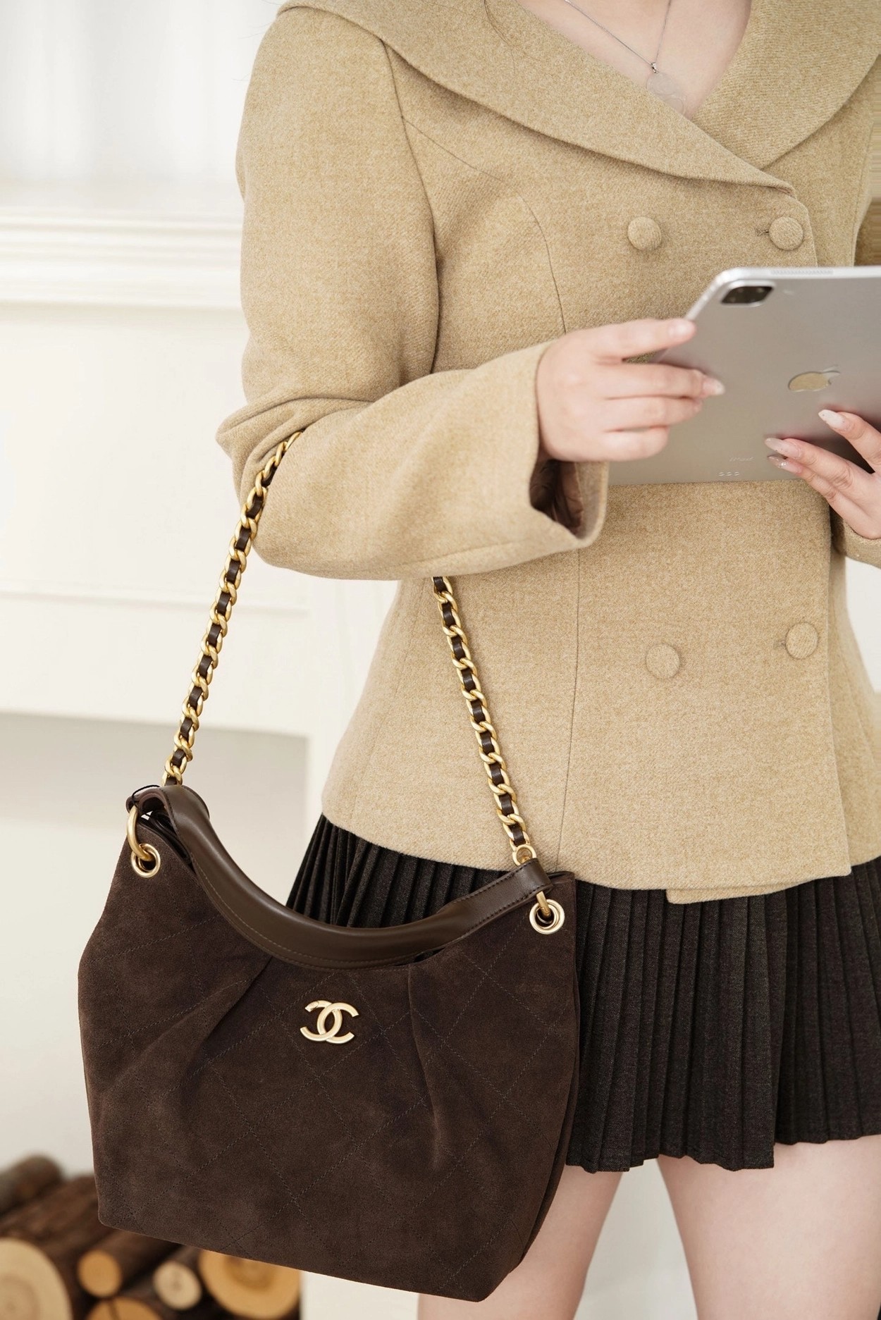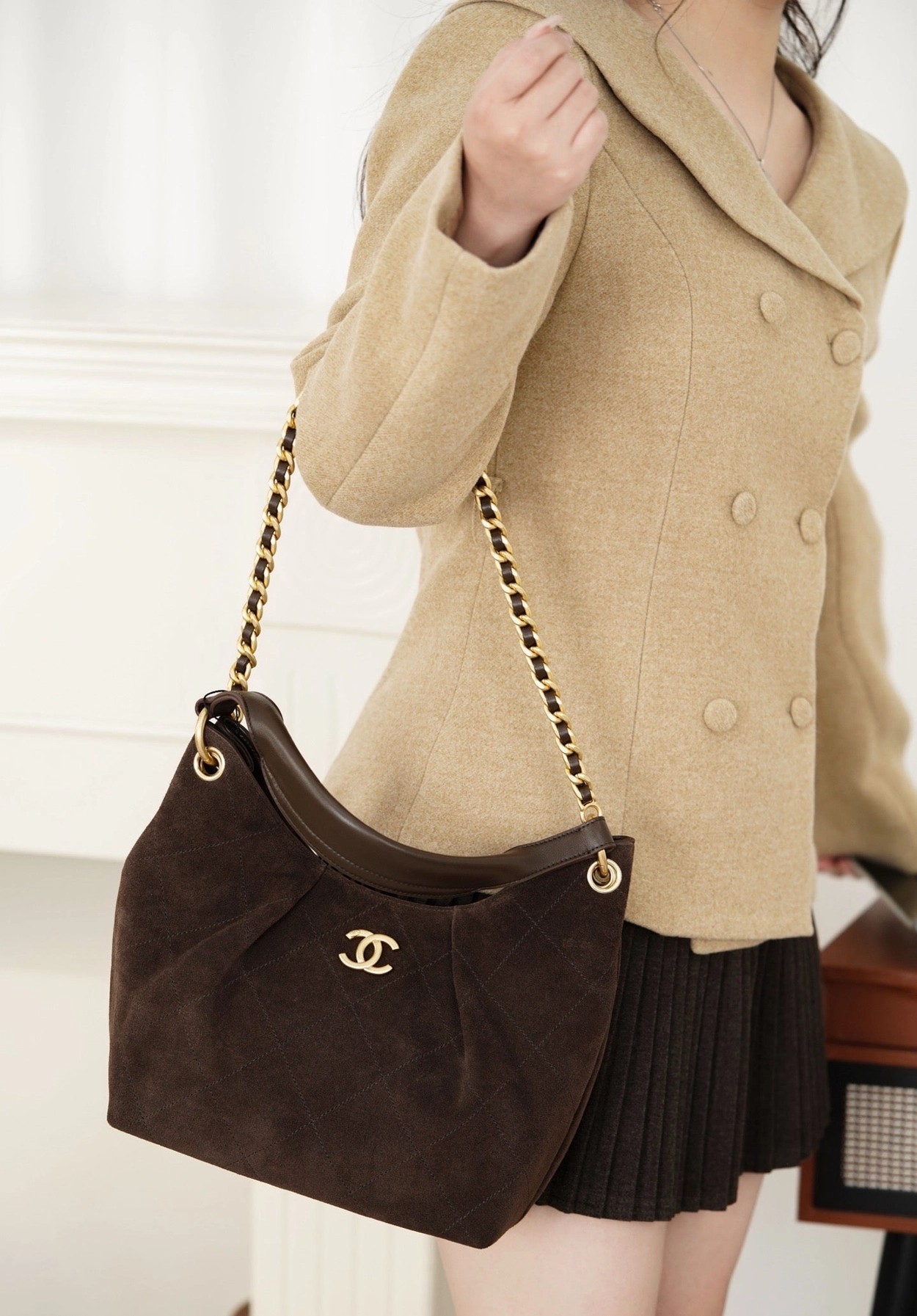 𝐂𝐡𝐚𝐧𝐞𝐥 𝟐𝟔𝐂 早春新款 嬉皮𝐡𝐨𝐛𝐨 麂皮棕 小号