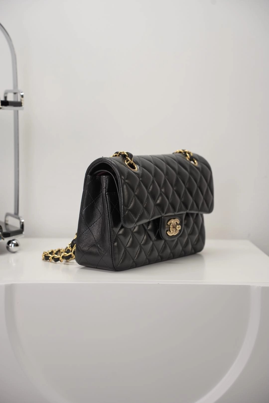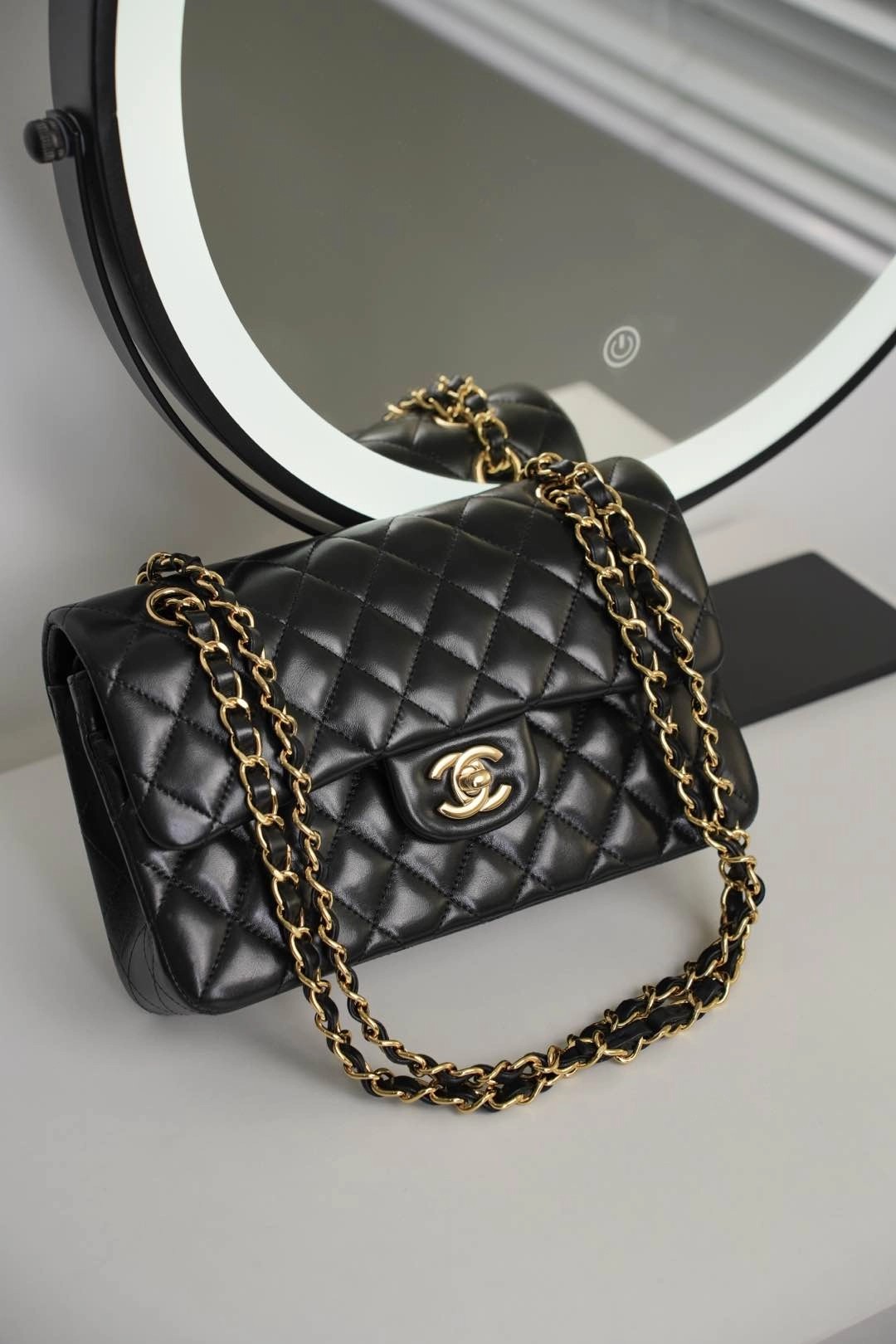 「Classic Flap」经典口盖包 黑羊金 小号🔆 意大利🇮🇹《𝗚𝗥》原产小羊皮🐑、手感细腻软乎,溢屏而出的质感,嫩得能掐出水的感觉〰️经典菱格纹设计与皮穿金属的链条搭配,简单大气,既有复古的味道同时又优雅摩登,是每个女人都想拥有的一款心仪𝒃𝒂𝒈❕ 🔍:11110591 尺寸:23cm