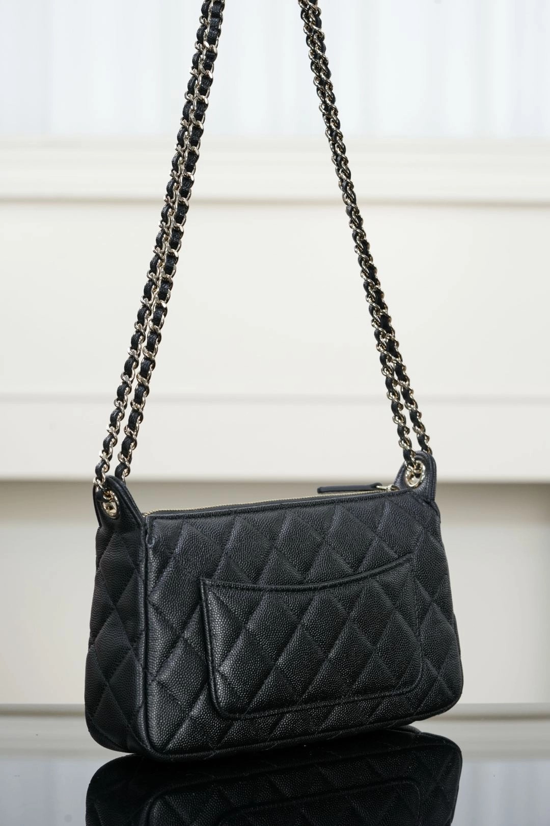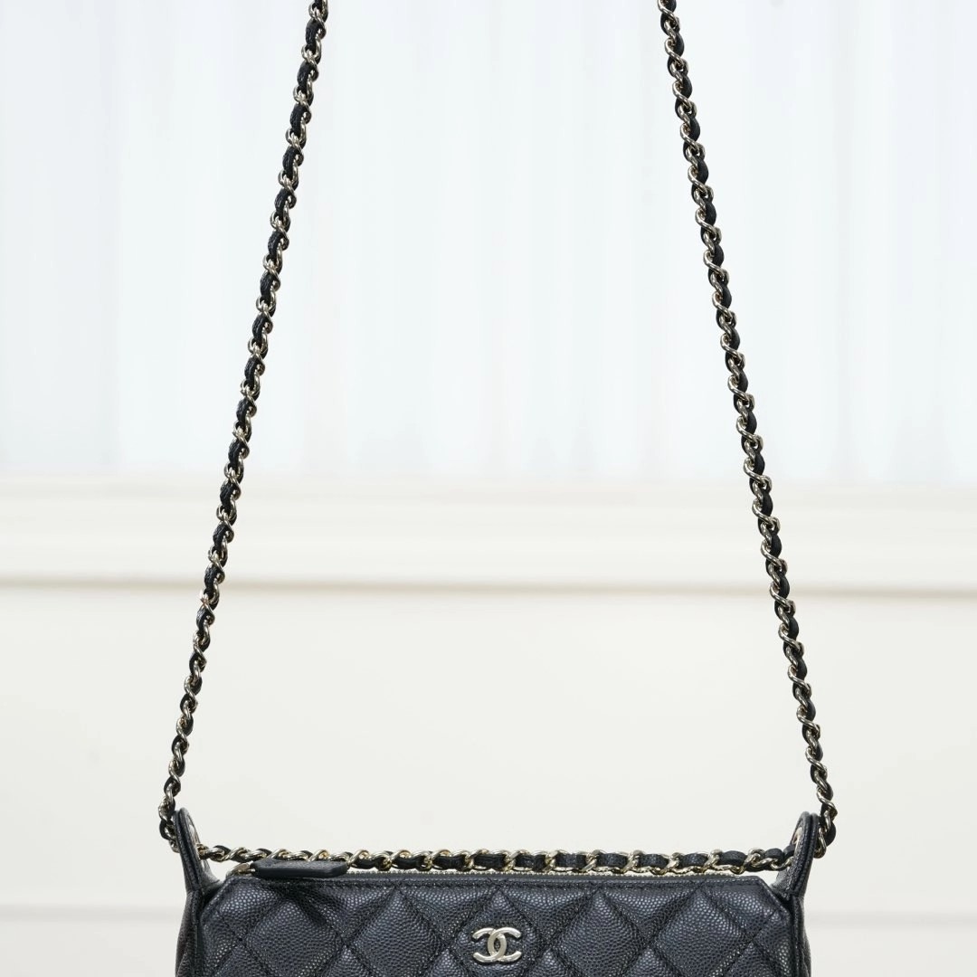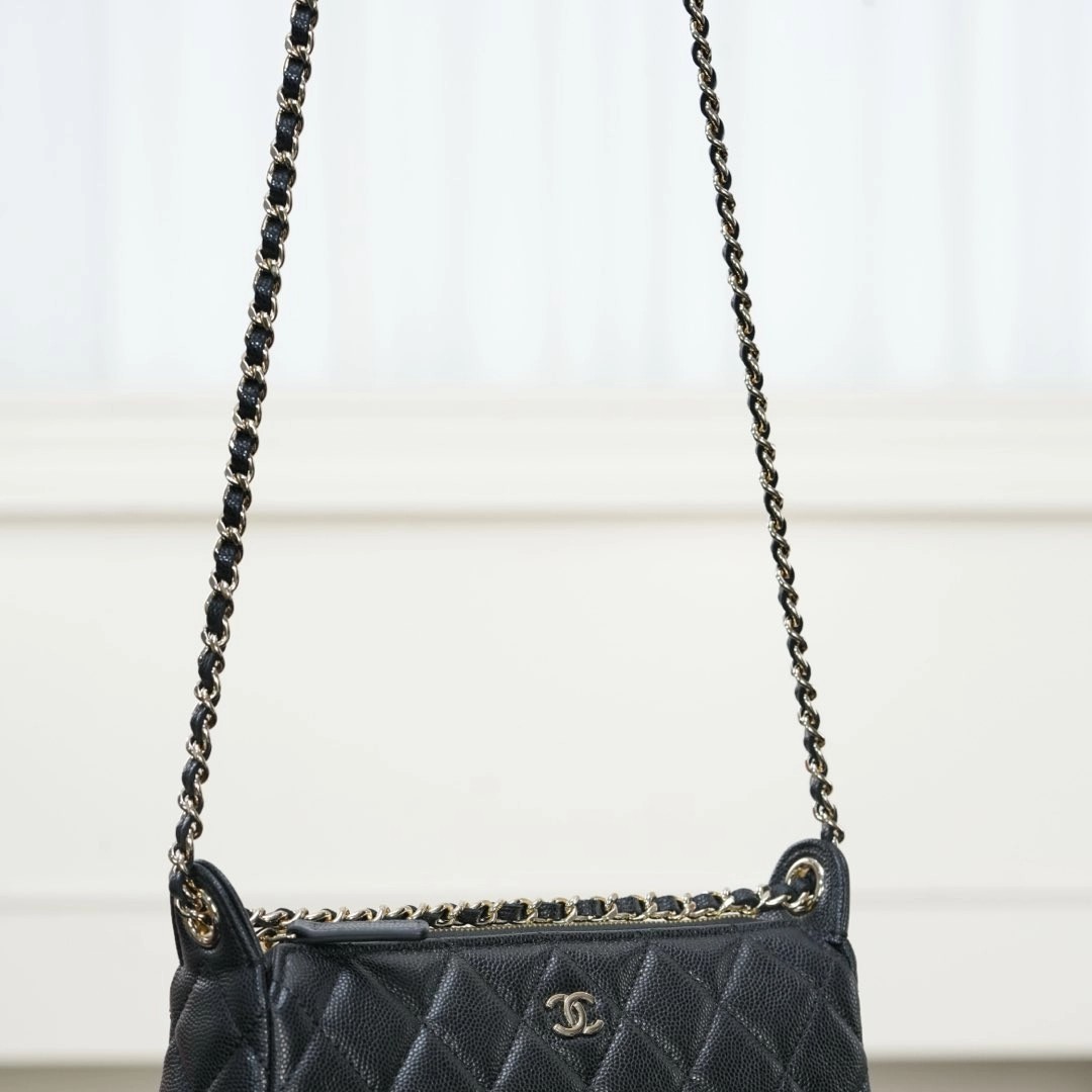 𝐂𝐡𝐚𝐧𝐞𝐥 𝟐𝟓𝐀隐藏款 麻将包 黑金 ✨ 又是一只隐藏款小皮具👏🏻性价比太高了!比𝐰𝐨𝐜能装、上身好看精致🤩 荔枝牛皮的加持、简直是今年的神仙款!耐用又美丽! 链条⛓️随意调节,单肩、斜跨、手拎、腋下均🉑!多种背法赚翻了好吗!! 自重非常轻、可以放得下𝐩𝐫𝐨𝐦𝐚𝐱手机📱 这么实用百搭的包包谁能不心动💓   尺寸:12x5.5x21cm  🔍:25330801