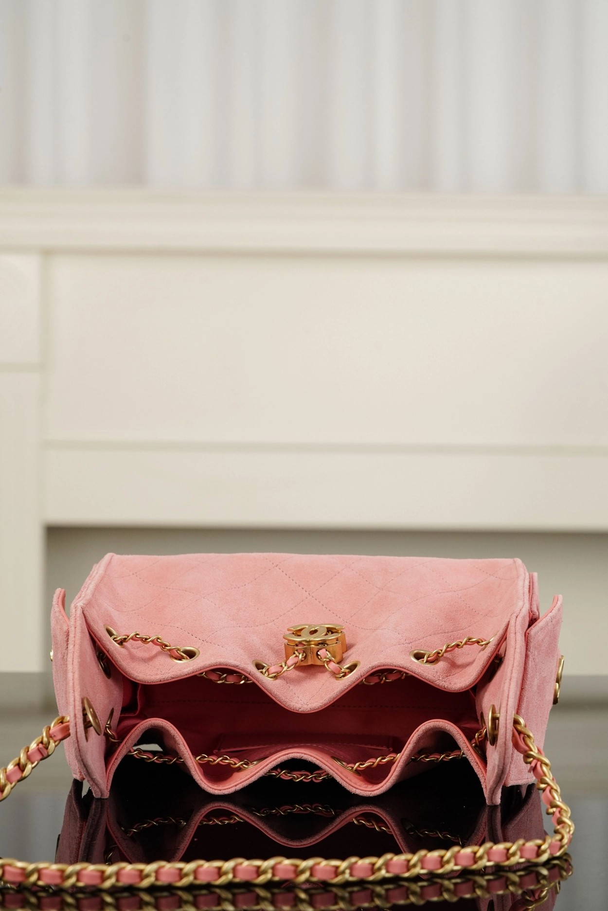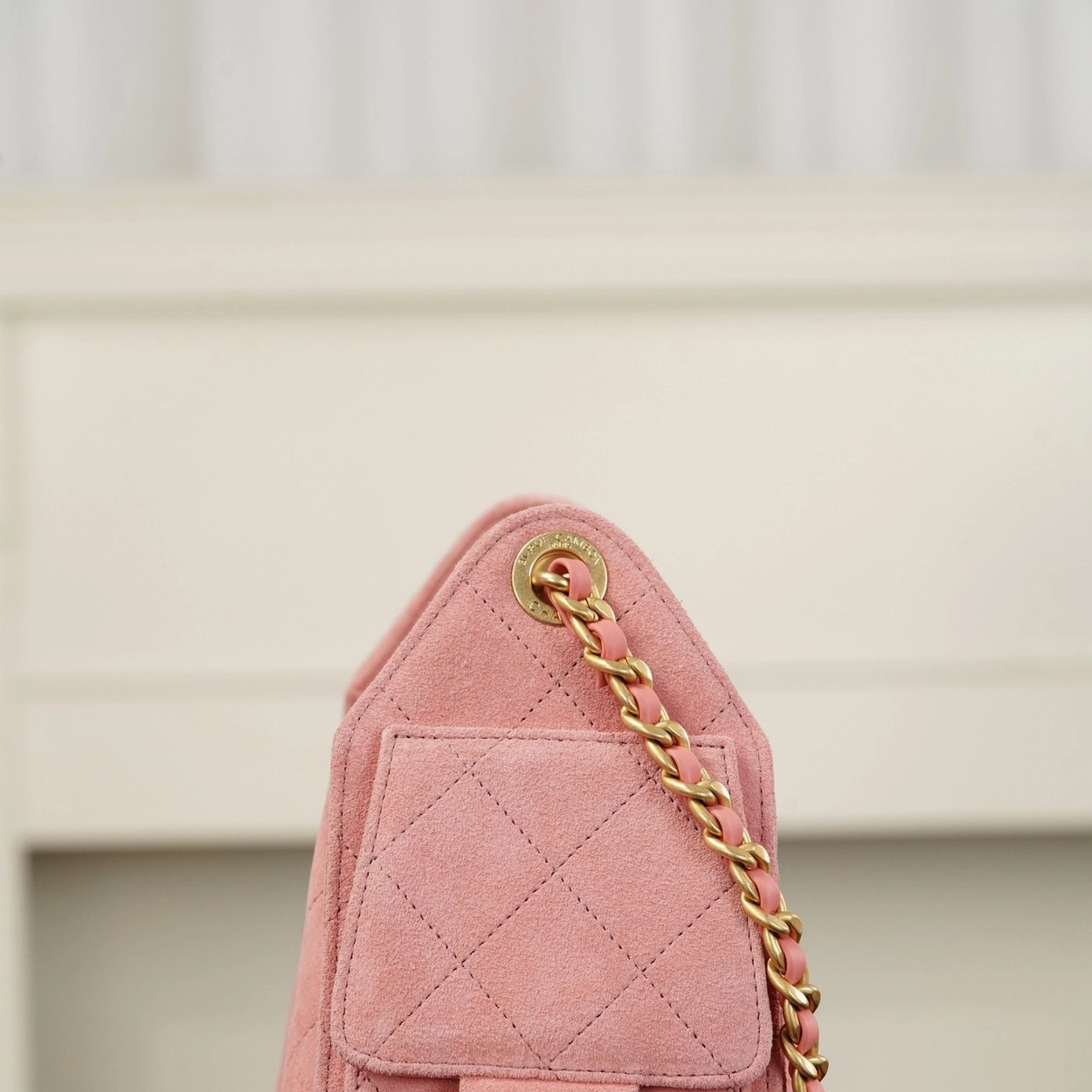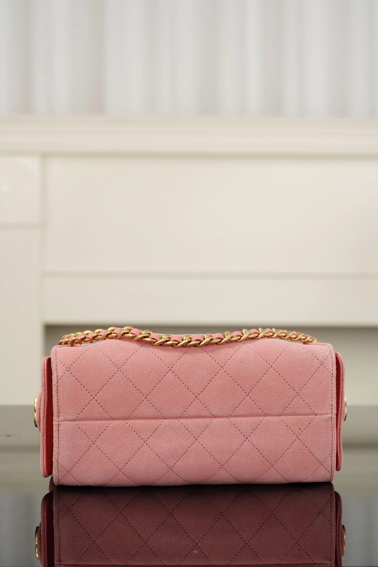 𝐂𝐡𝐚𝐧𝐞𝐥 𝟐𝟔𝐂系列 𝟐𝟓𝐛𝐚𝐠 𝐦𝐢𝐧𝐢 麂皮粉💗 当红的25bag又出mini尺寸🔥热度超高🔥 早春系列当然是离不开色彩明媚的彩色系! 粉粉糯糯的麂皮➕mini尺寸 少女感满满🤩 缩小版的尺寸让𝟐𝟓𝐛𝐚𝐠精致了很多!肩带完全不卡足够长; 开口可调节的抽绳设计很实用! 包包很轻盈背上很有春夏感~又时髦又大容量 太优秀啦! 尺寸:𝟐𝟎𝐱𝟐𝟐𝐱𝟏𝟐.𝟓𝐜𝐦     🔍:25730851