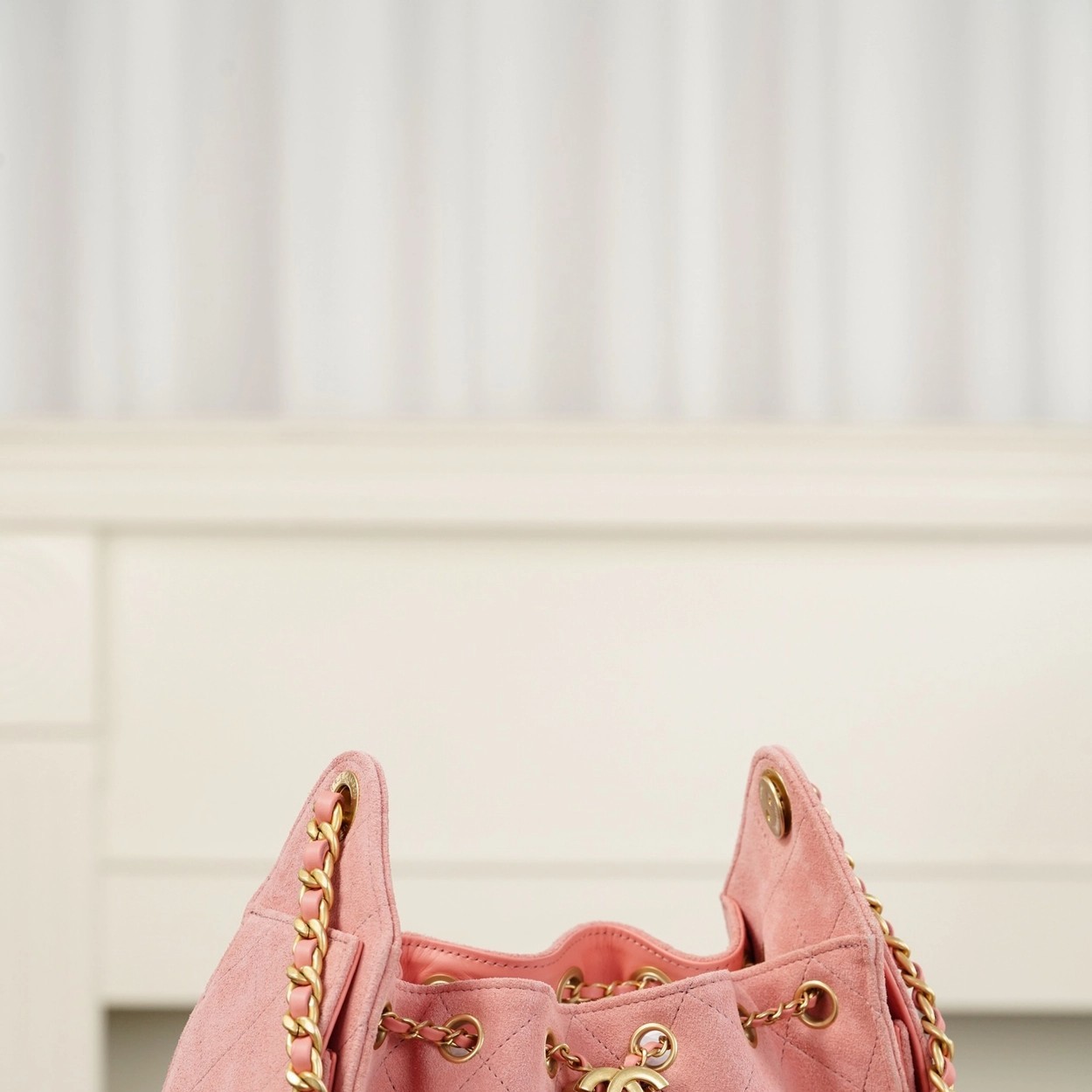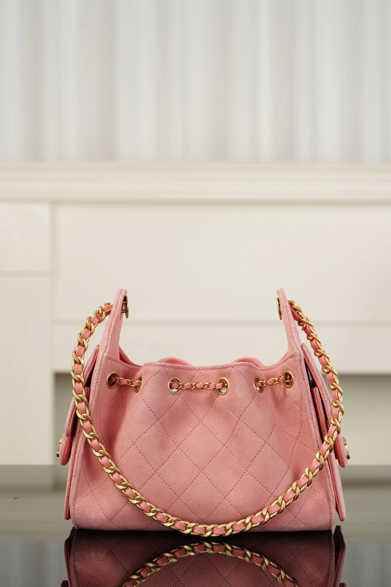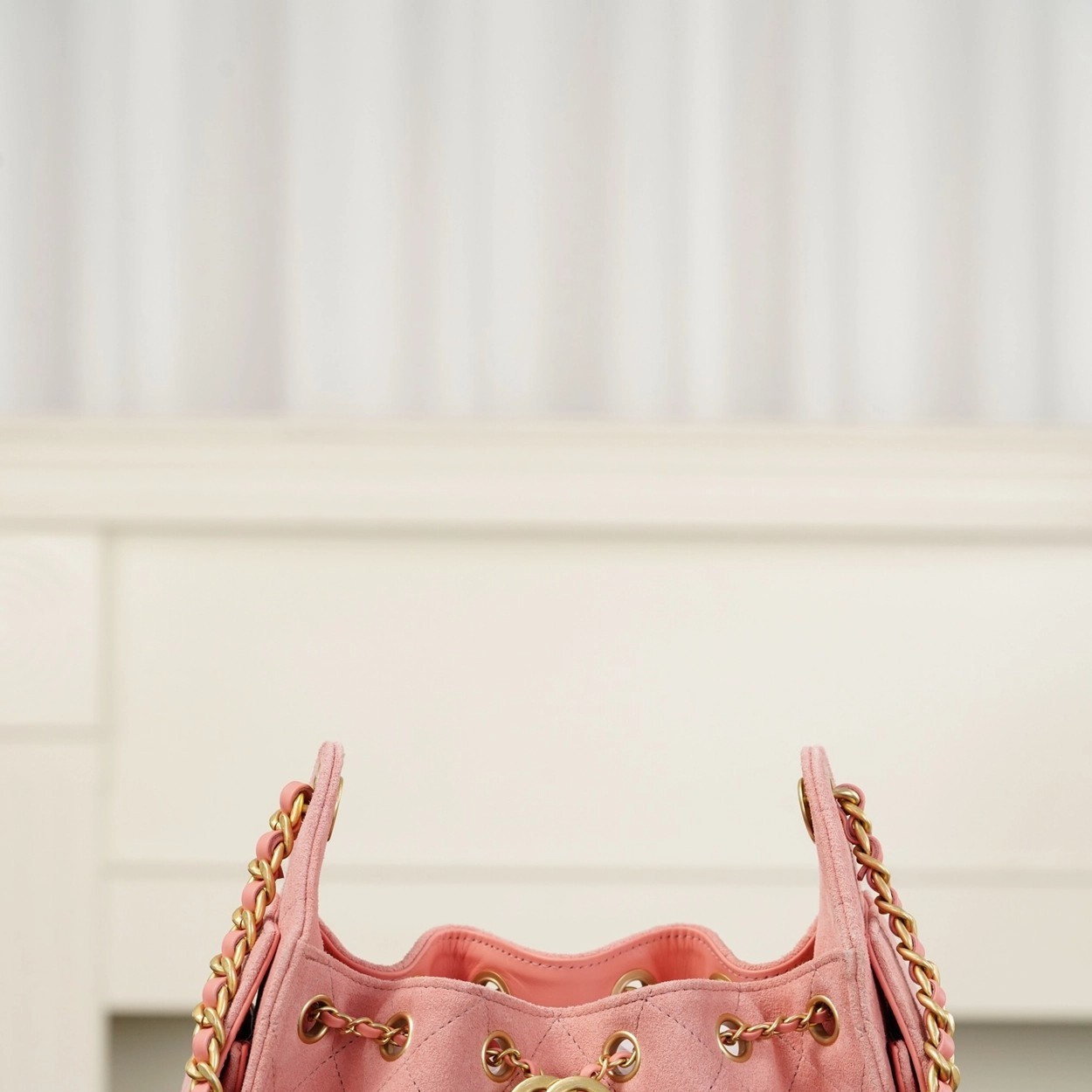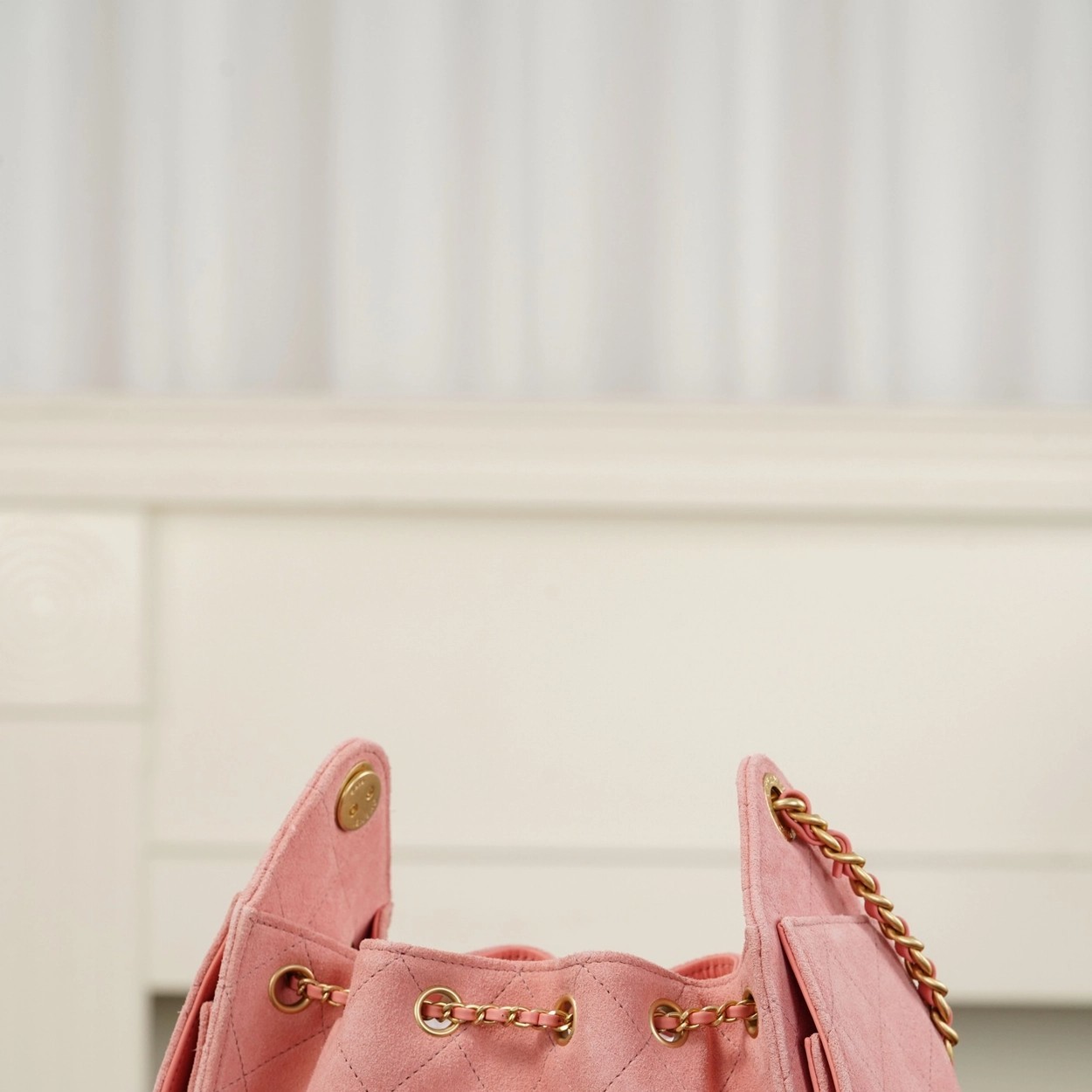 𝐂𝐡𝐚𝐧𝐞𝐥 𝟐𝟔𝐂系列 𝟐𝟓𝐛𝐚𝐠 𝐦𝐢𝐧𝐢 麂皮粉💗 当红的25bag又出mini尺寸🔥热度超高🔥 早春系列当然是离不开色彩明媚的彩色系! 粉粉糯糯的麂皮➕mini尺寸 少女感满满🤩 缩小版的尺寸让𝟐𝟓𝐛𝐚𝐠精致了很多!肩带完全不卡足够长; 开口可调节的抽绳设计很实用! 包包很轻盈背上很有春夏感~又时髦又大容量 太优秀啦! 尺寸:𝟐𝟎𝐱𝟐𝟐𝐱𝟏𝟐.𝟓𝐜𝐦     🔍:25730851