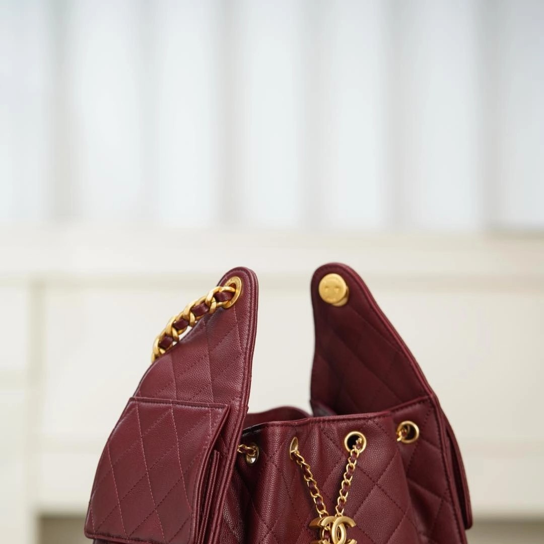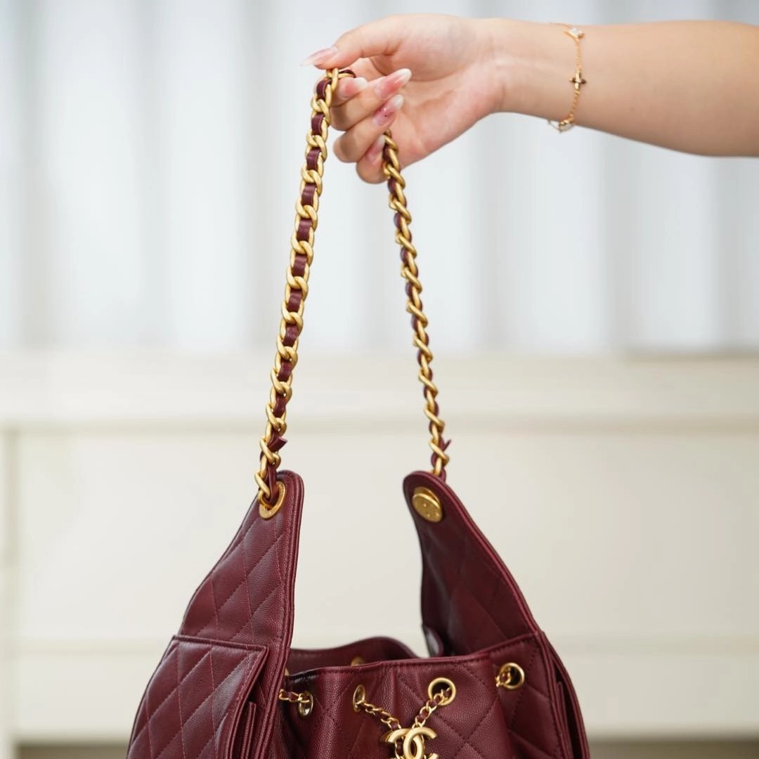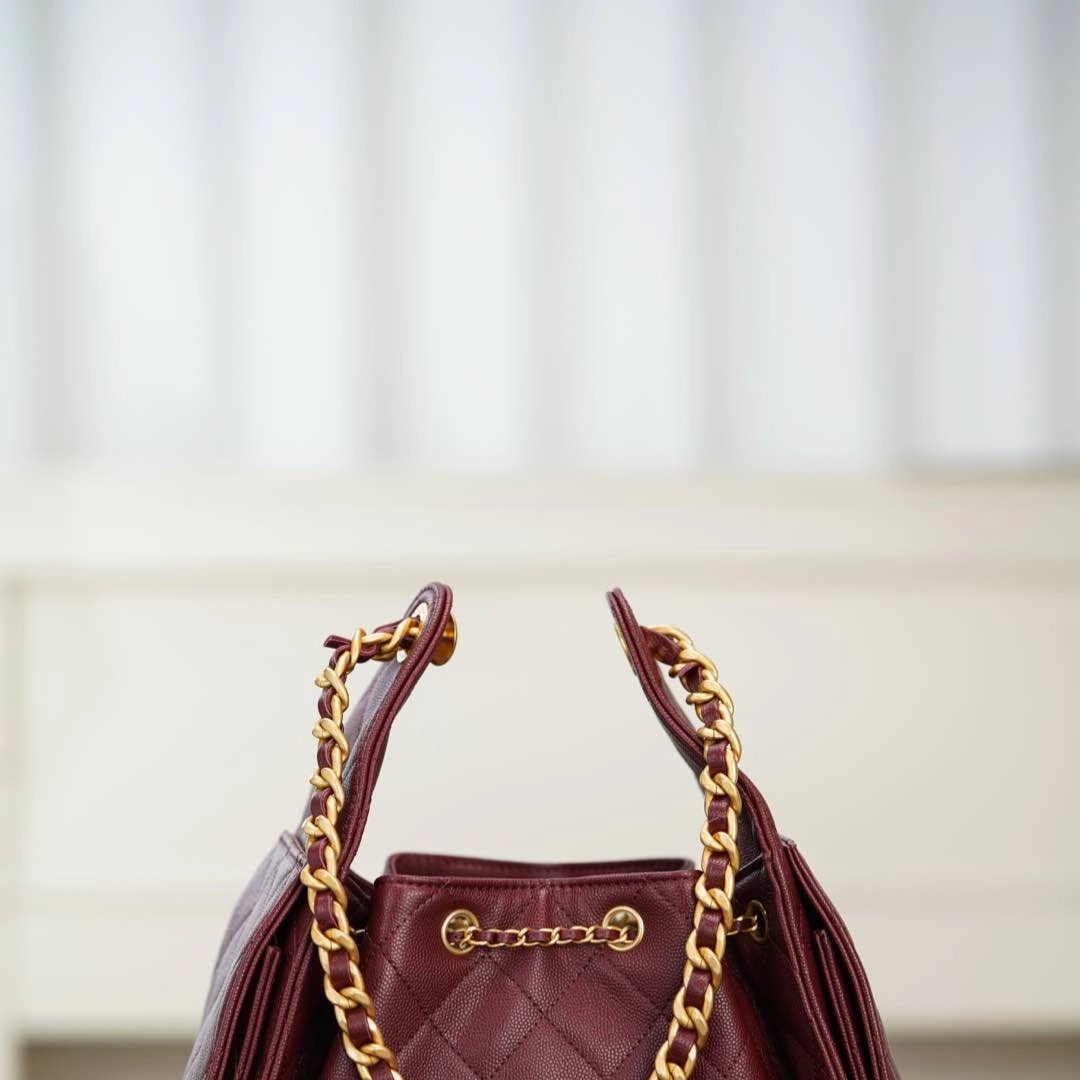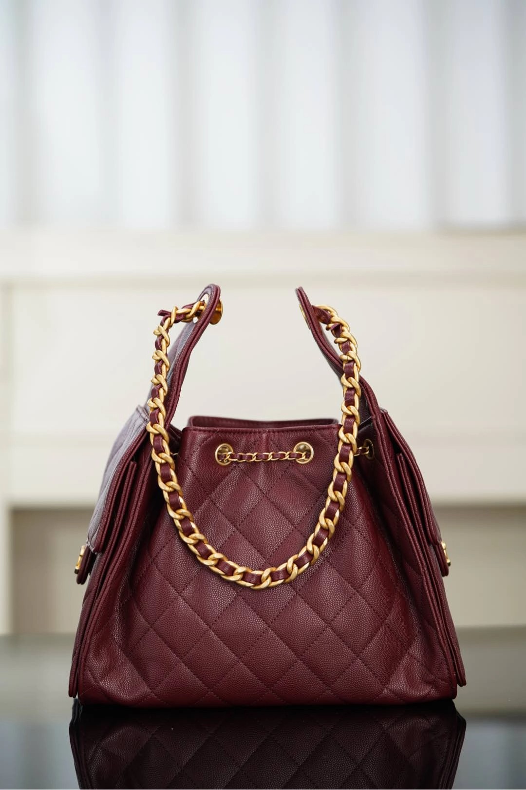 𝐂𝐡𝐚𝐧𝐞𝐥 𝟐𝟓A 𝐬𝐦𝐚𝐥𝐥 𝐡𝐨𝐛𝐨 抽绳水桶包 酒红色 小号✔️ 本季爆款一眼心动的𝐇𝐨𝐛𝐨✨ 以25bag命名、正如22bag火了好多年🔥!这款预估将会是乙巳年爆款🤩! 秀场推出后异常的火热!酒红色➕金属贵气值拉满了💯 鱼子酱的质感颗粒感没那么重反而很细腻✔️ 开口可调节的抽绳设计很实用〰️ 直接变身水桶包 尺寸大小适中✌🏻酷girl必备单品 爱惨了!!小个子也能轻松驾驭✨  尺寸:30x26x14cm 🔍: 24650871