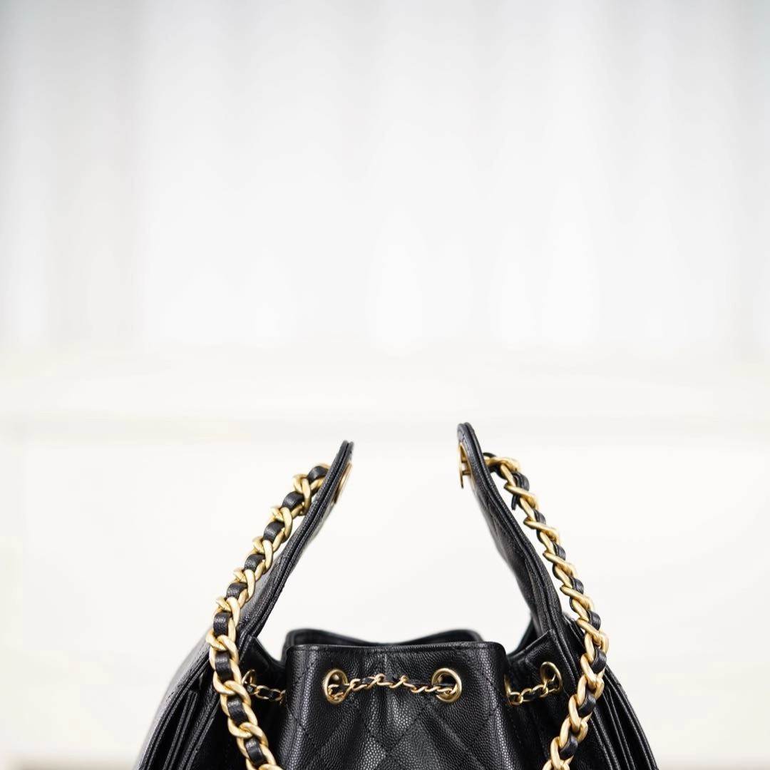 𝐂𝐡𝐚𝐧𝐞𝐥 𝟐𝟓𝐬 𝐬𝐦𝐚𝐥𝐥 𝐡𝐨𝐛𝐨 抽绳水桶包 黑金鱼子酱 小号✔️ 最新升级版出货🔥🔥🔥本季爆款一眼心动的𝐇𝐨𝐛𝐨✨  这颜值简直逆天!秀场推出后异常的火热💣 独家意大利🇮🇹三只羊原厂皮🐂!  多口袋的设计简直将随性慵懒感拉满👏🏻开口可调节的抽绳设计很实用〰️ 直接变身水桶包 尺寸大小适中✌🏻酷girl必备单品 爱惨了!!小个子也能轻松驾驭✨  尺寸:30x26x14cm  🔍:24650871