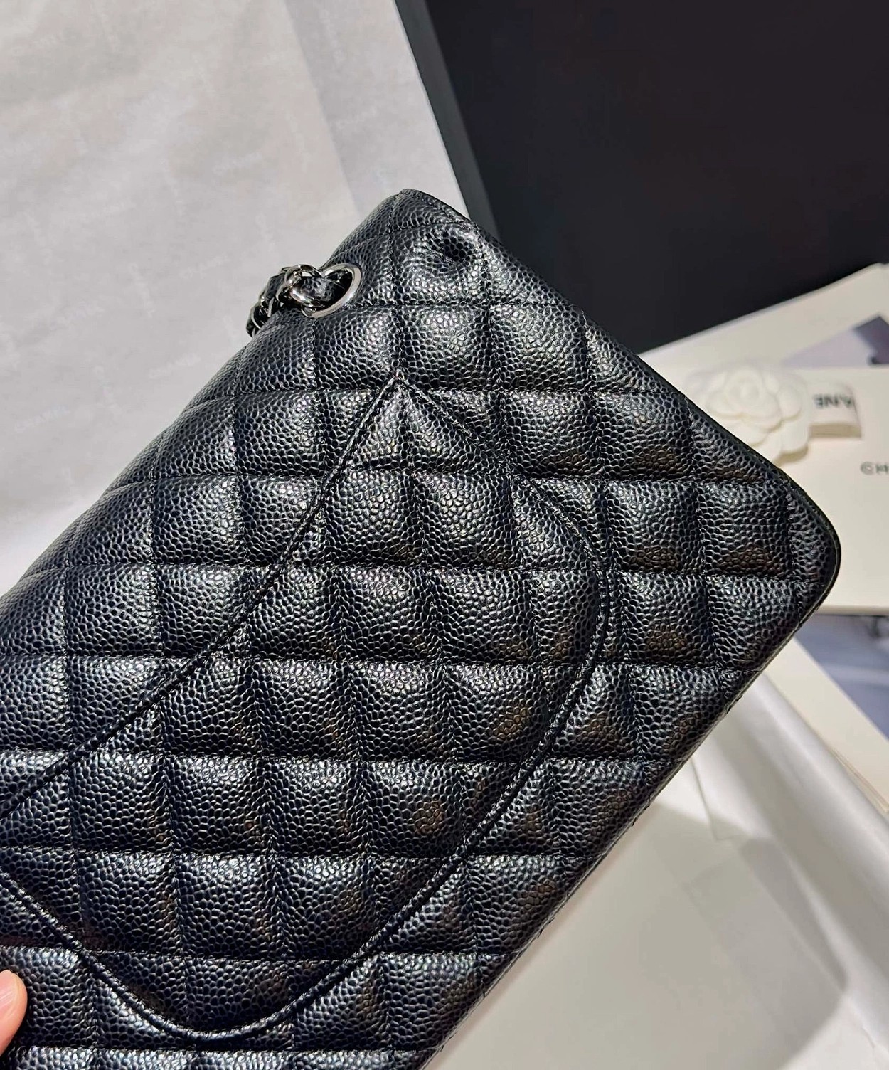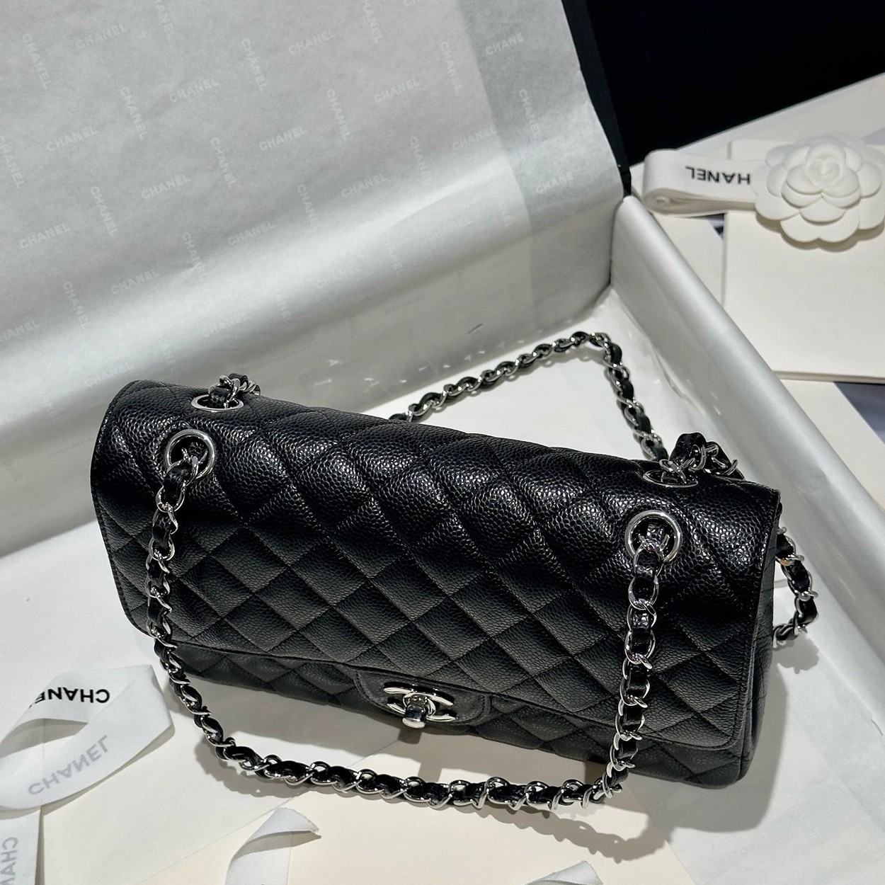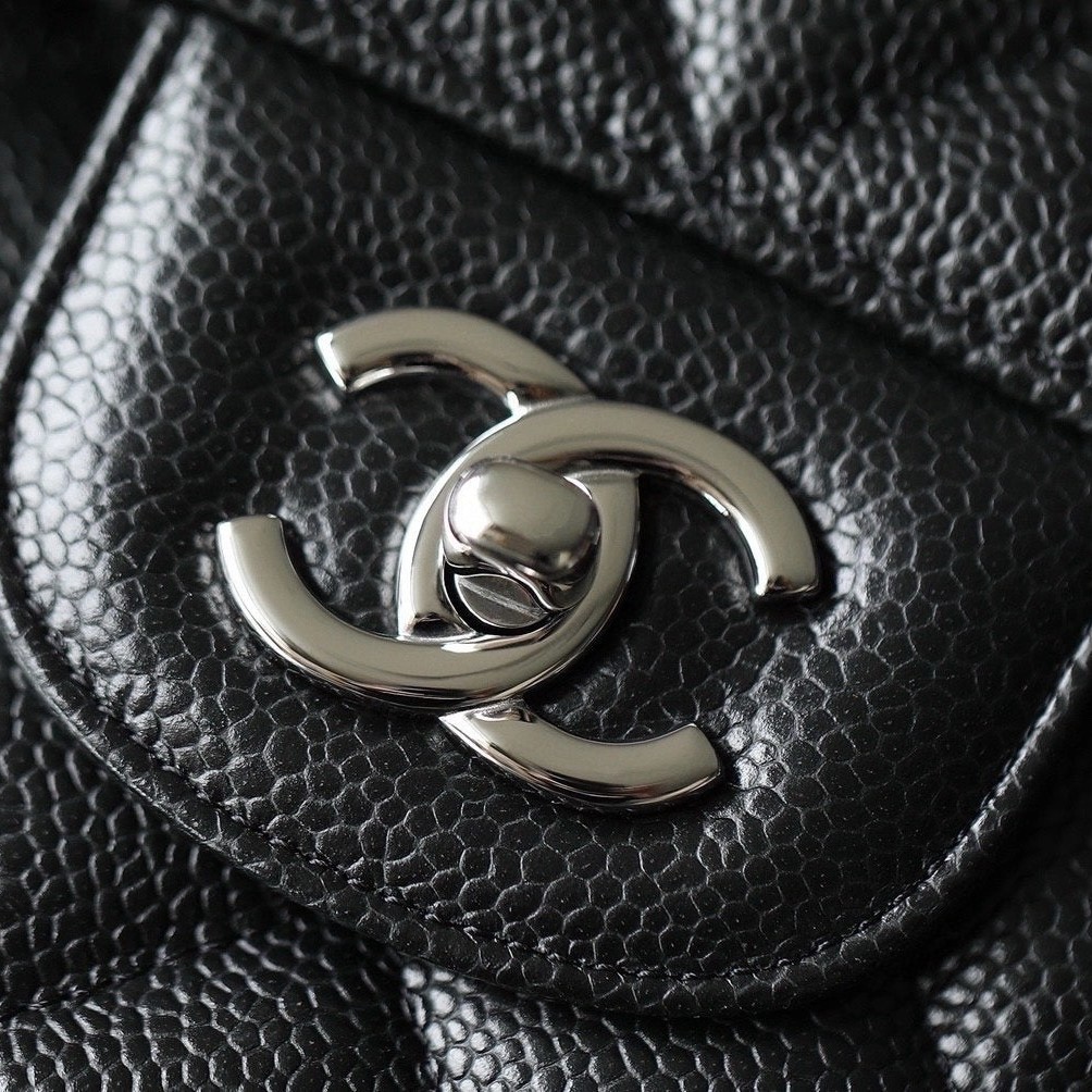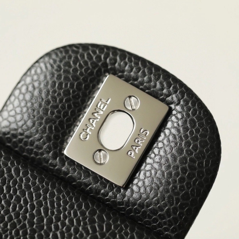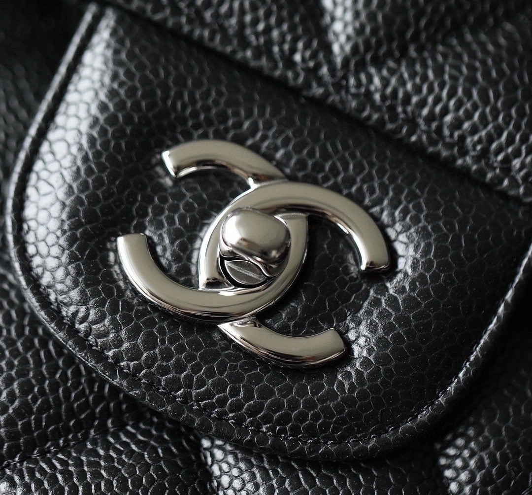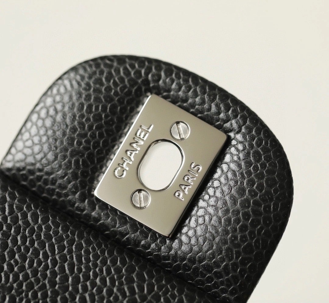 샤넬 클래식 플랩백 캐비어 정품가죽 아웃스티치 미듐 25