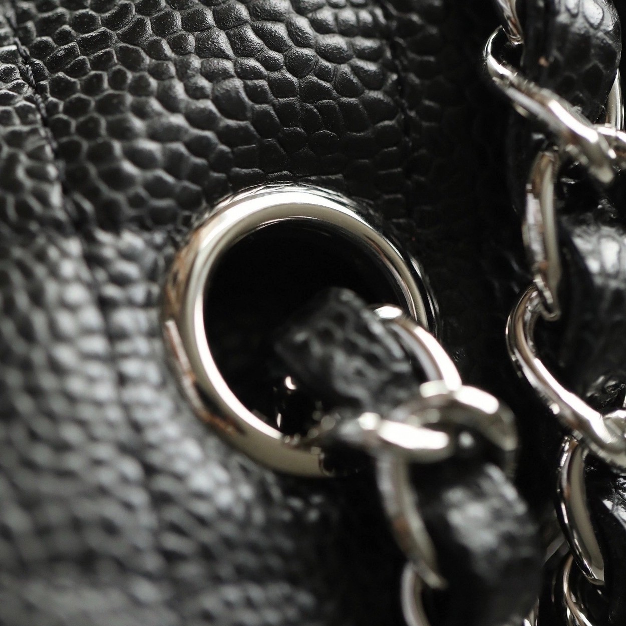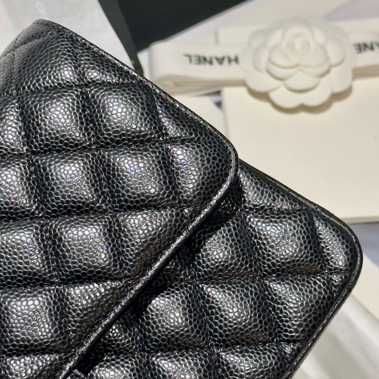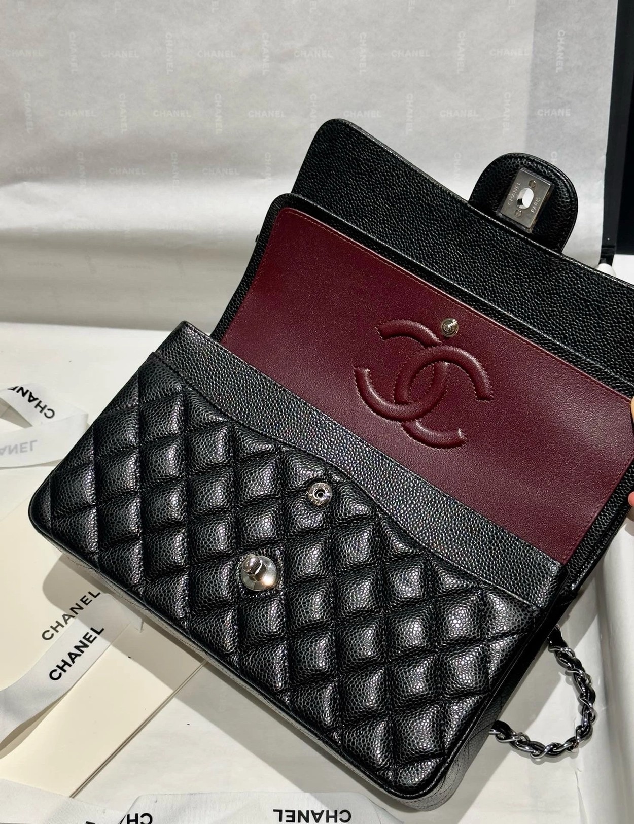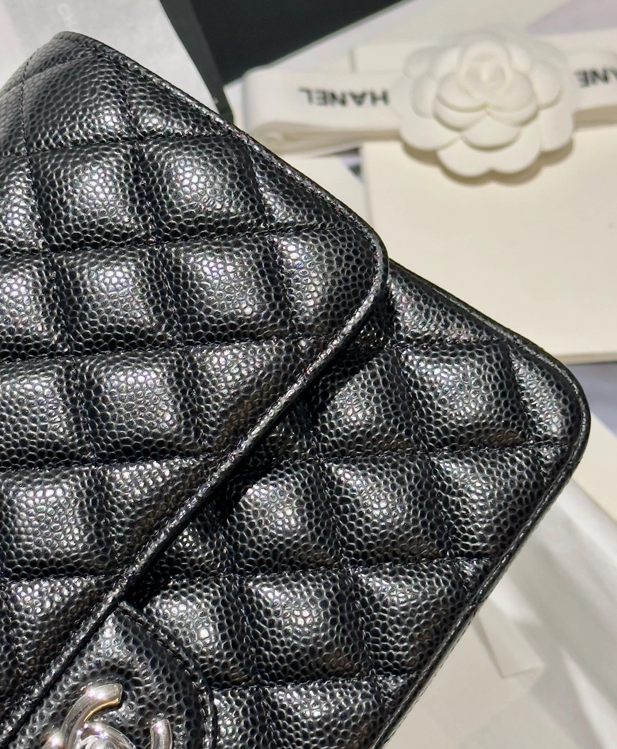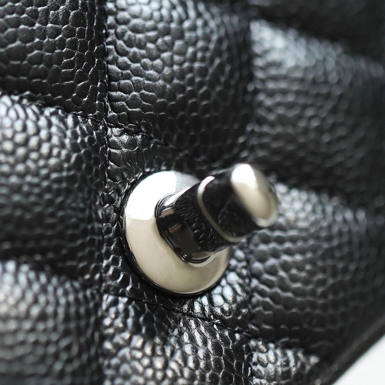 샤넬 클래식 플랩백 캐비어 정품가죽 아웃스티치 미듐 25