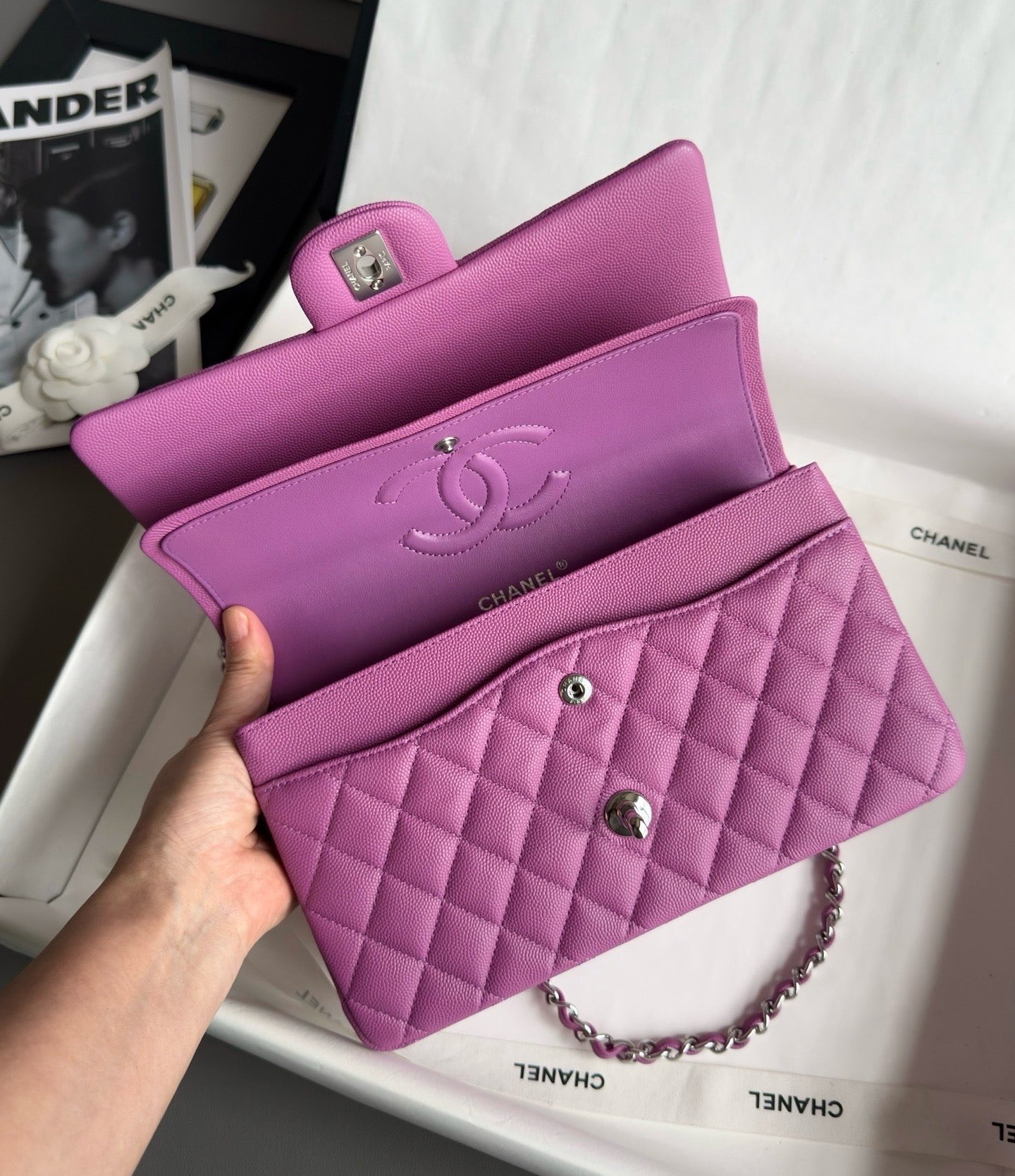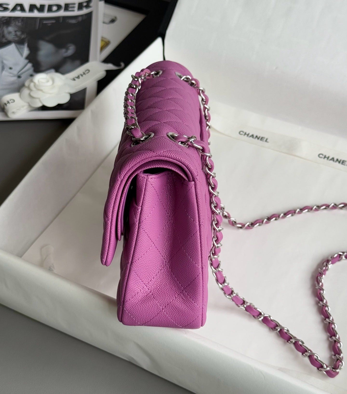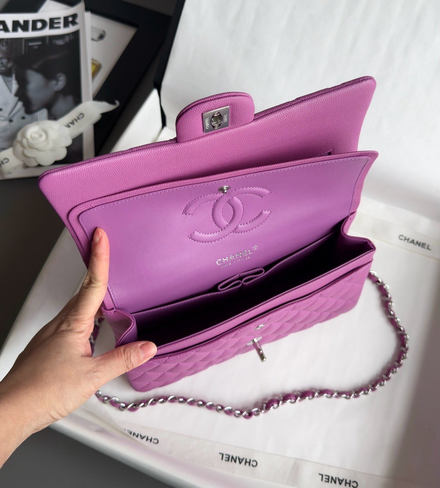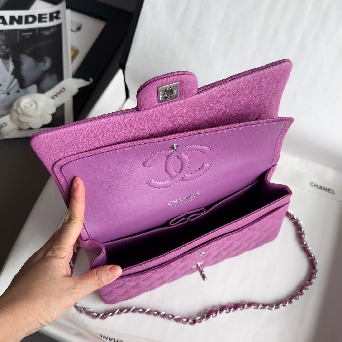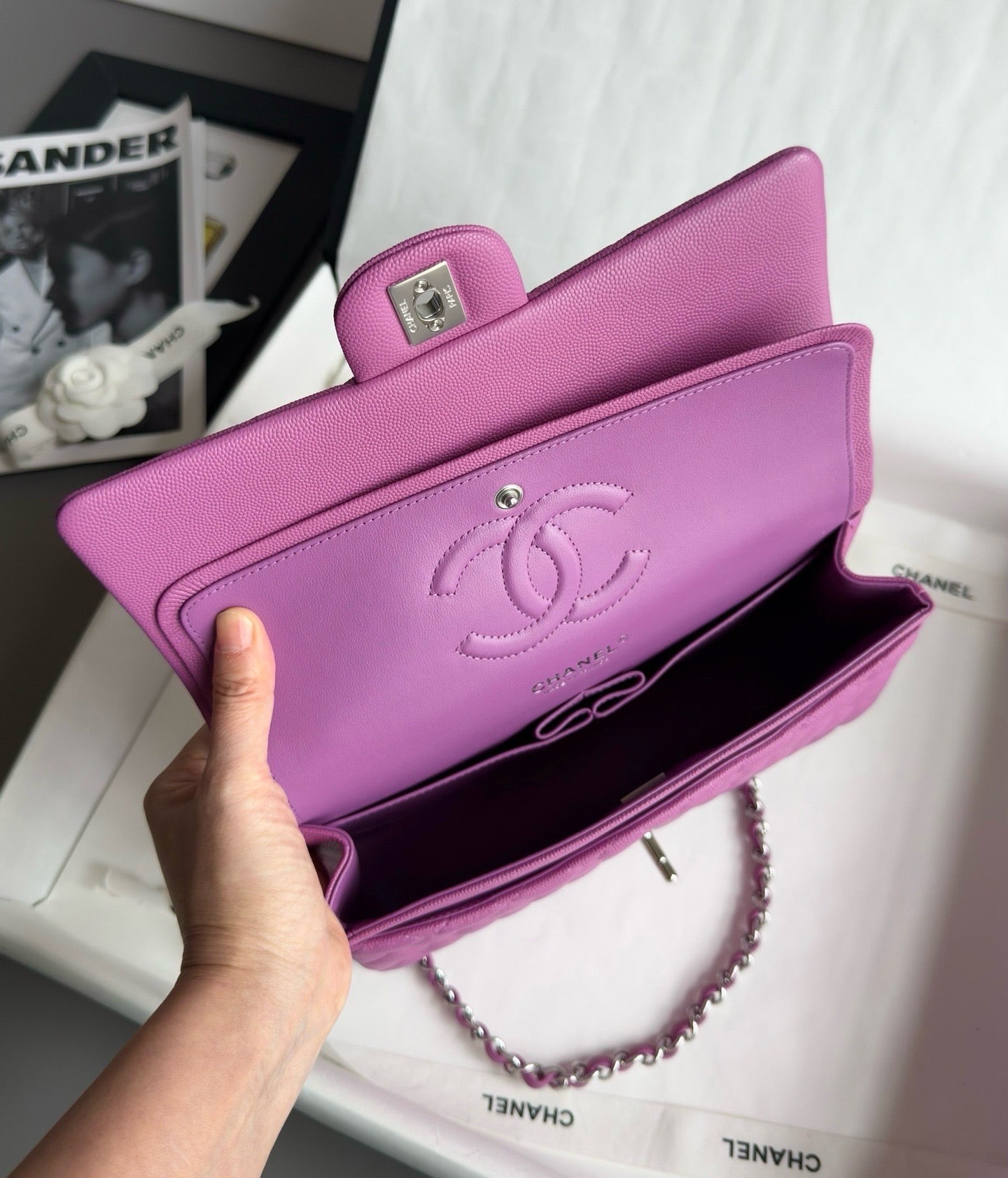 샤넬 클래식 플랩백 캐비어 정품가죽 인스티치 미듐 25