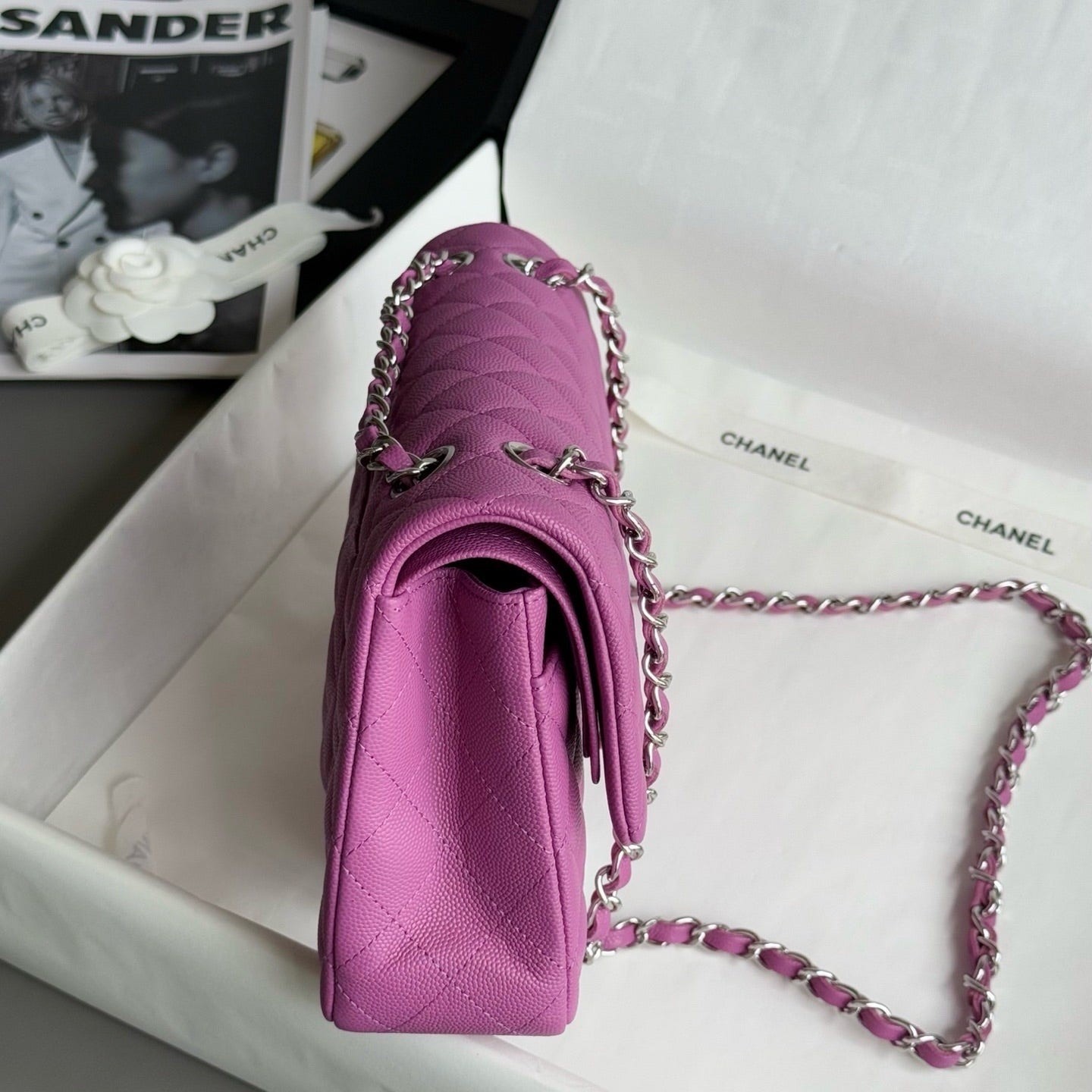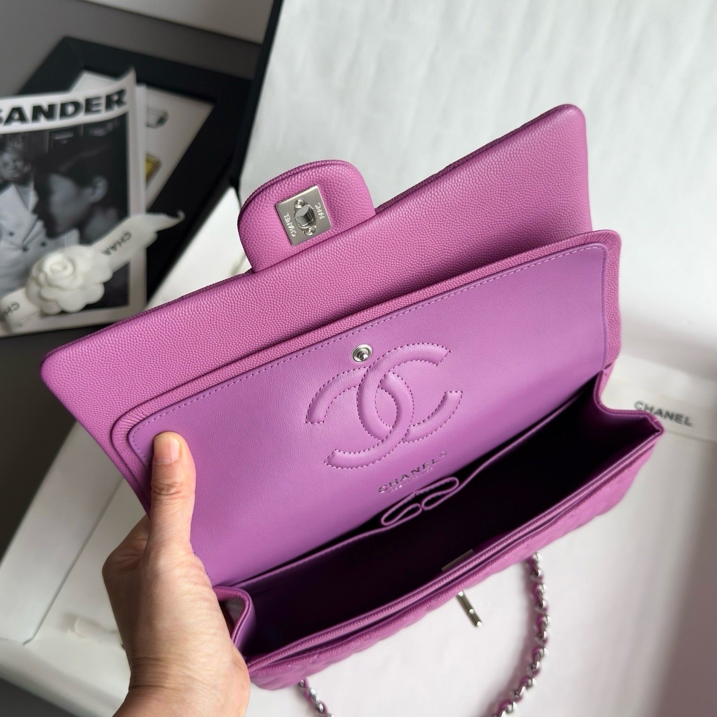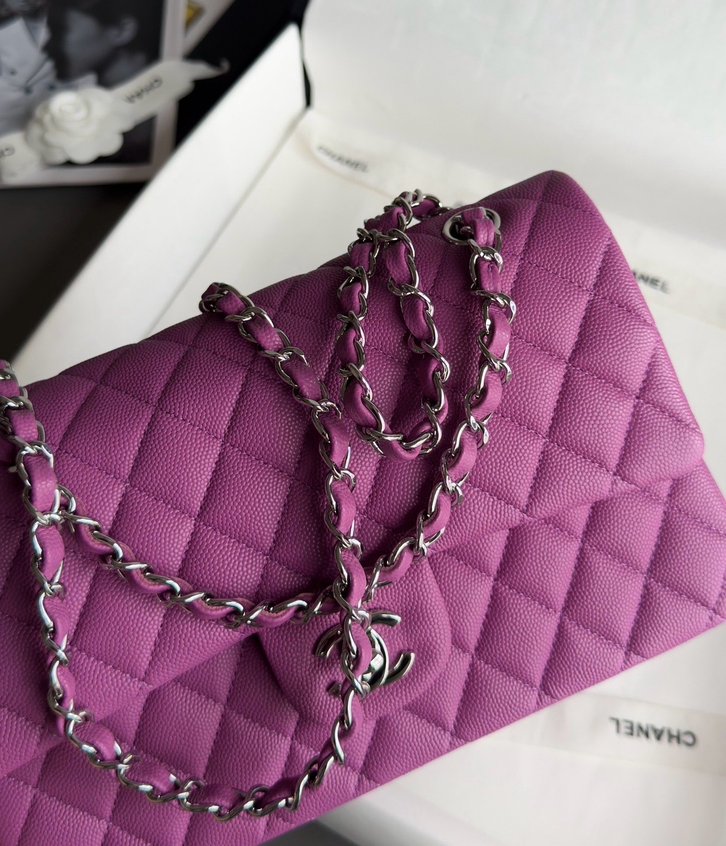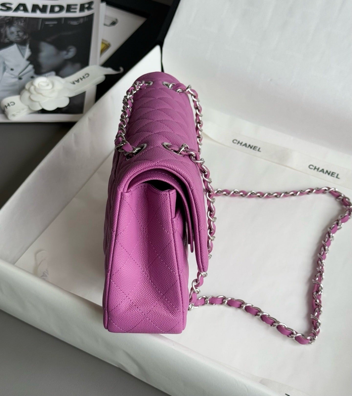 샤넬 클래식 플랩백 캐비어 정품가죽 인스티치 미듐 25