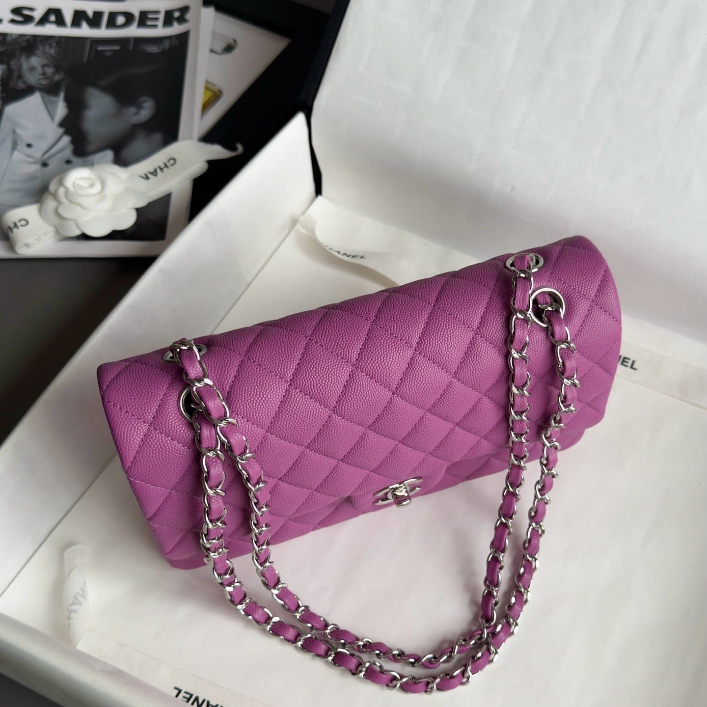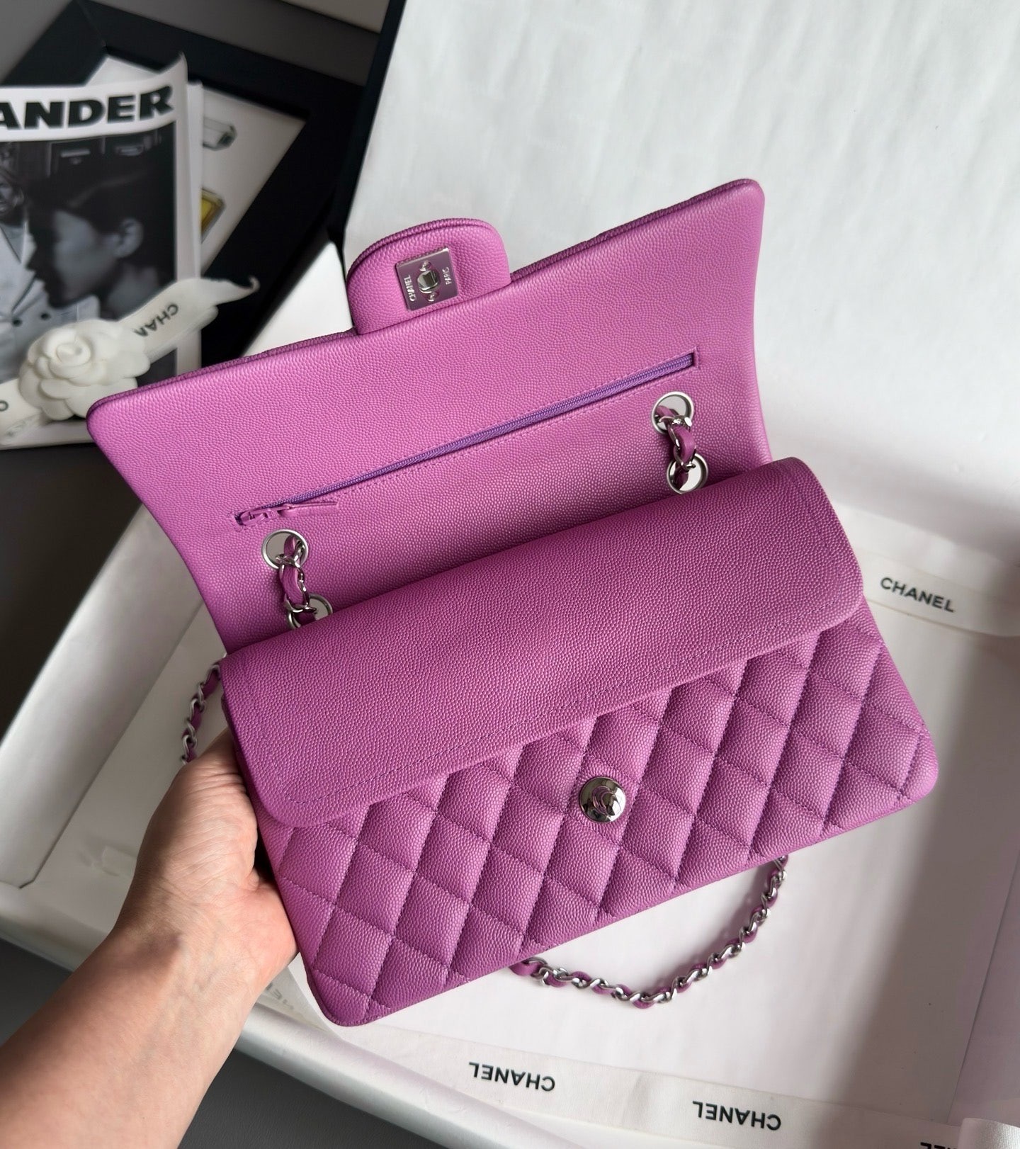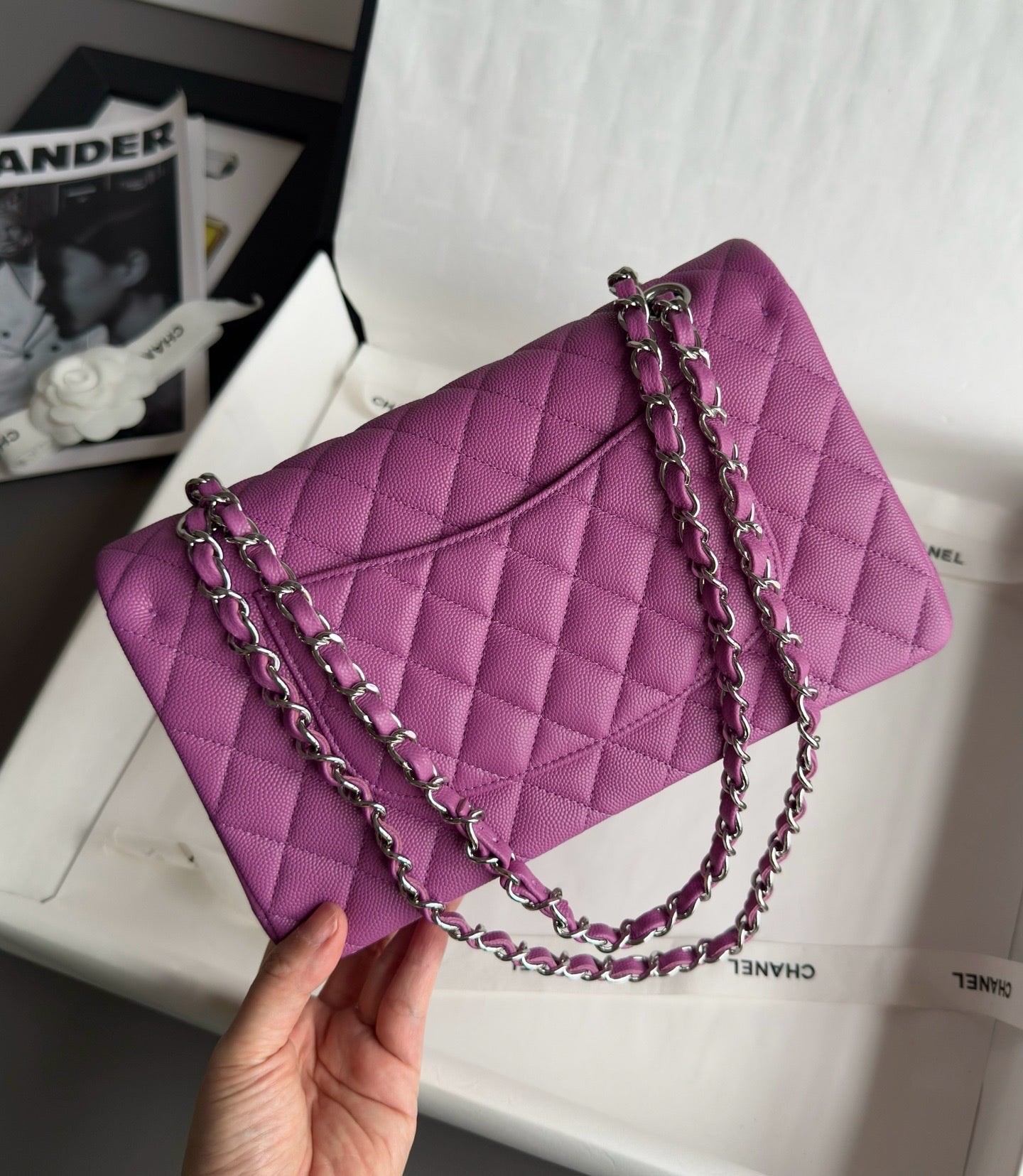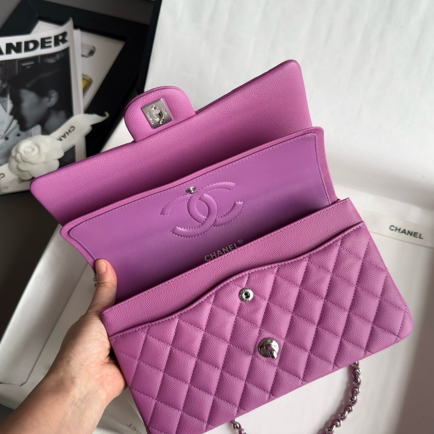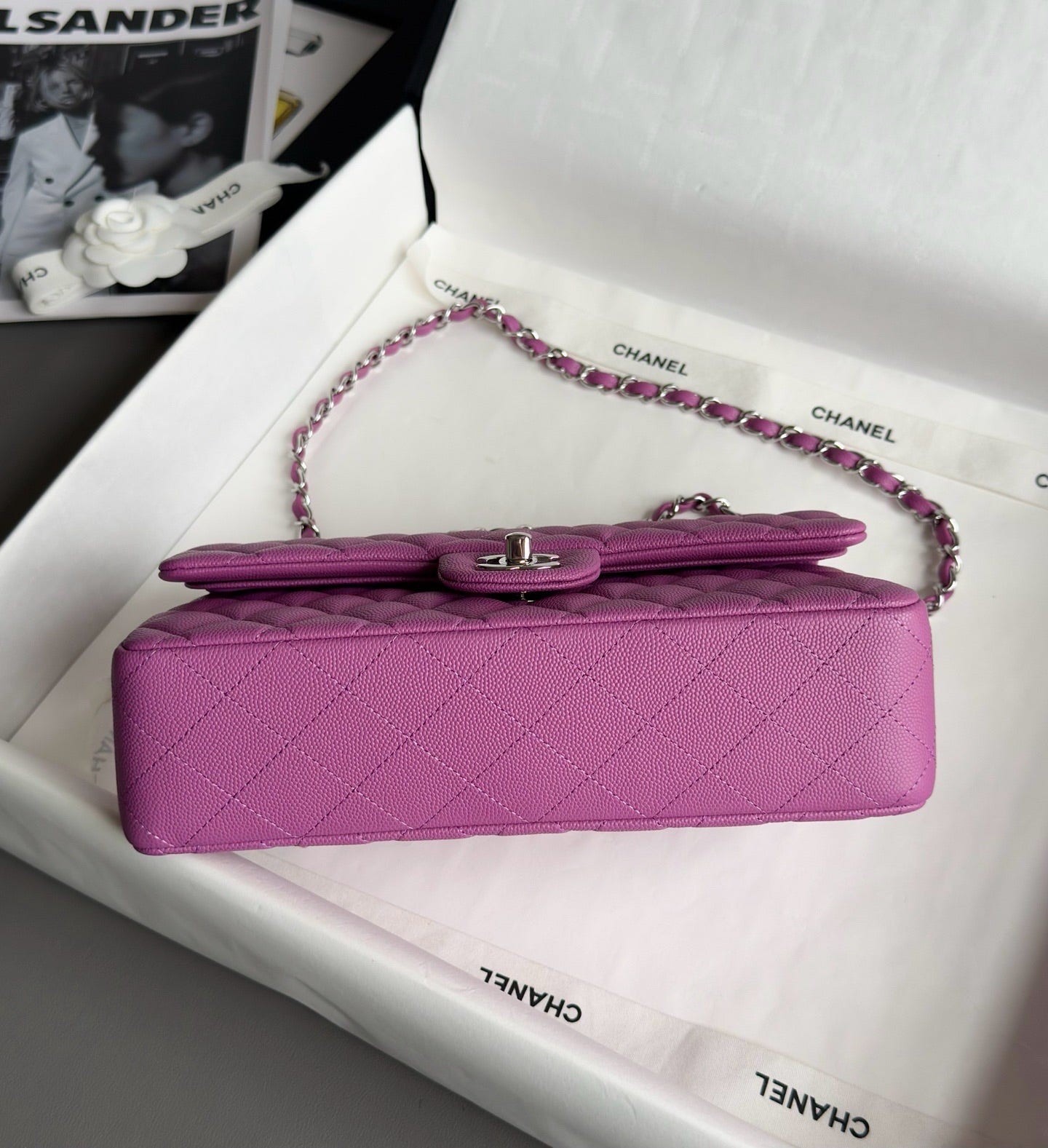 샤넬 클래식 플랩백 캐비어 정품가죽 인스티치 미듐 25
