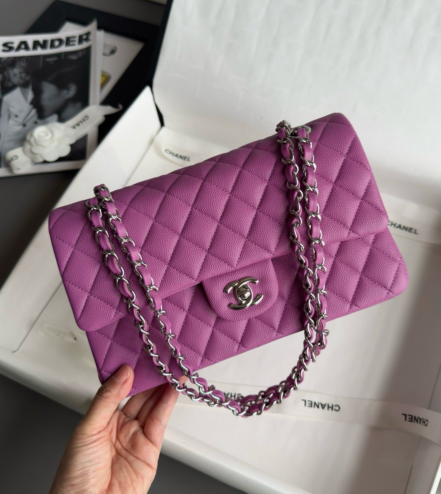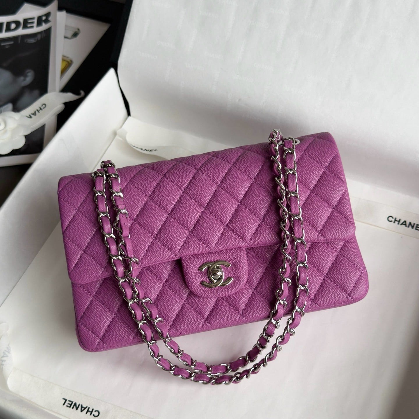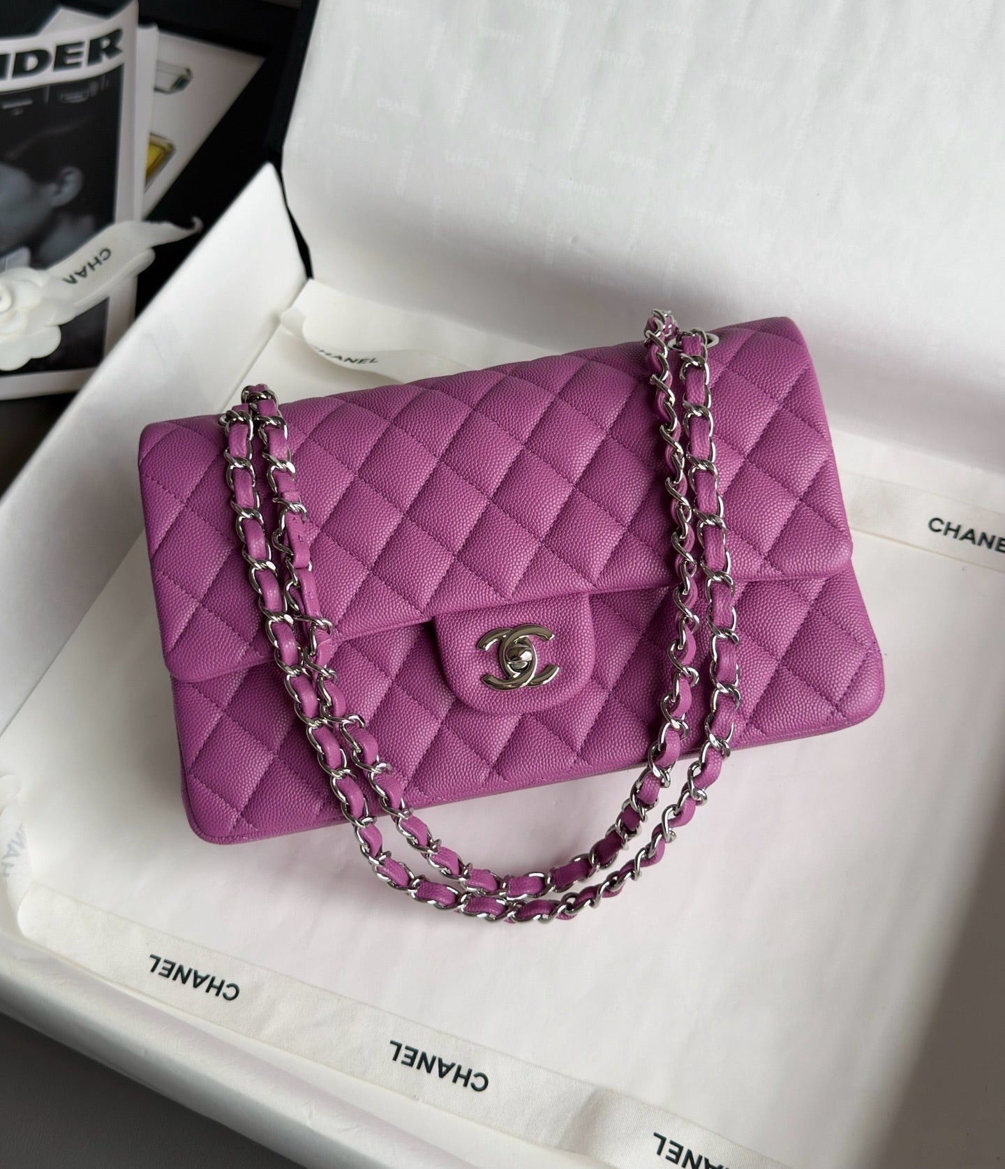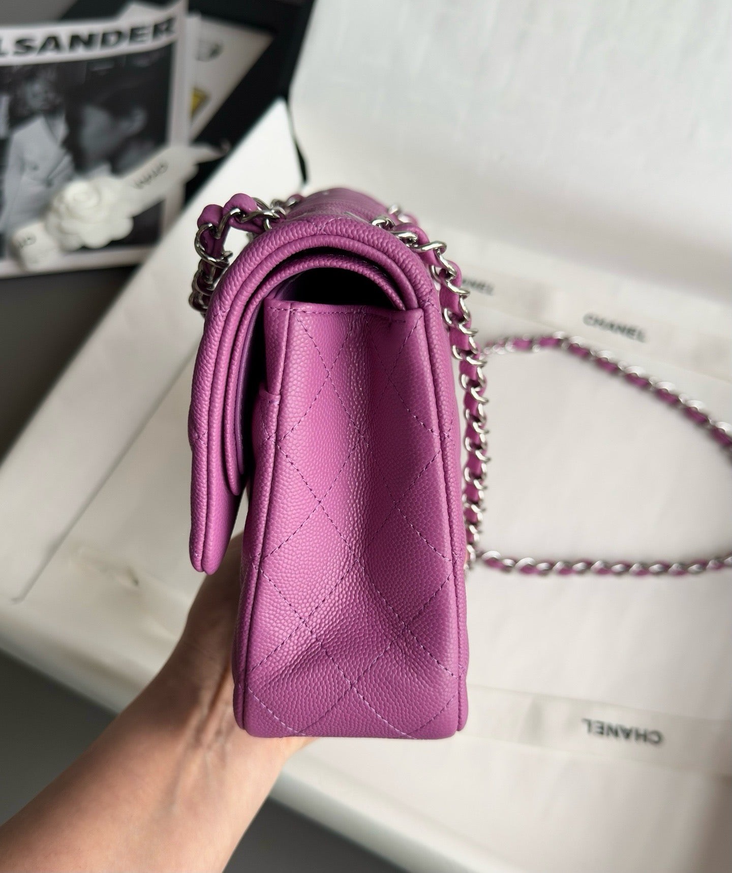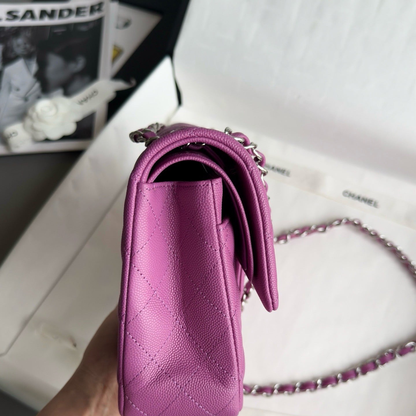 샤넬 클래식 플랩백 캐비어 정품가죽 인스티치 미듐 25
