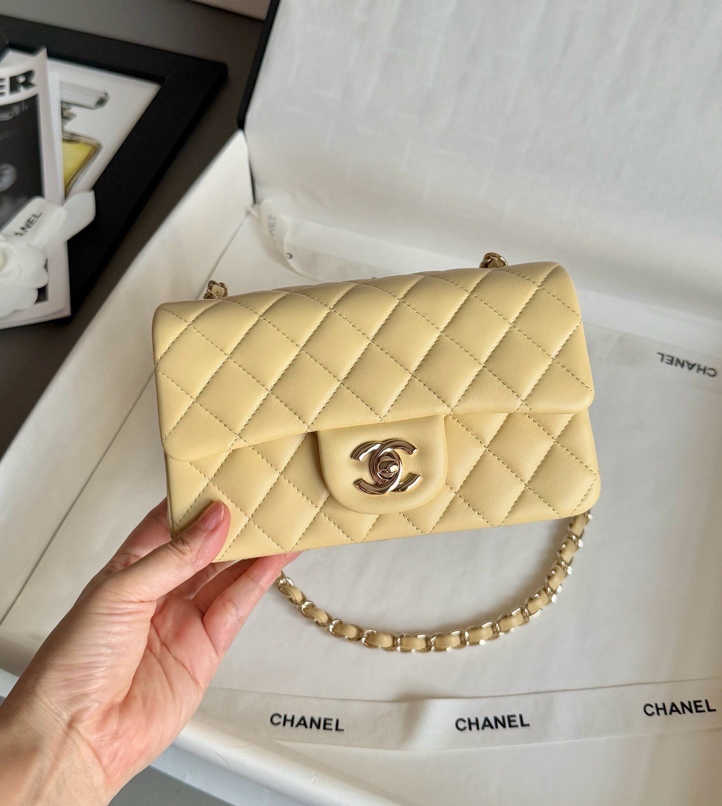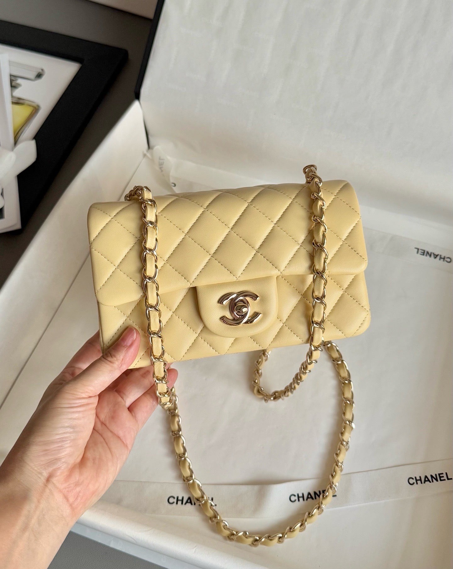 Chanel Classic Flap CF经典系列  “大Mini”小鸡黄