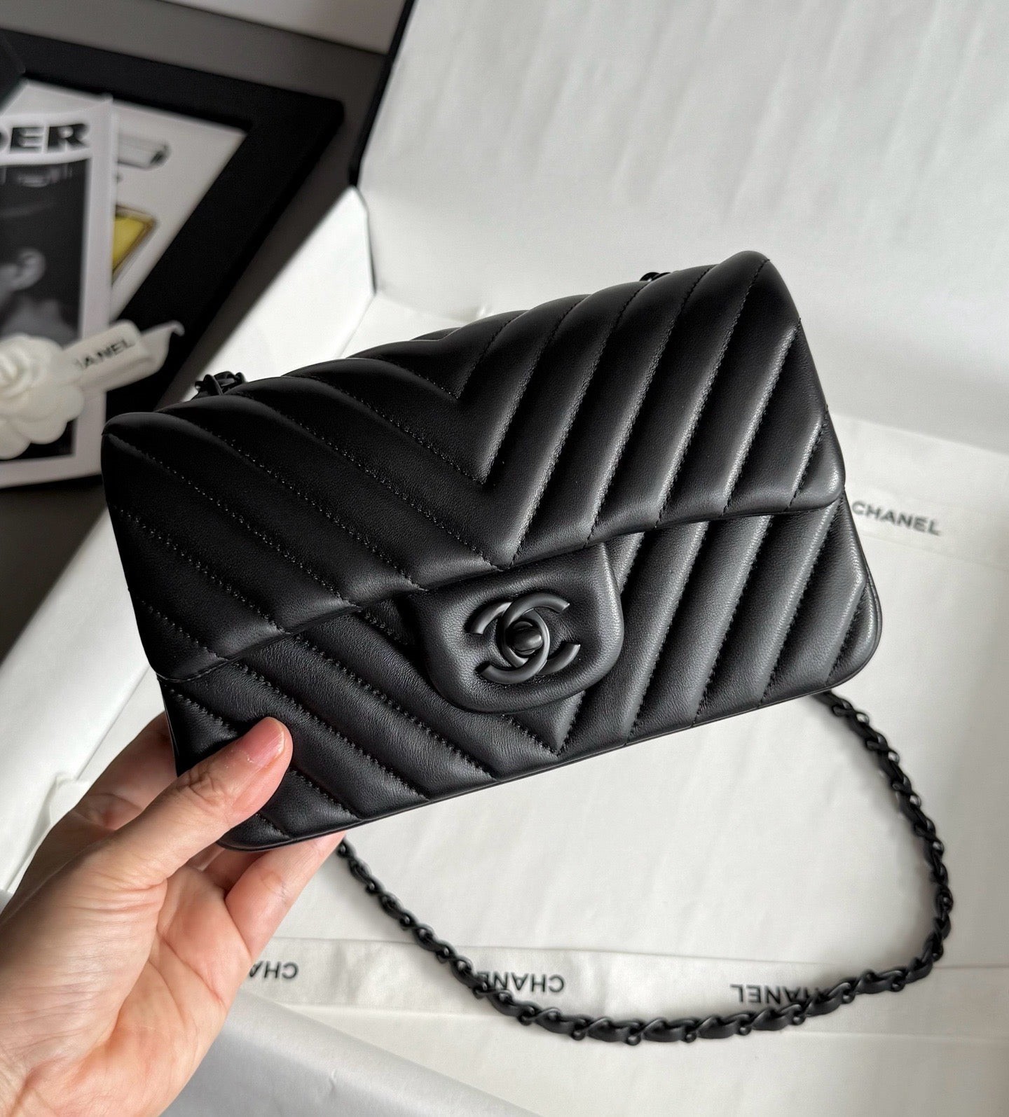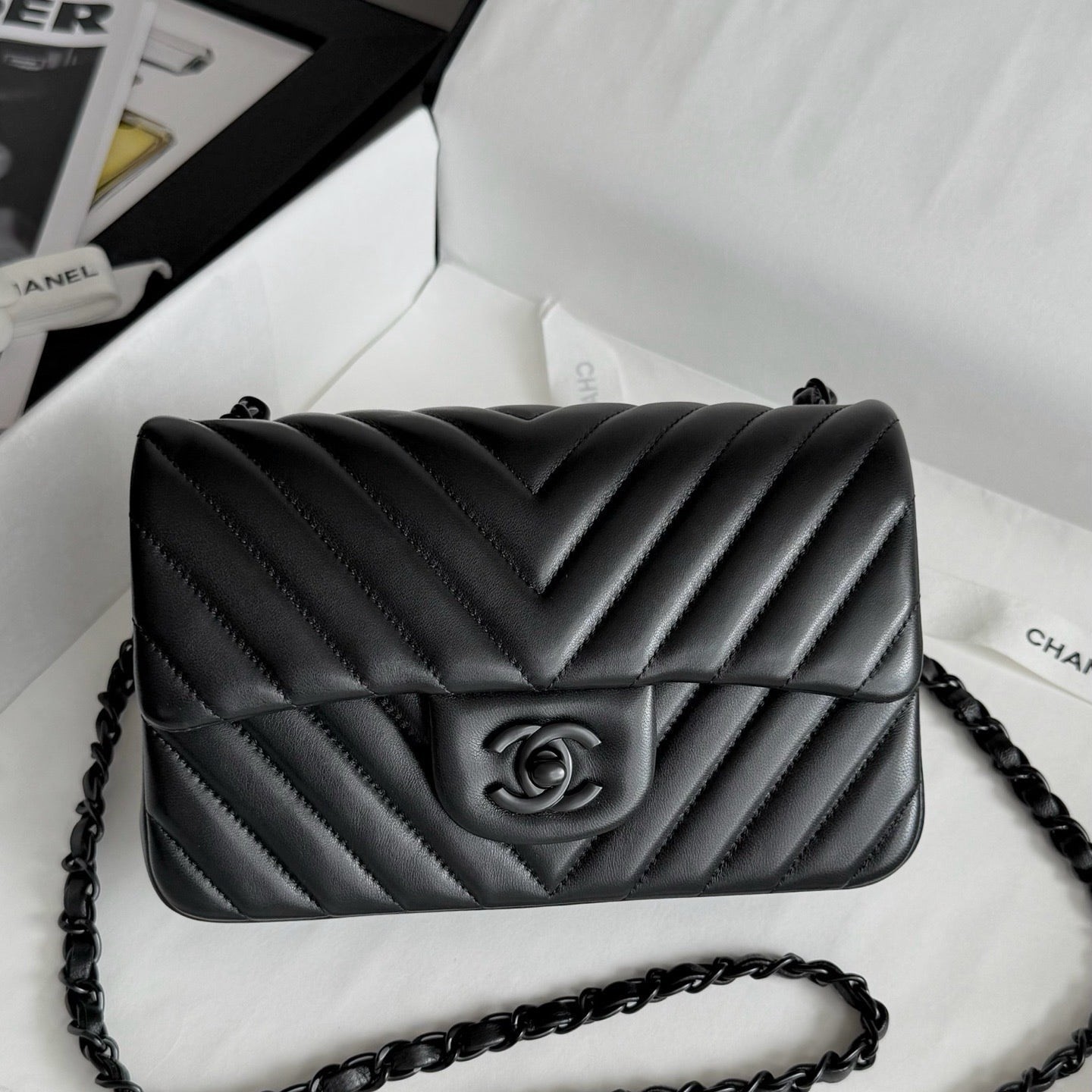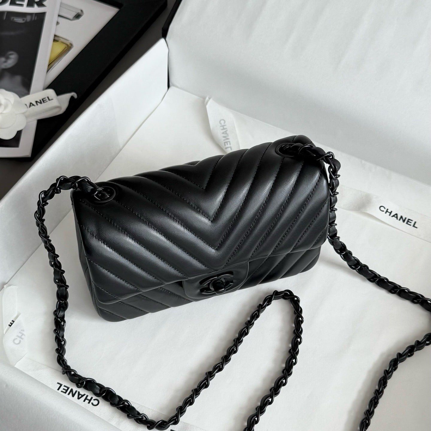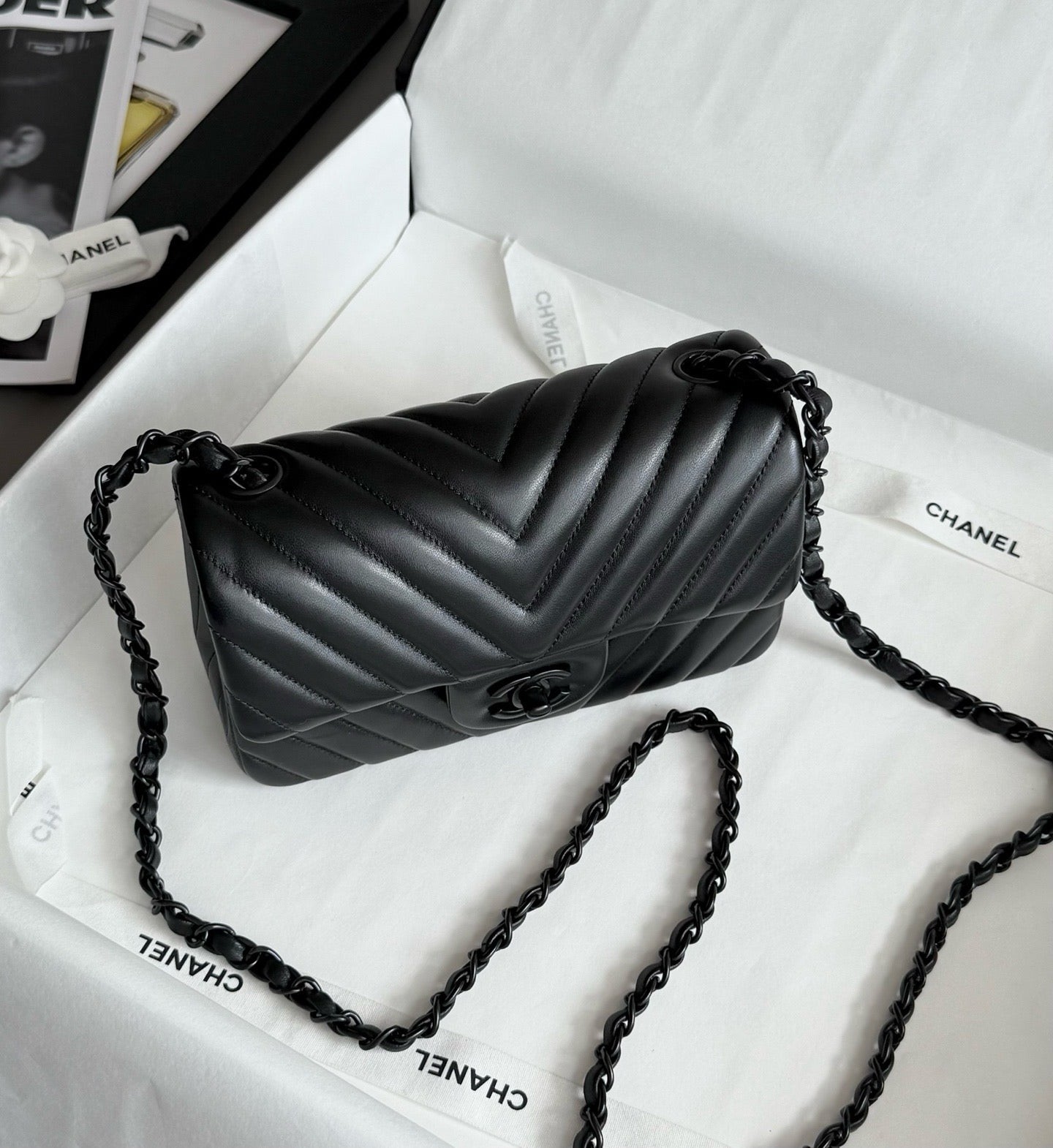 Chanel So black Classic Flap V纹CF 大Mini