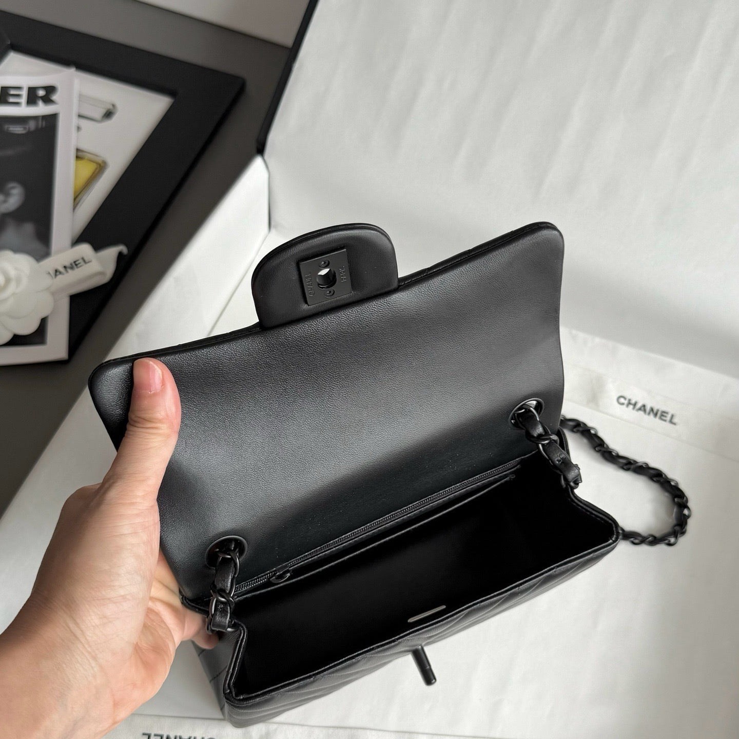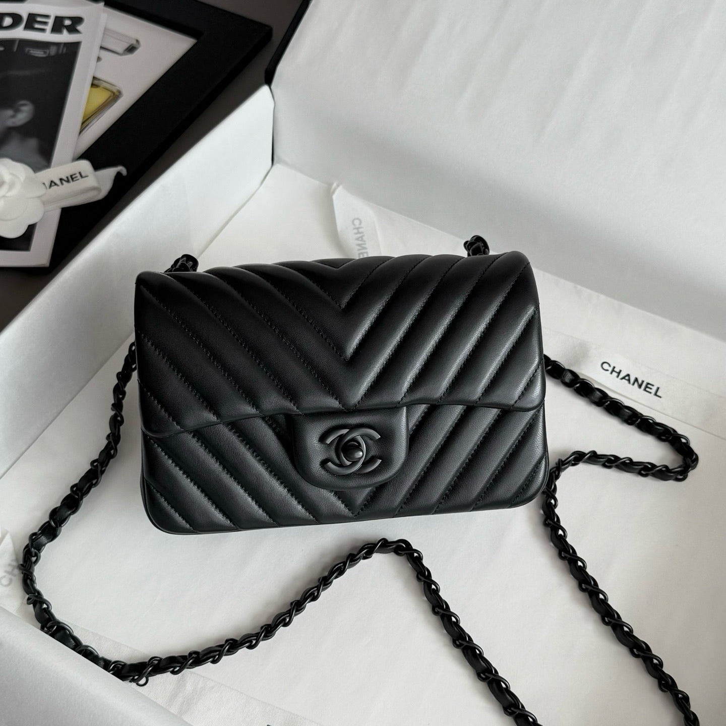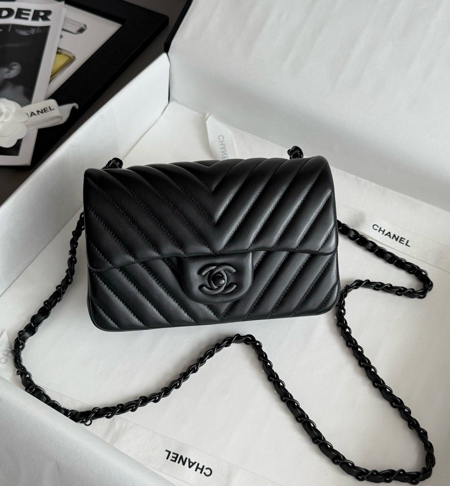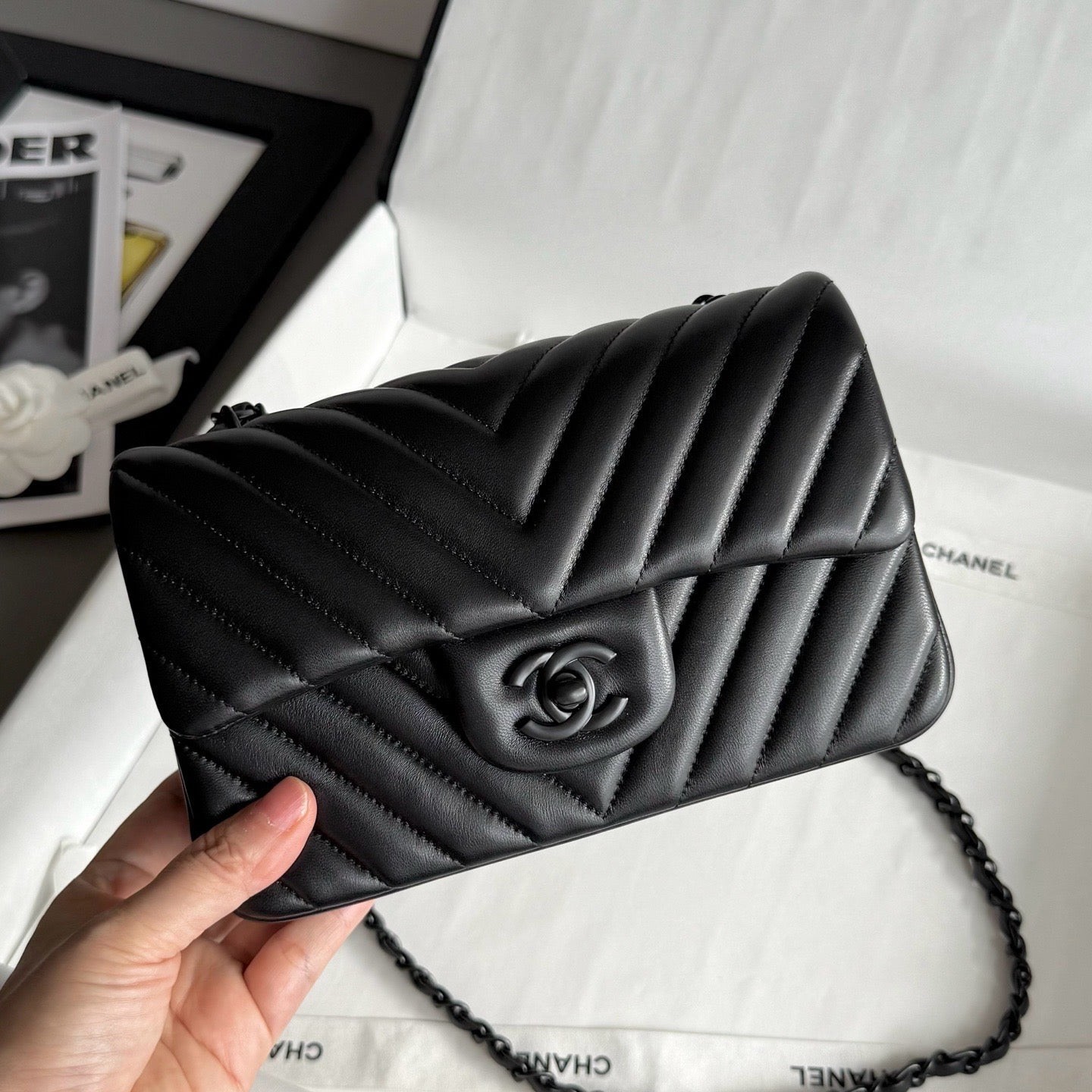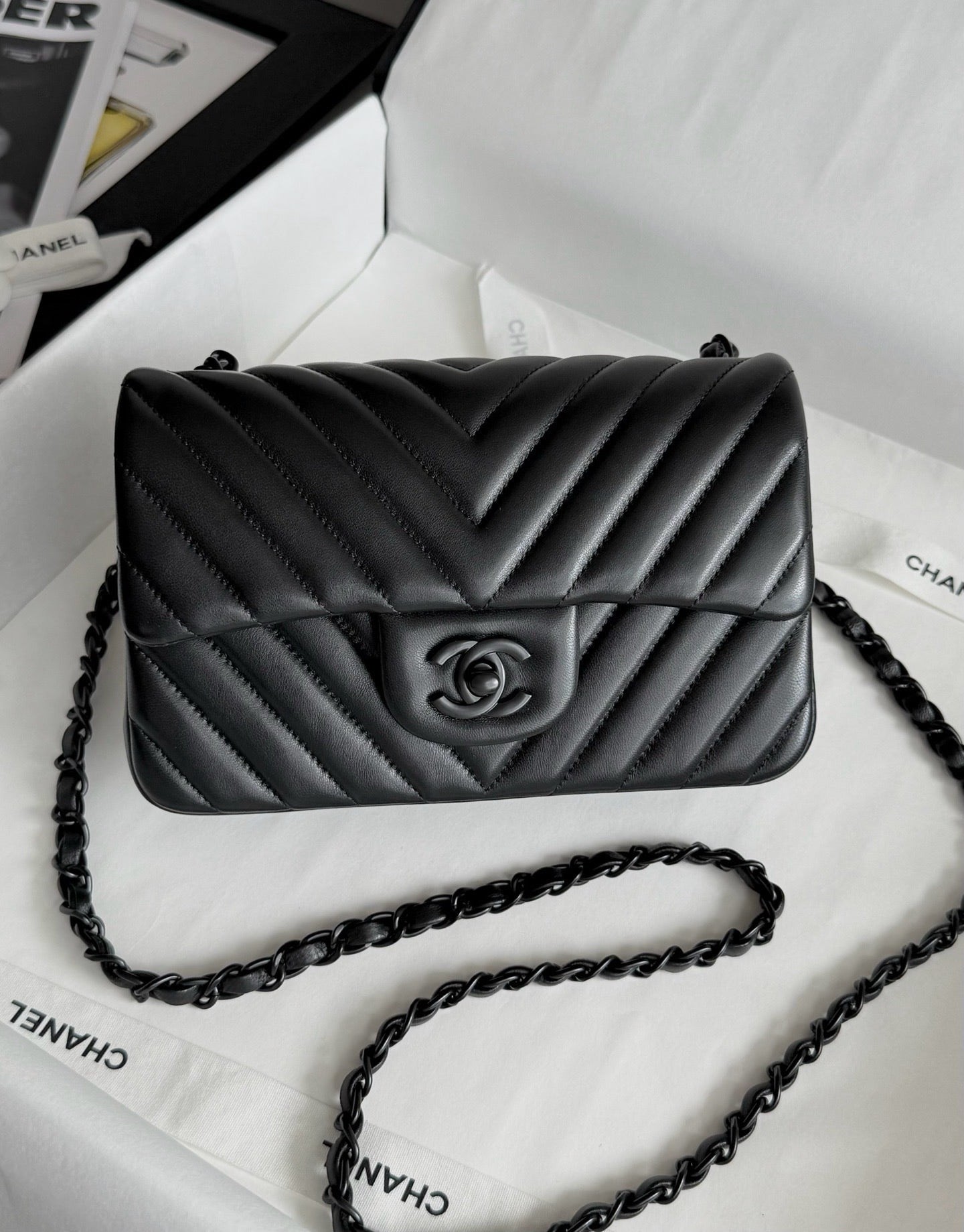 Chanel So black Classic Flap V纹CF 大Mini