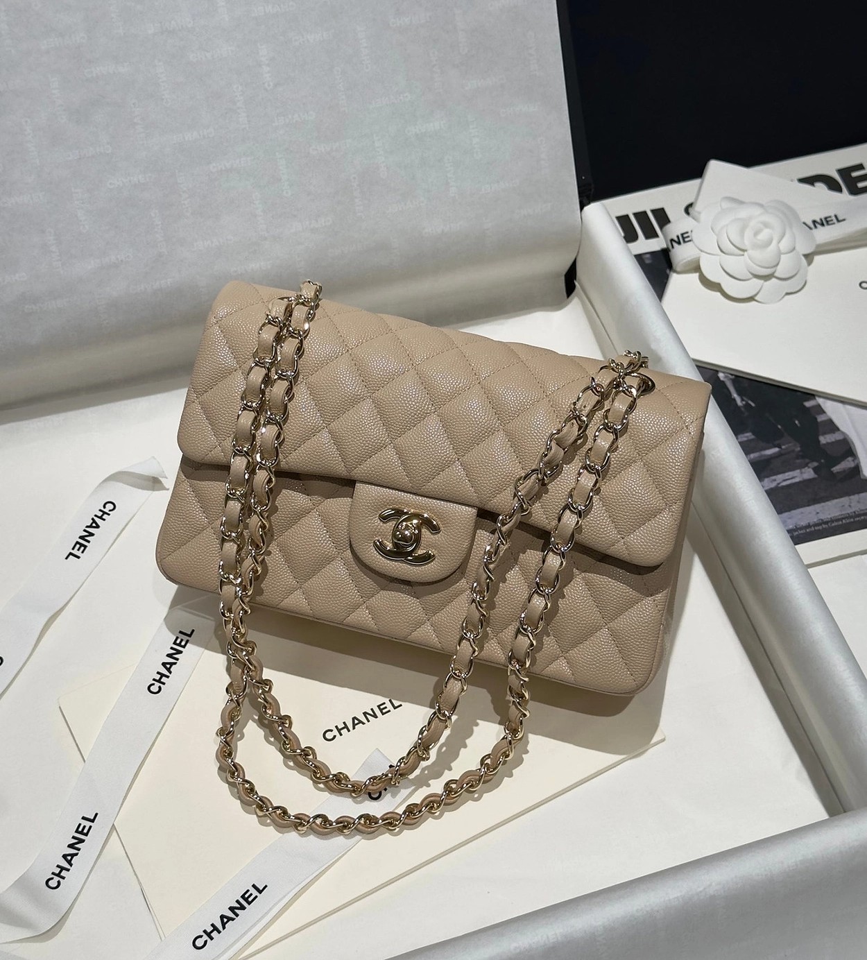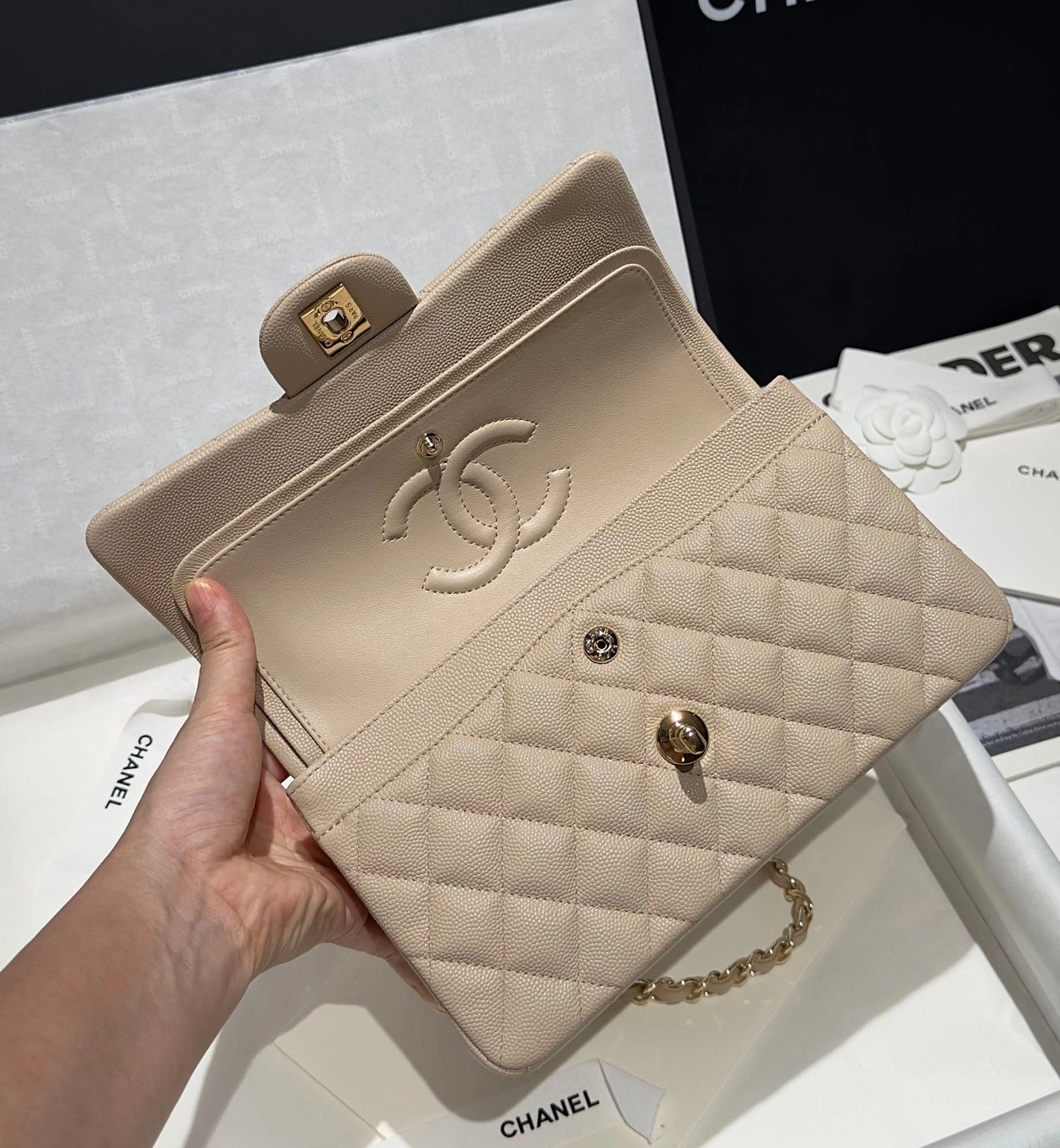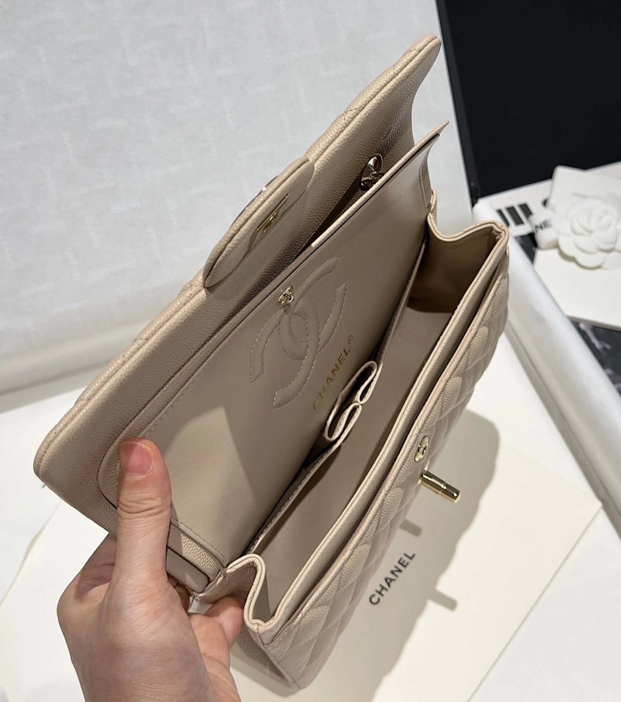 샤넬 클래식 플랩백 정품가죽 인스티치 미듐 25