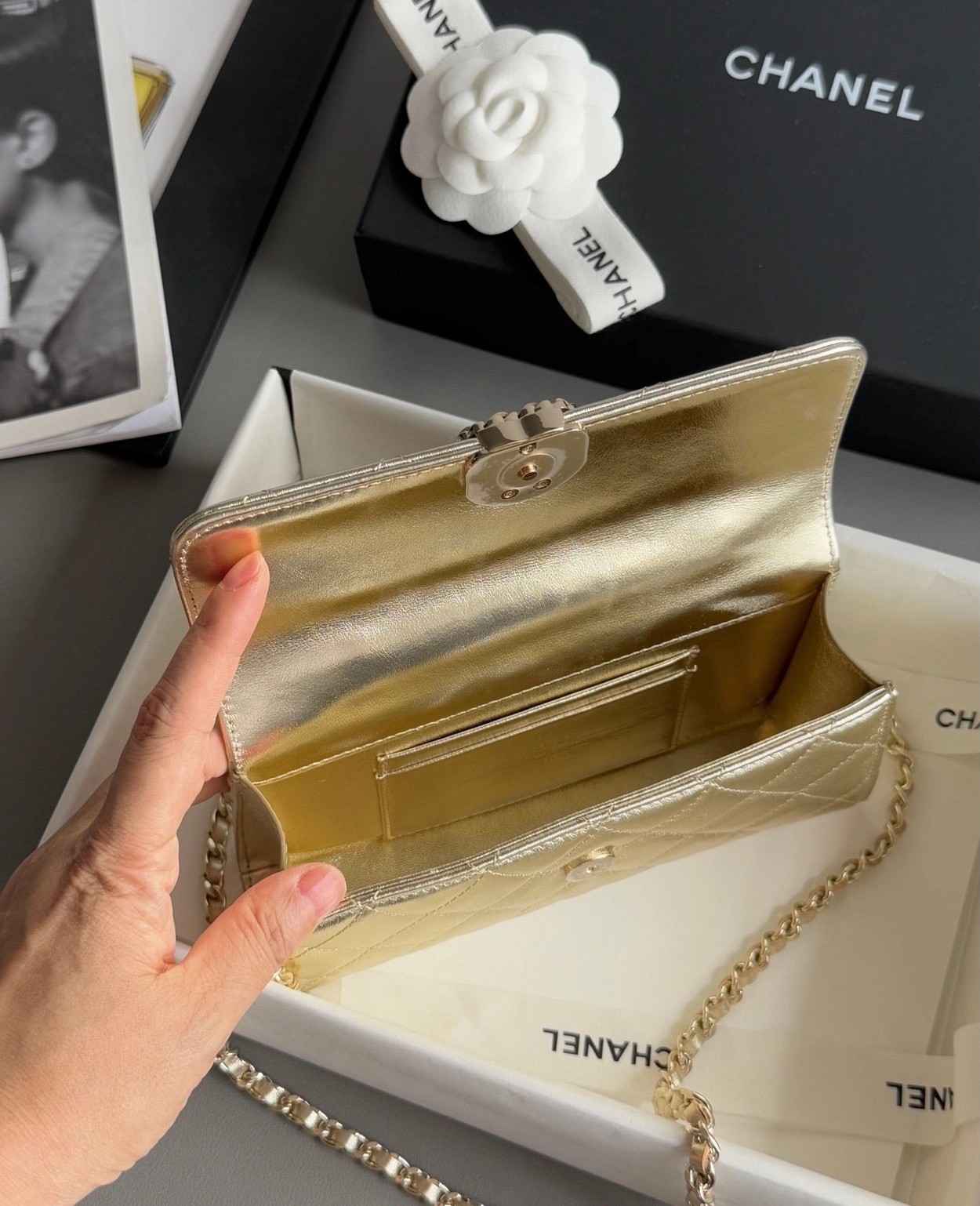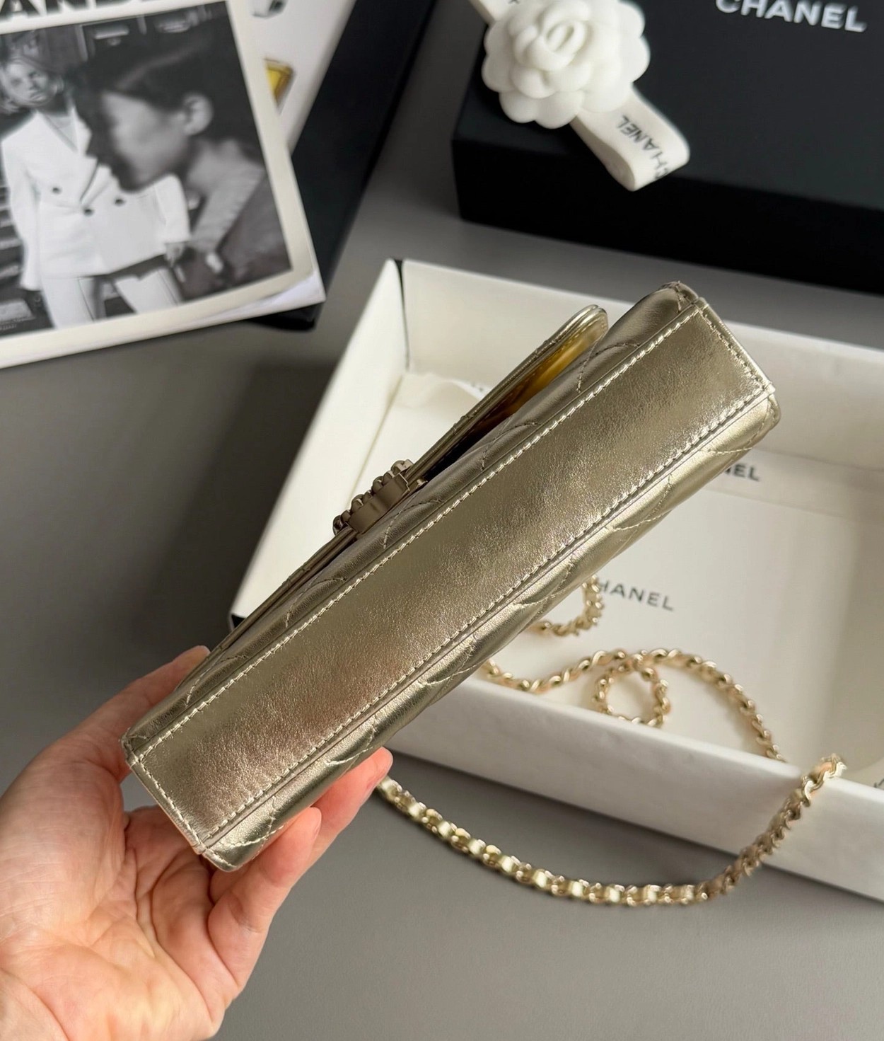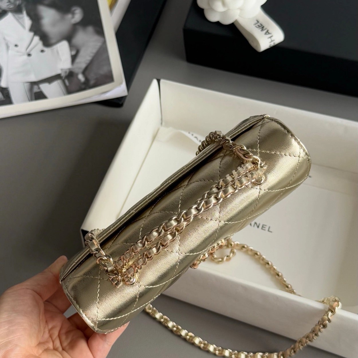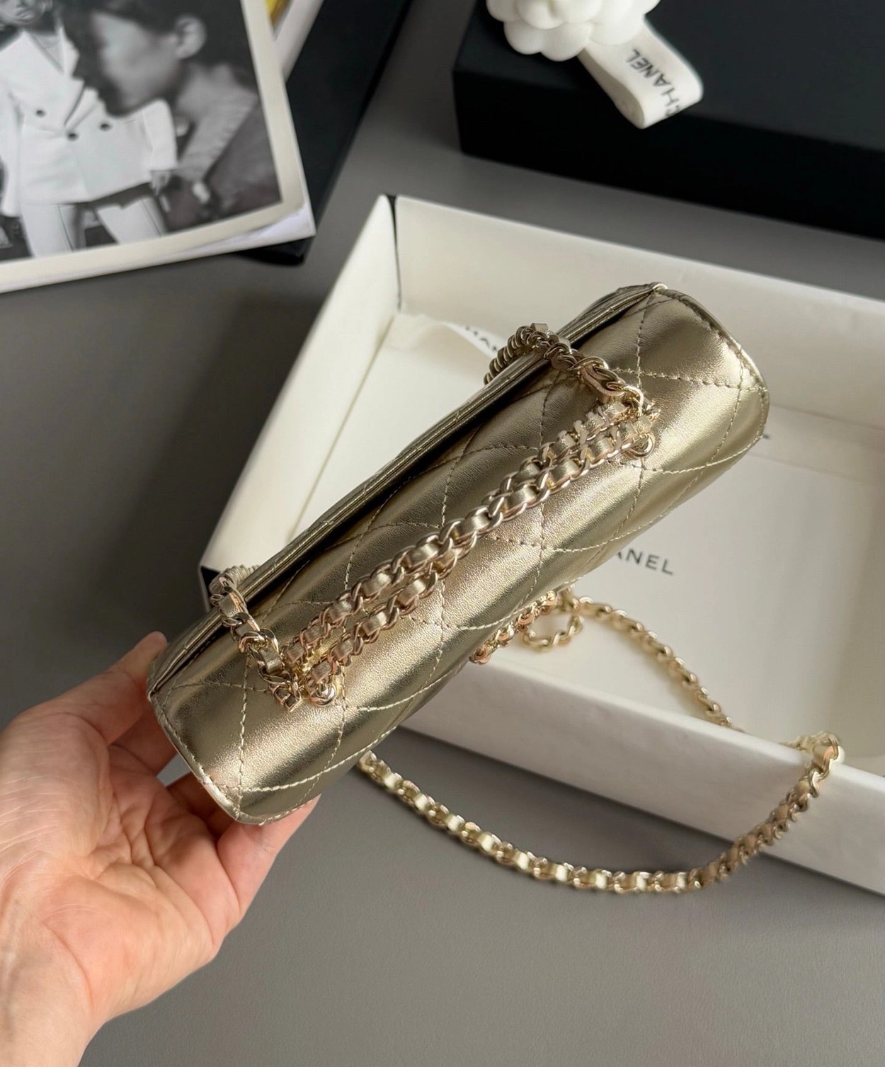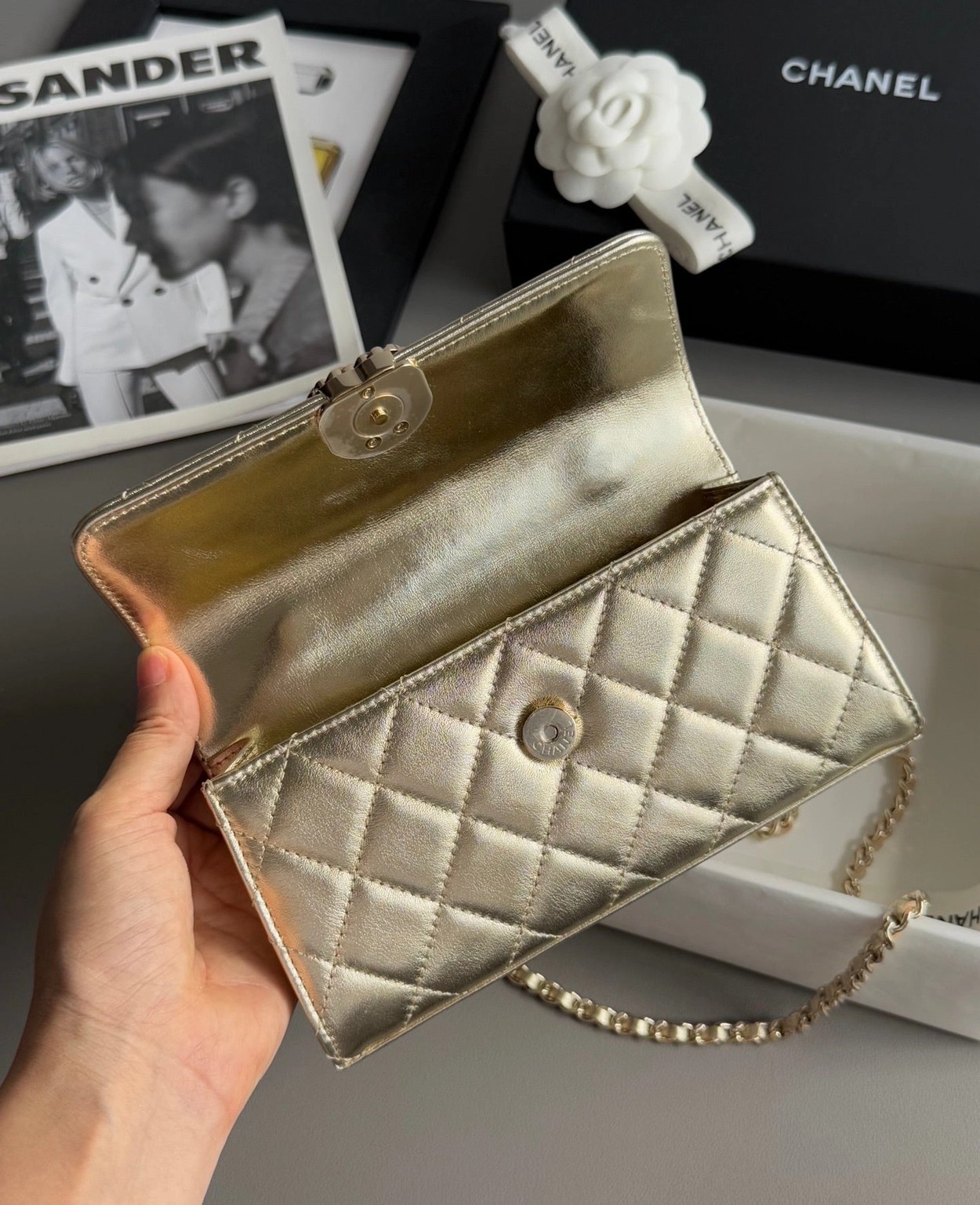 原厂小羊皮搭配24K厚钯水润香槟扣,交叉的皮穿链条手柄非常特别,内里日常小物件都能装!不管是手拎还是肩背都非常的精致百搭…….