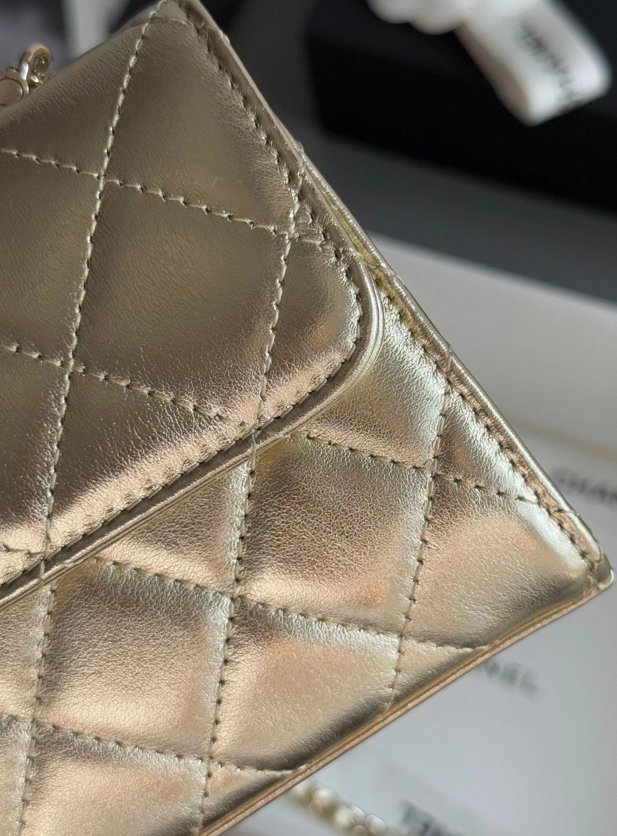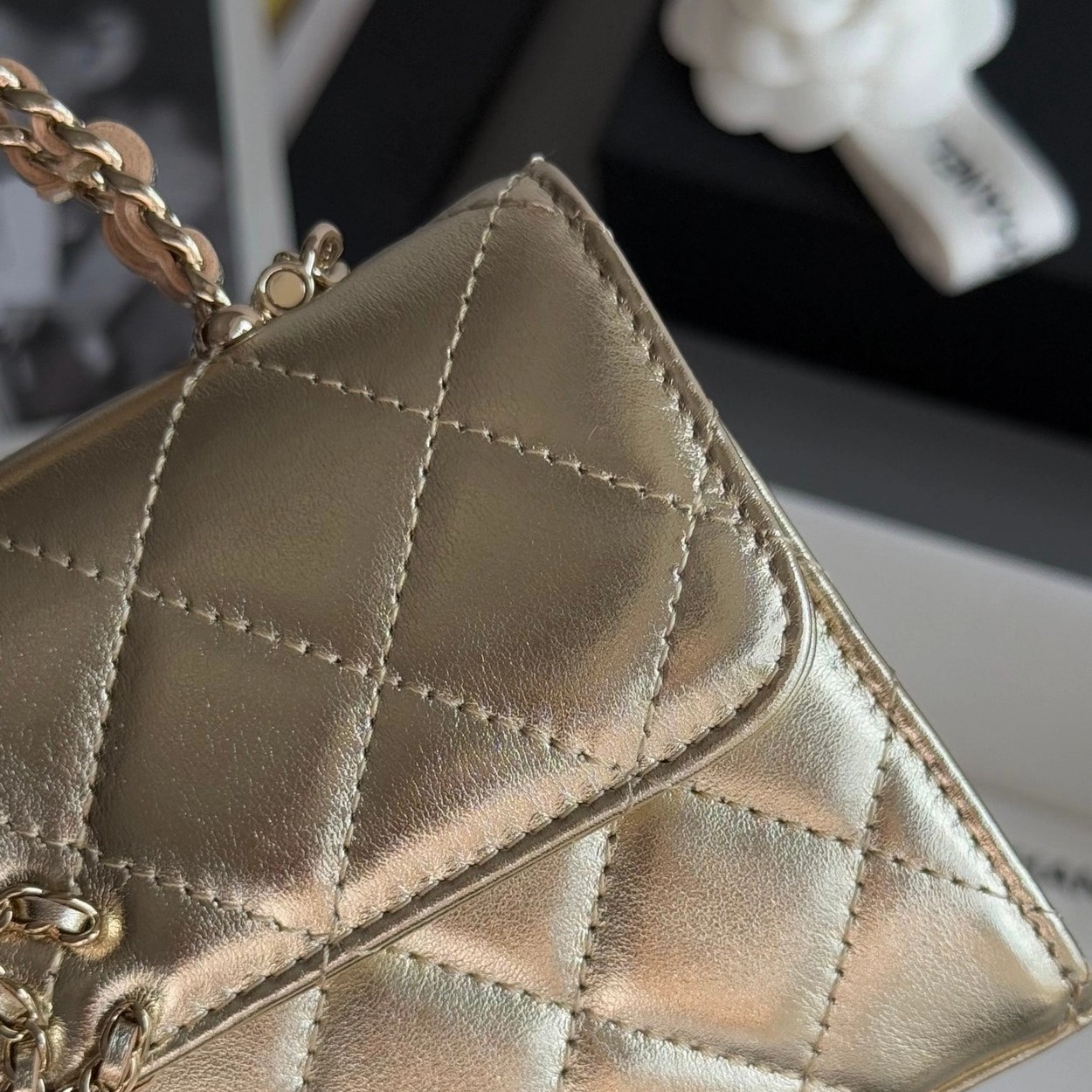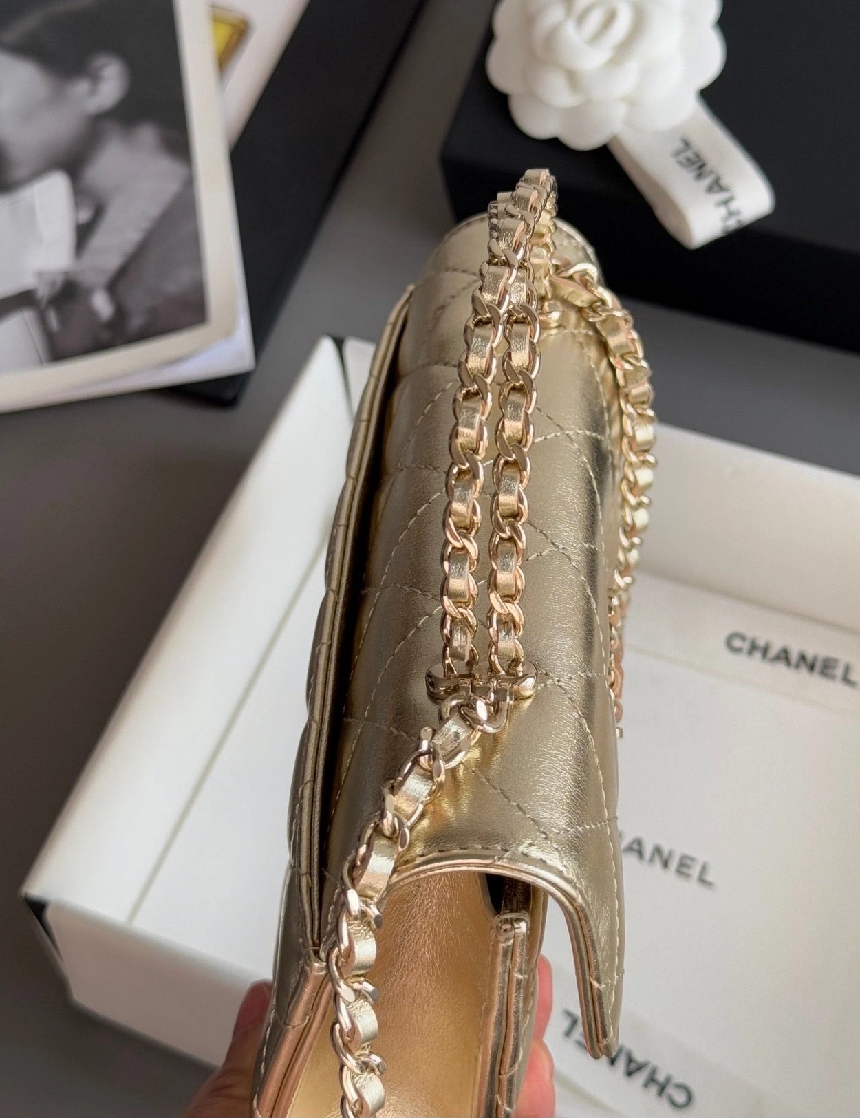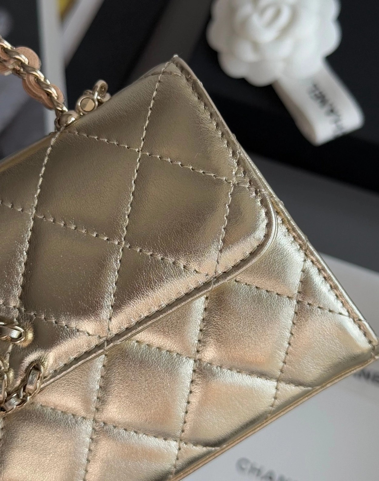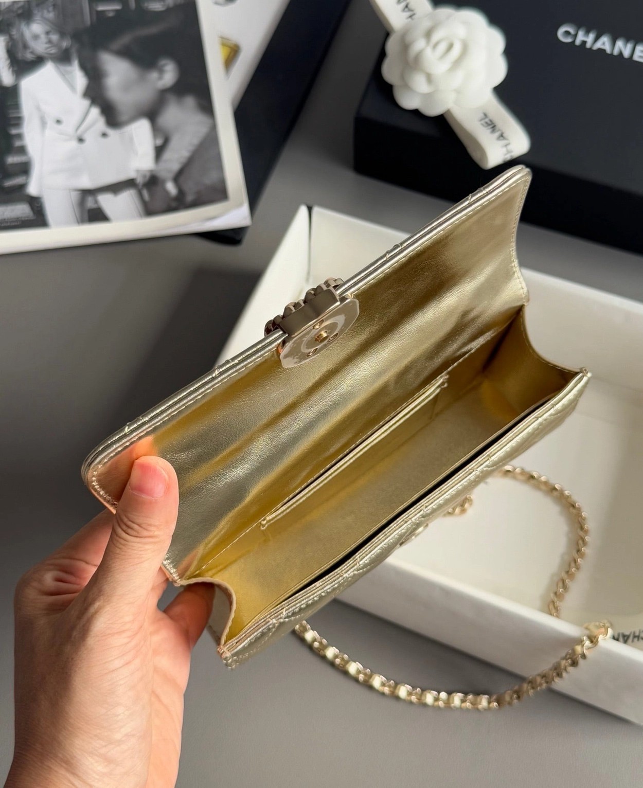 原厂小羊皮搭配24K厚钯水润香槟扣,交叉的皮穿链条手柄非常特别,内里日常小物件都能装!不管是手拎还是肩背都非常的精致百搭…….